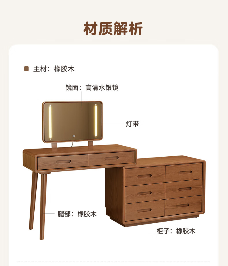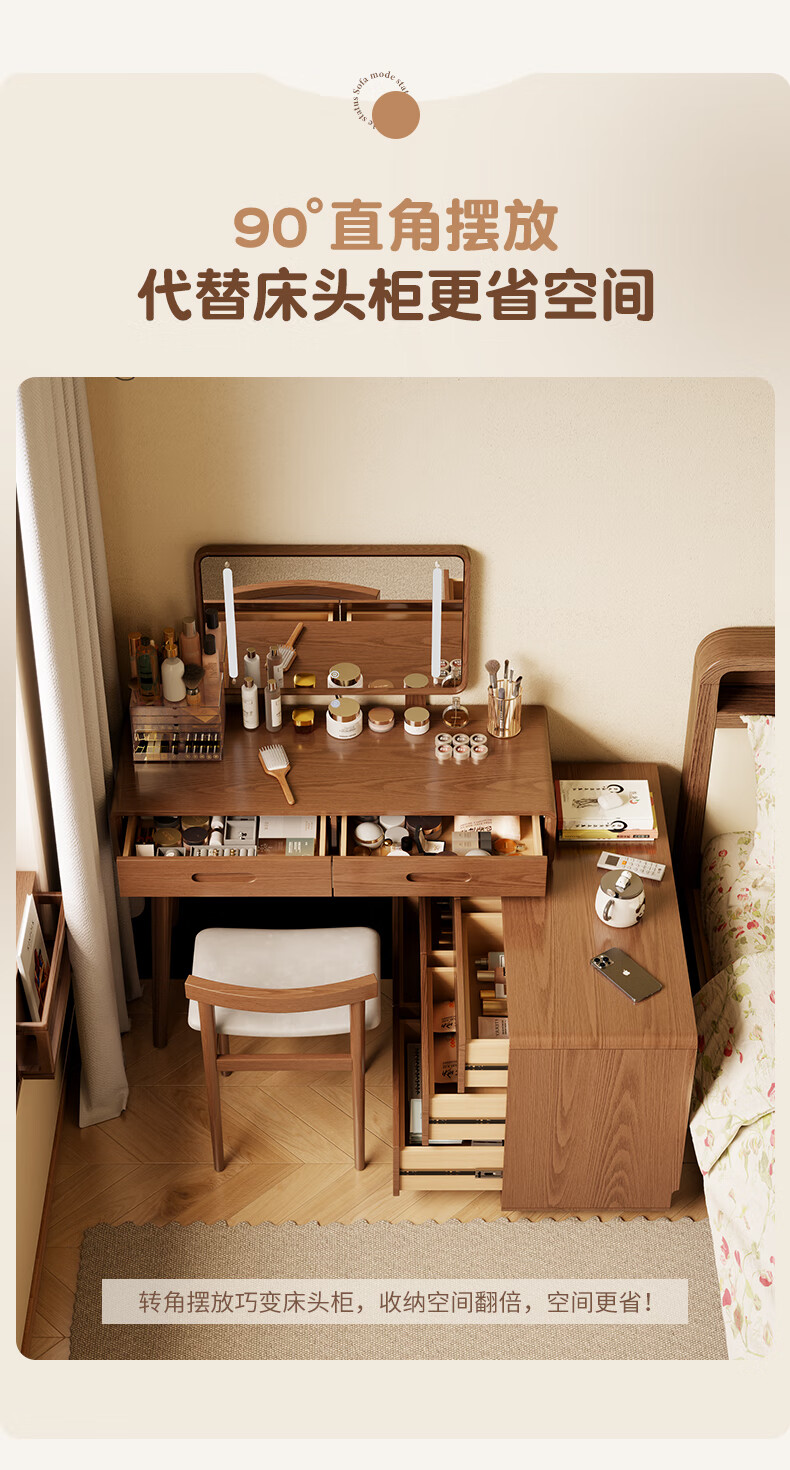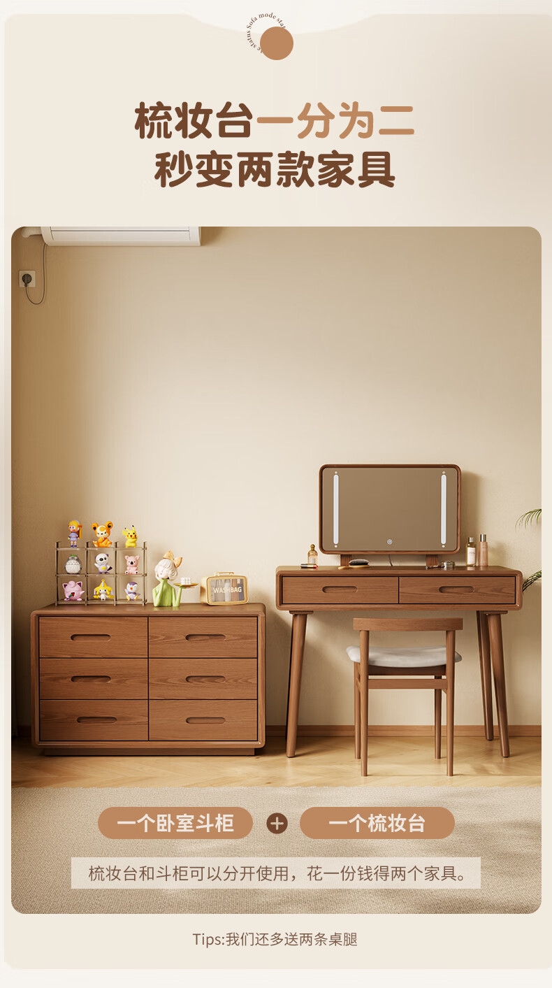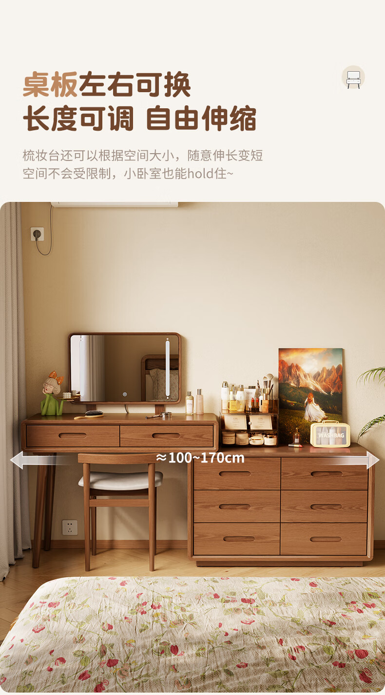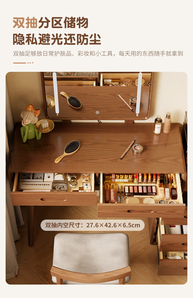 Winter wood solid wood dresser and cupboard integrated bedroom simple modern master bedroom dresser desk bedside table bedside vanity table 6 cupboard table-walnut color