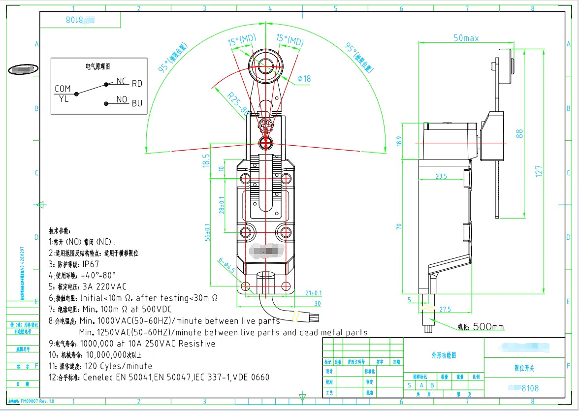 IP67 waterproof travel switch, manure scraper travel switch limiter, roller limit switch 8108/rod type 8107 8107