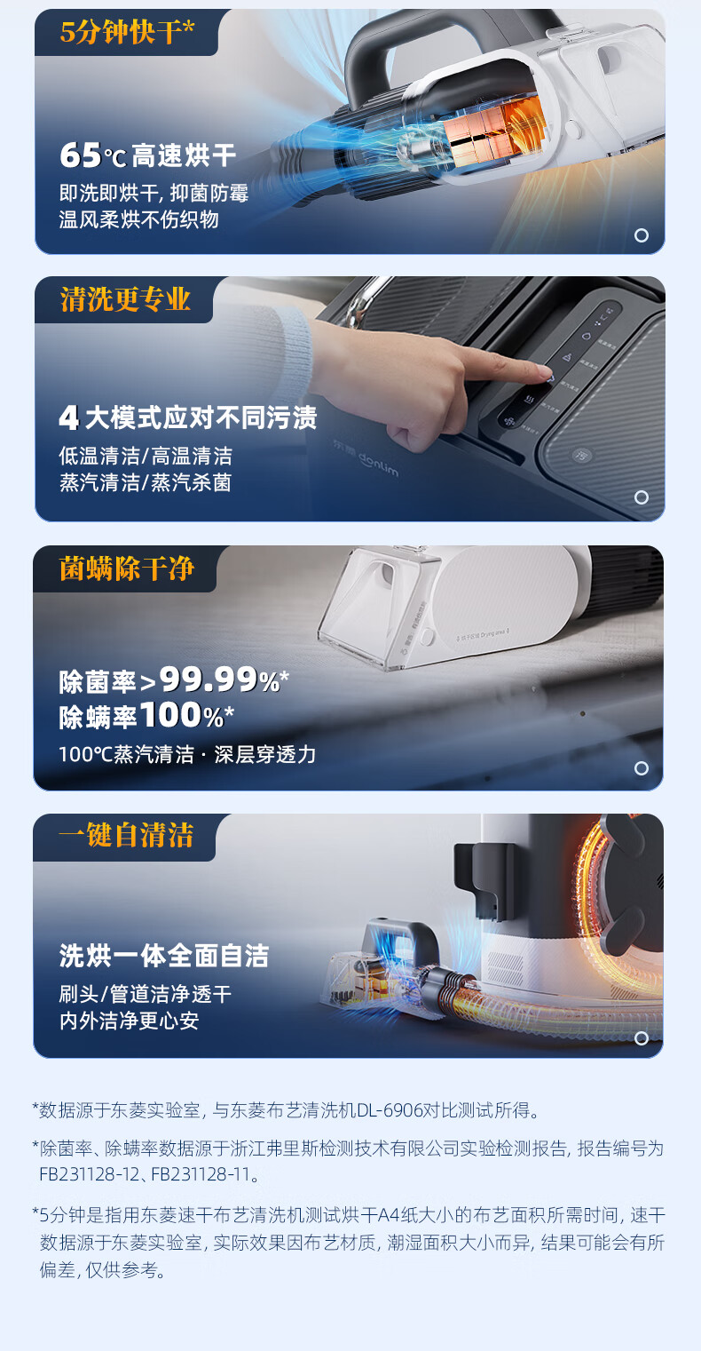 Donlim fabric sofa cleaning machine high temperature steam cleaning spray suction drying integrated steam mite removal and sterilization sofa carpet curtain car cleaning artifact DL-6930 set 1 (single machine + standard brush head + deodorant + stubborn cleaner)