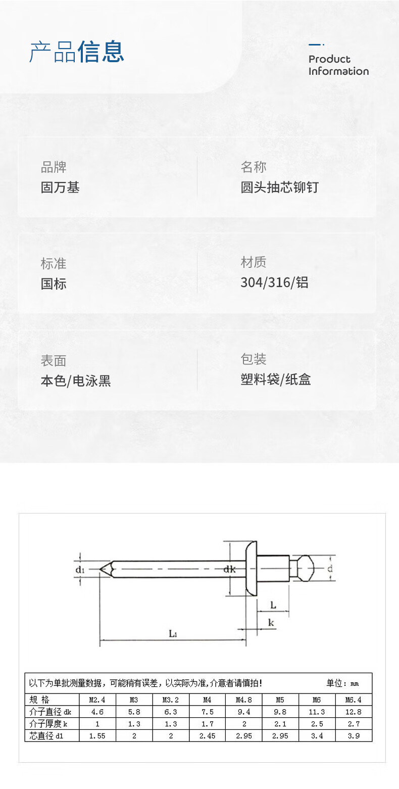 Guwanji aluminum rivets, large brim pull rivets, 304 stainless steel open type round head core-pulling rivets, rivets, core-pulling rivets, aluminum M5x16 (50 pcs)