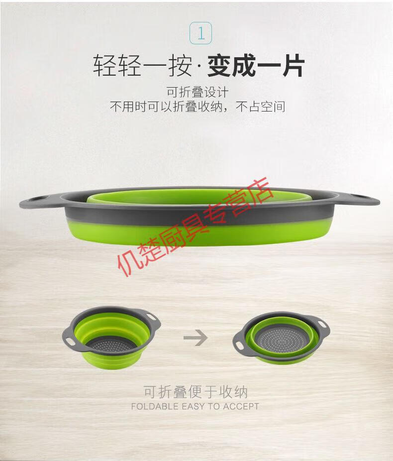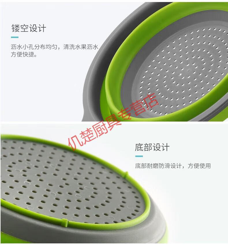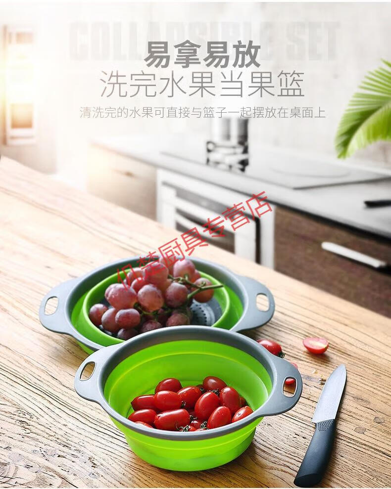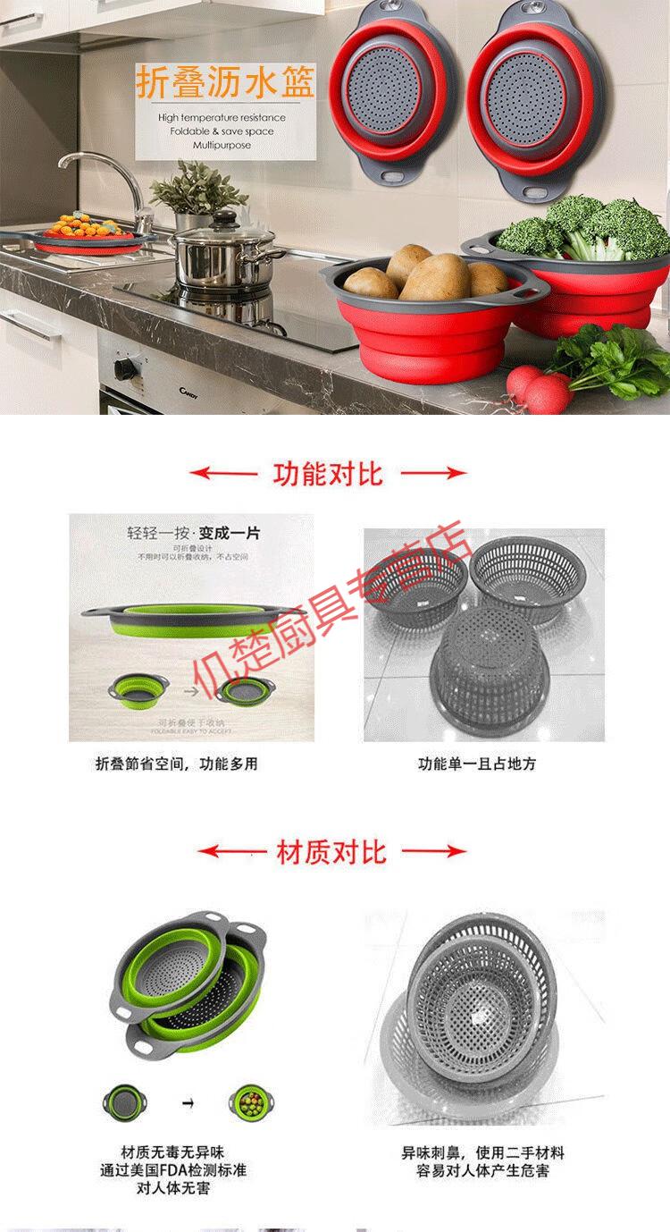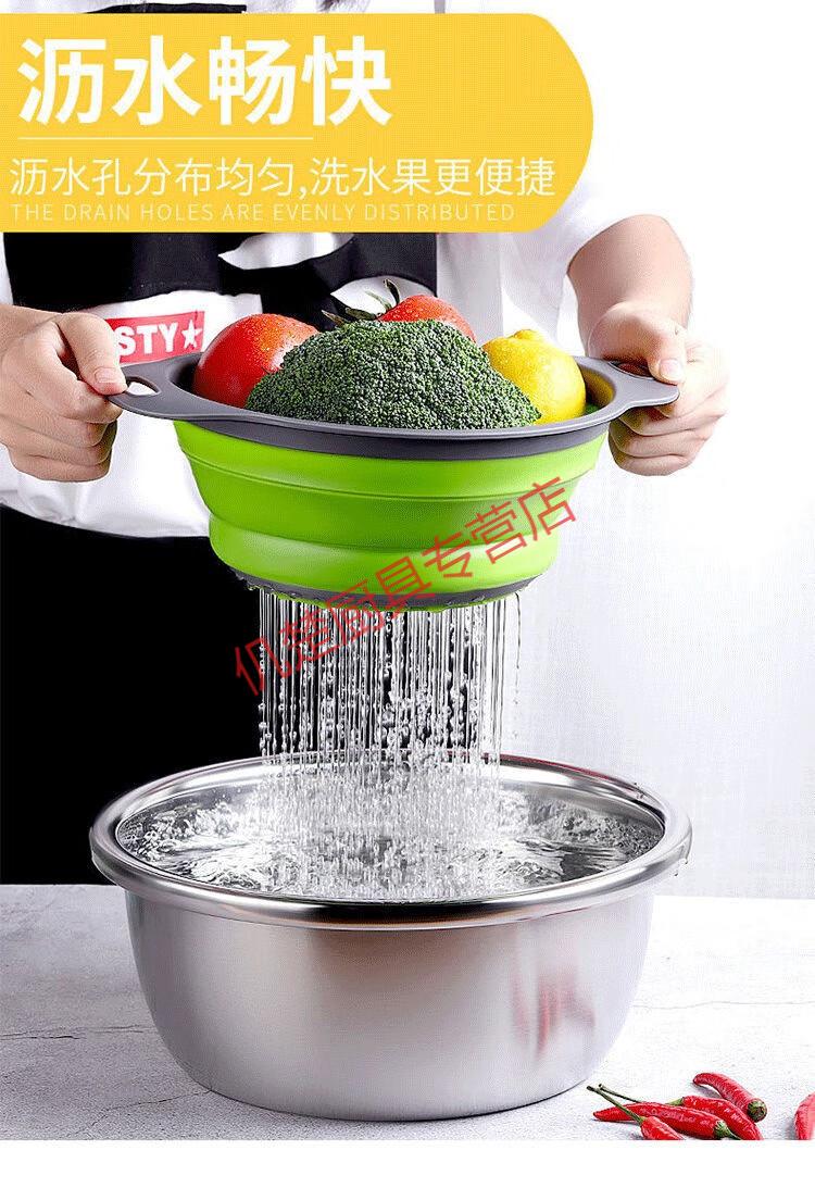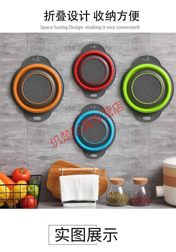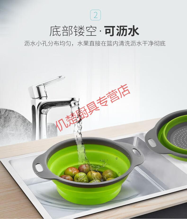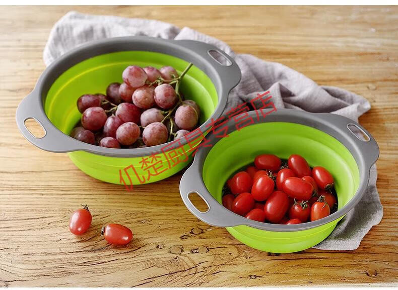 Muke double-layer folding drain basket silicone vegetable washing basket round retractable water filter basket fruit storage basket fruit plate fresh green square large size