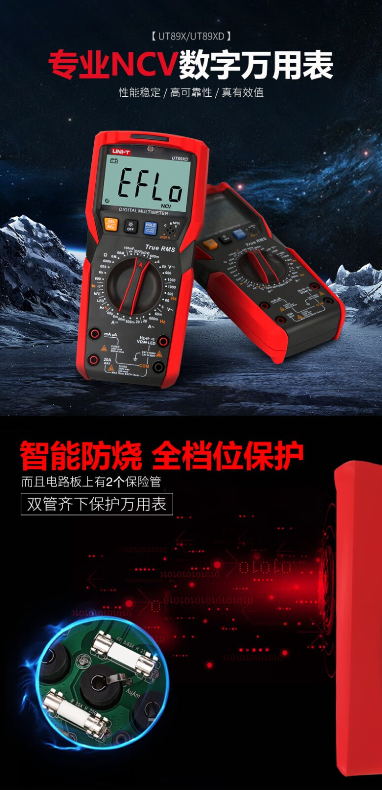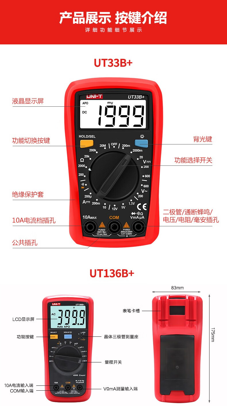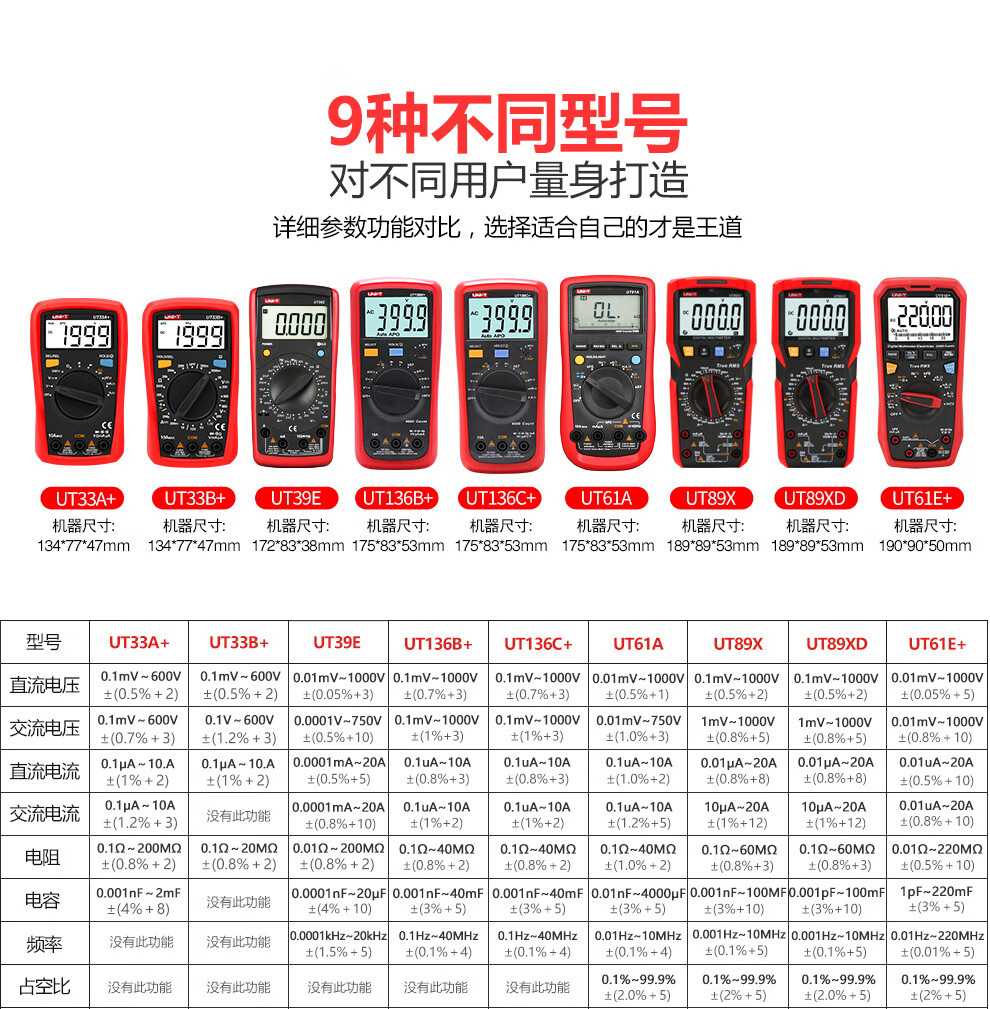 Ulide multimeter digital high-precision fully automatic digital display capacitance multi-function anti-burn electrician multimeter UT33B best-selling model UT890D+
