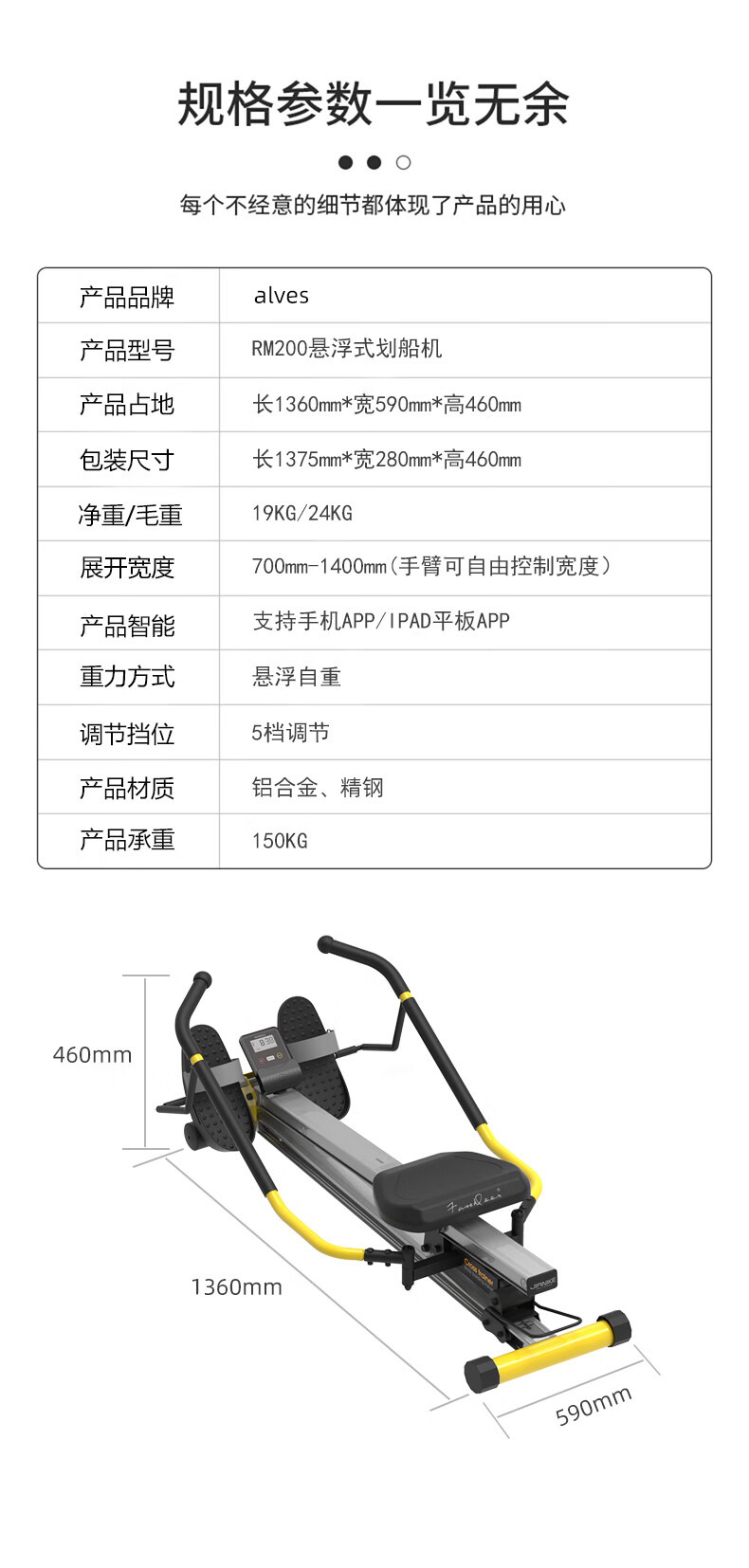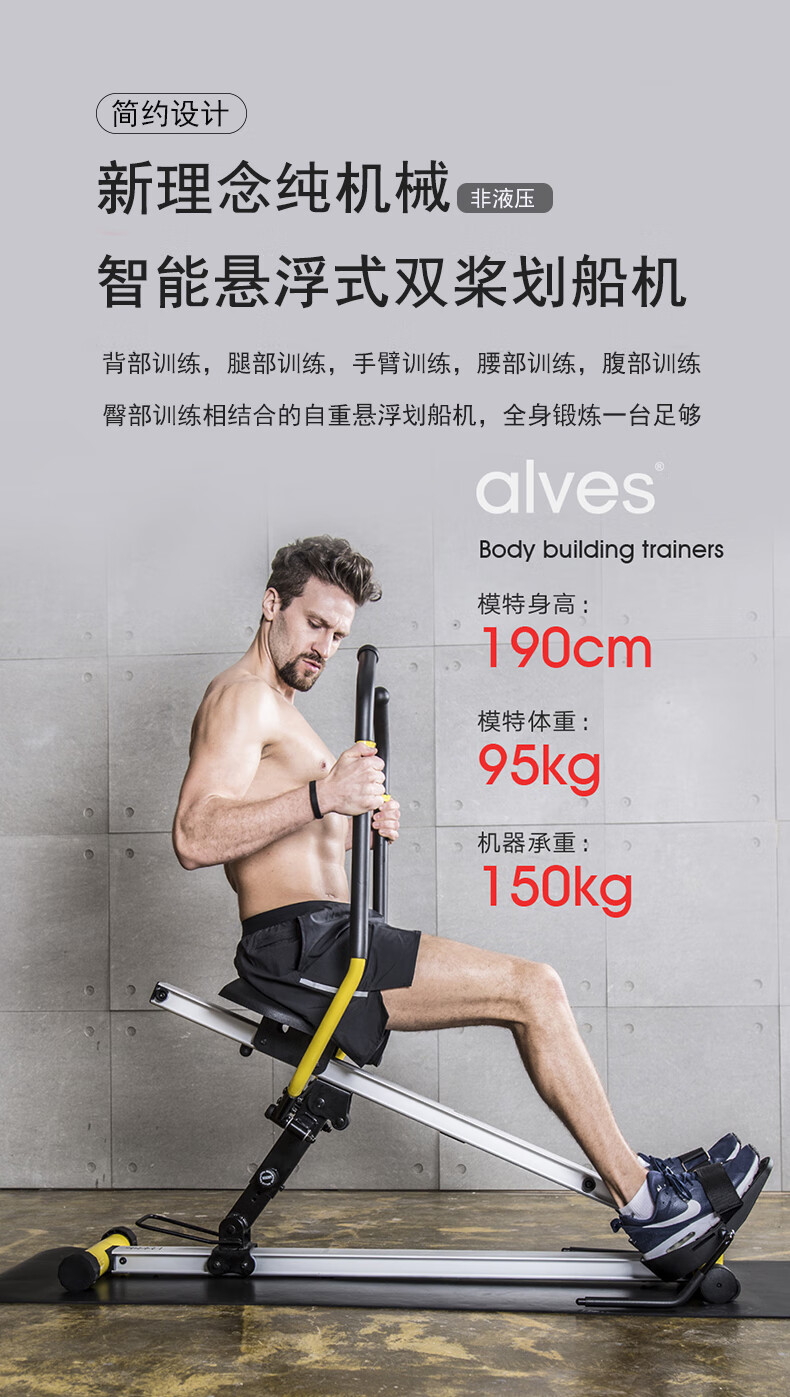 Alves rowing machine home self-weight suspended rowing machine indoor aerobic fitness equipment silent smart sculls rowing machine rowing machine red + floor mat + gloves