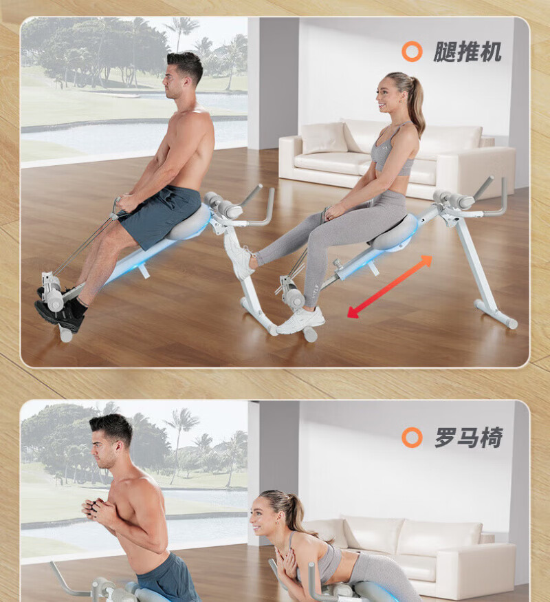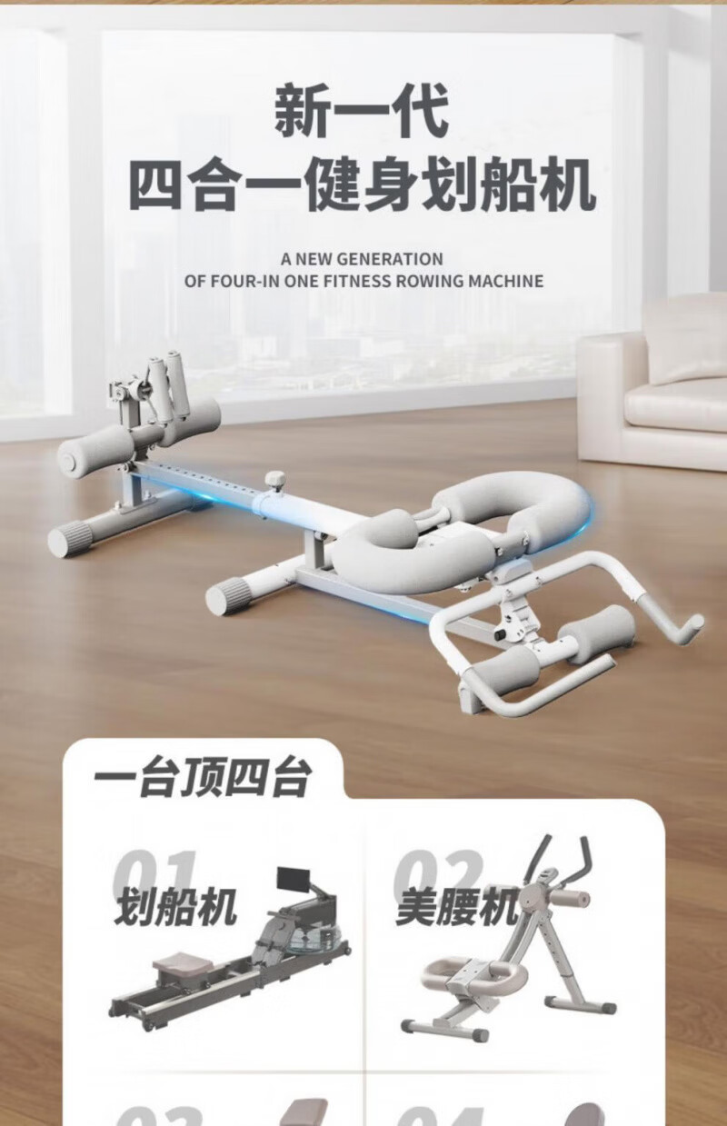 Wanda Kang four-in-one multi-function rowing machine, home fitness equipment, foldable and storageable abdominal training tool, multi-function rowing kneeling machine