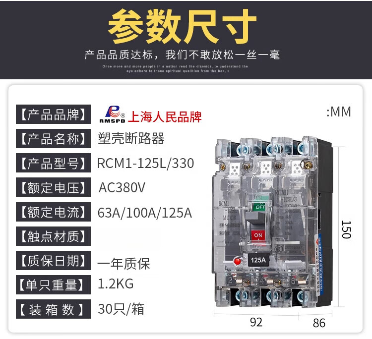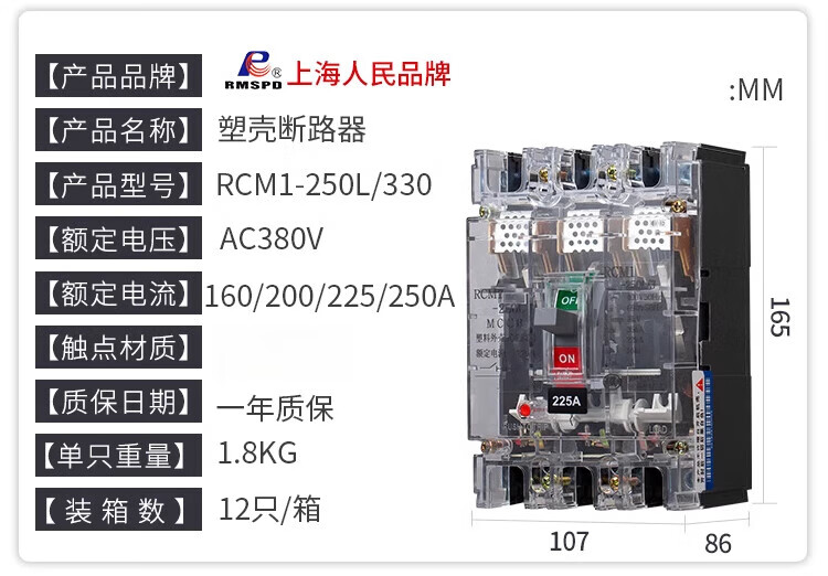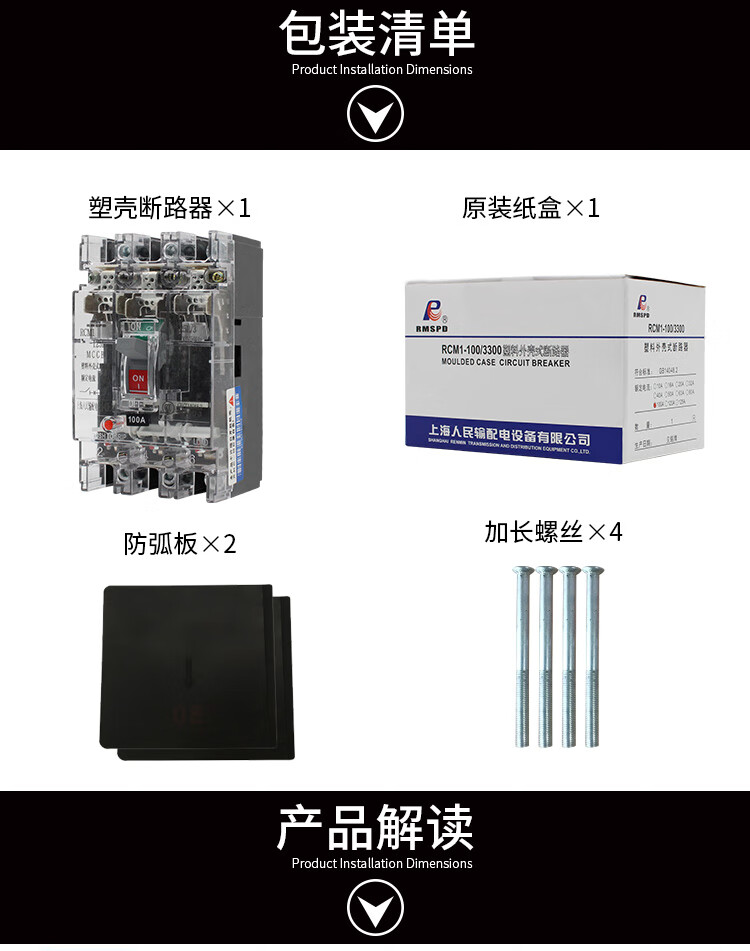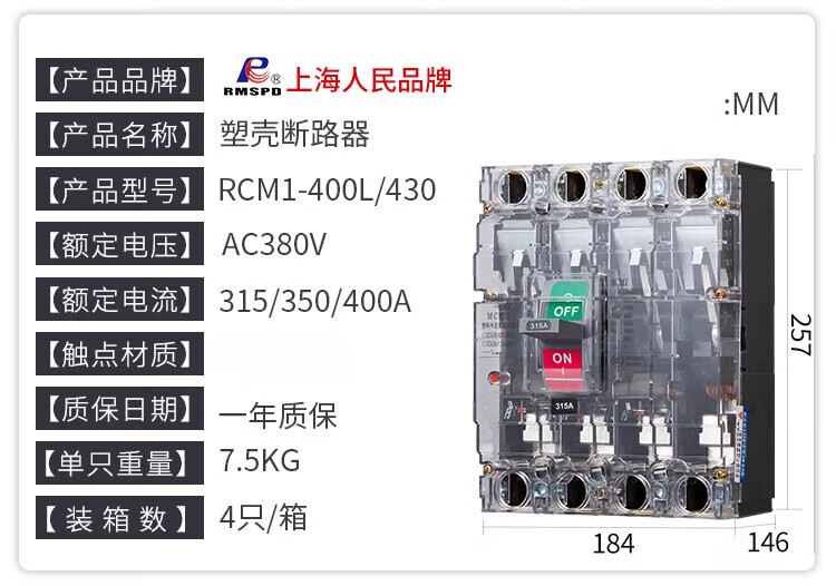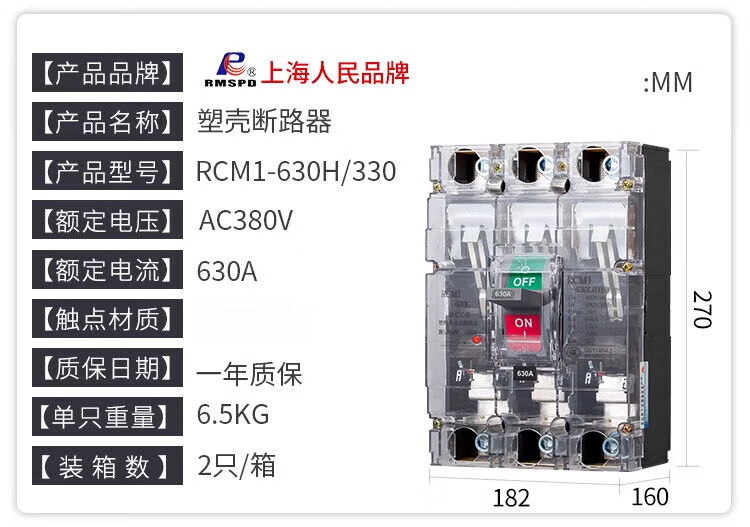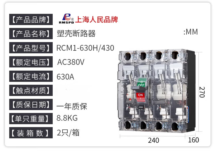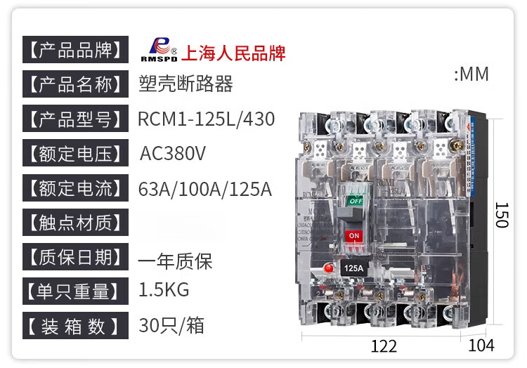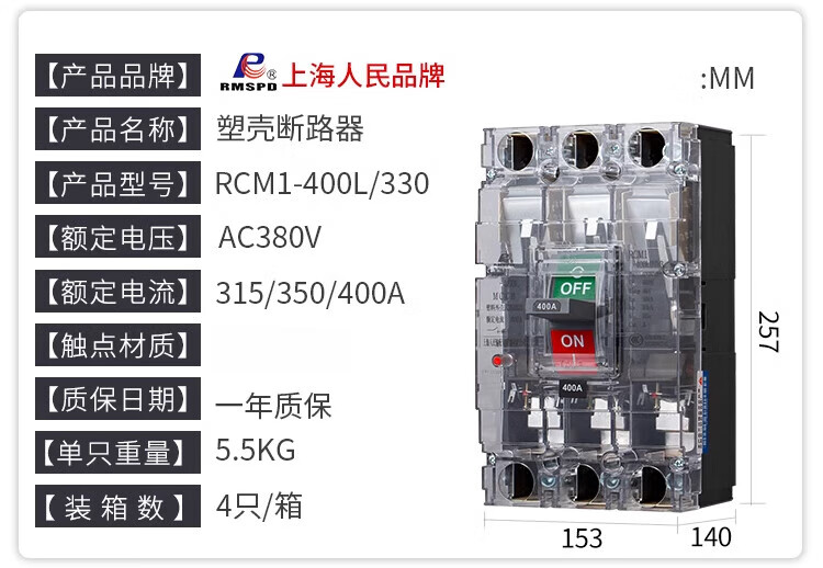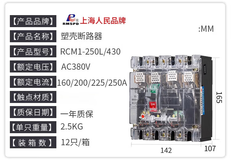 Shanghai People's RCM1 plastic case circuit breaker NM1-100A160A250A630A transparent air switch air-opening 100A 4p