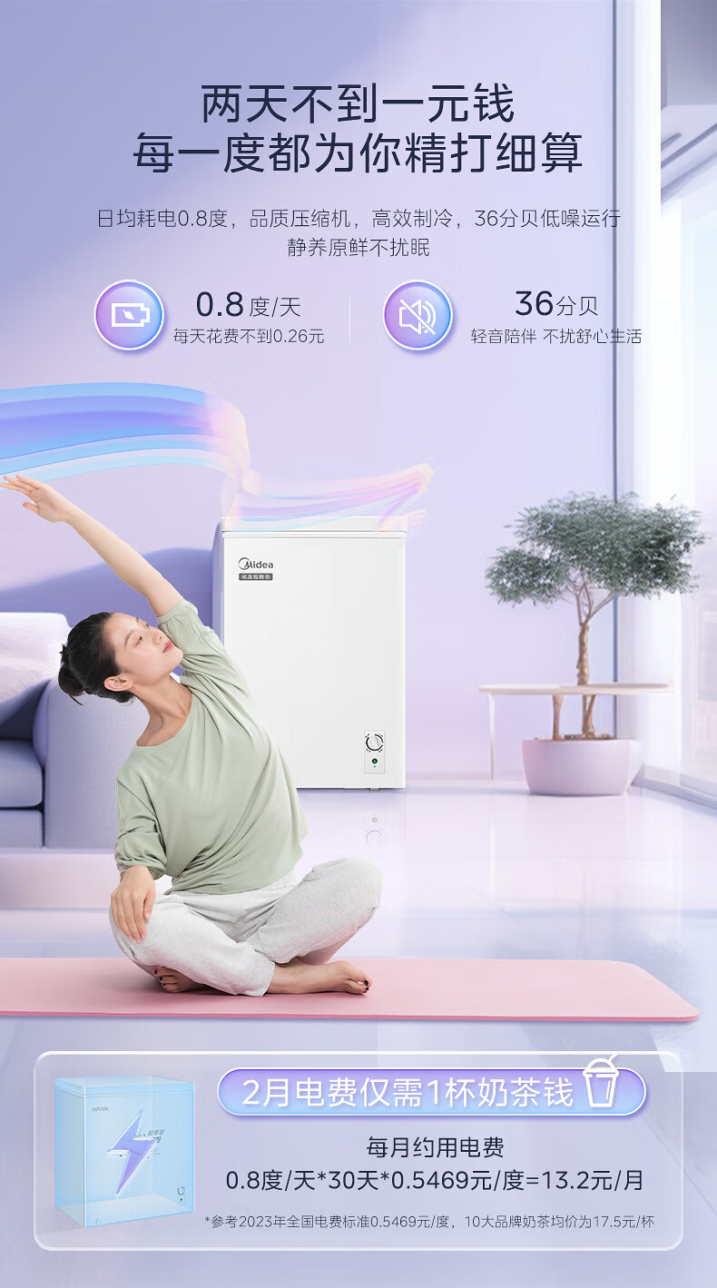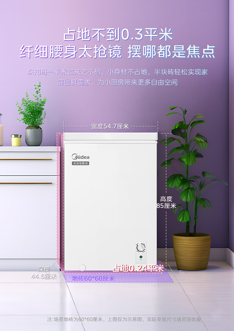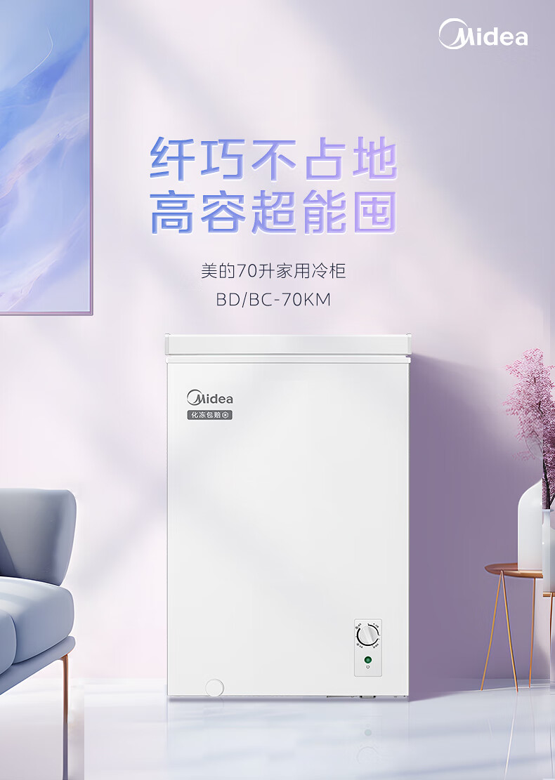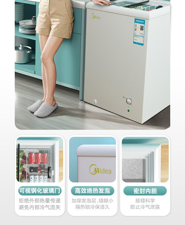 Midea Freezer Small Freezer Home Rental Refrigerator Stocking Frozen Meat Refrigeration Frozen Power Saving Small Commercial Freezer Ice Cream Cabinet Breast Milk Tea Freshness Cabinet Home Appliances National Subsidy Hot Sale Energy Saving Low Frost 70L