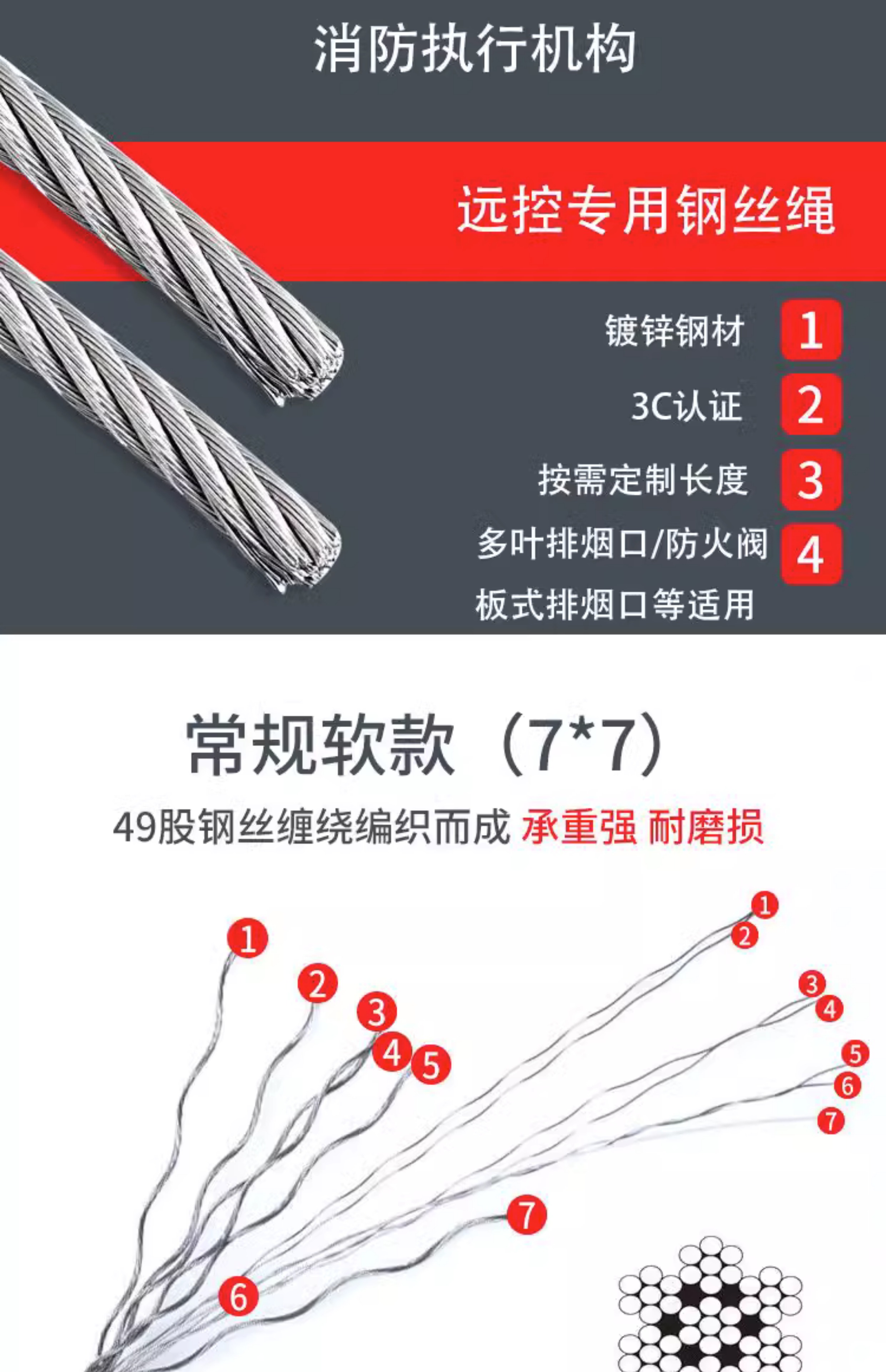 Fire smoke exhaust valve normally open and close remote control actuator positive pressure air outlet mechanism remote control smoke exhaust outlet wire rope mechanism (cordless)