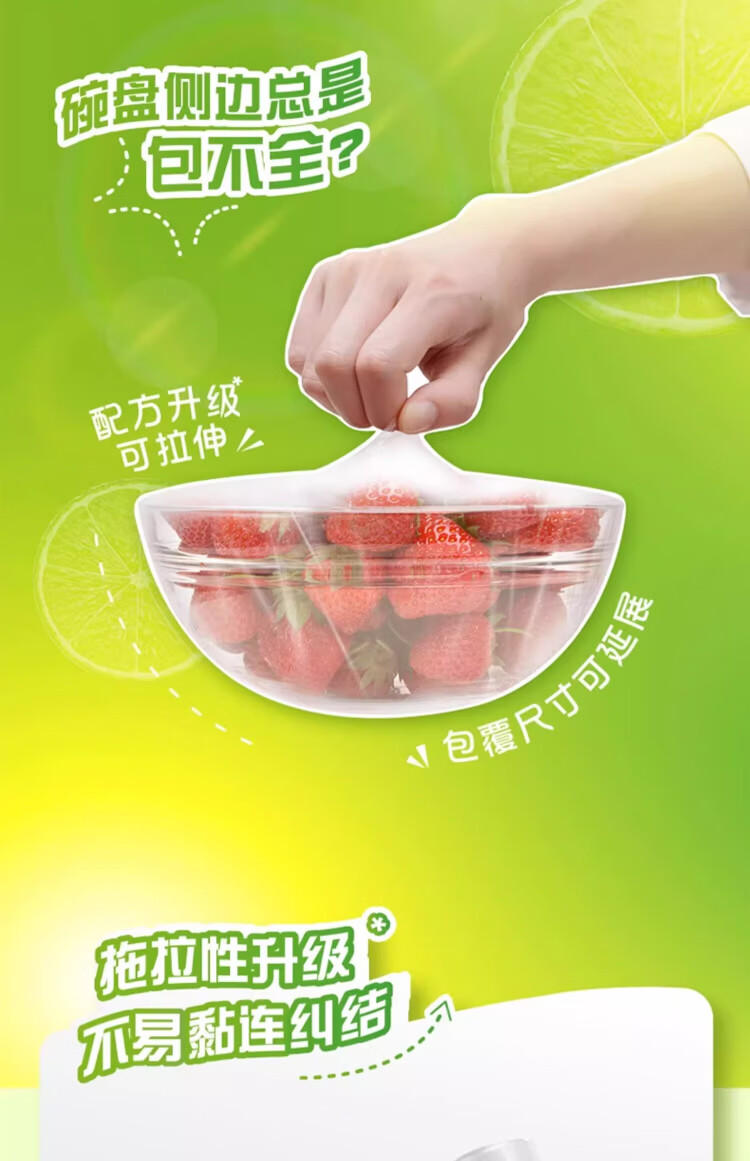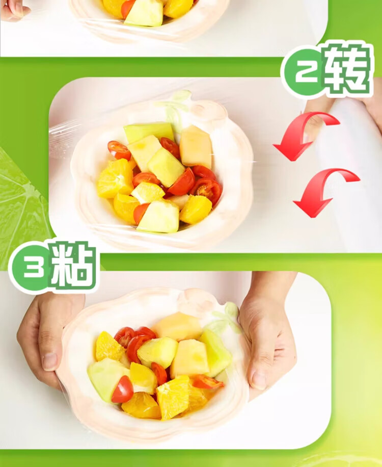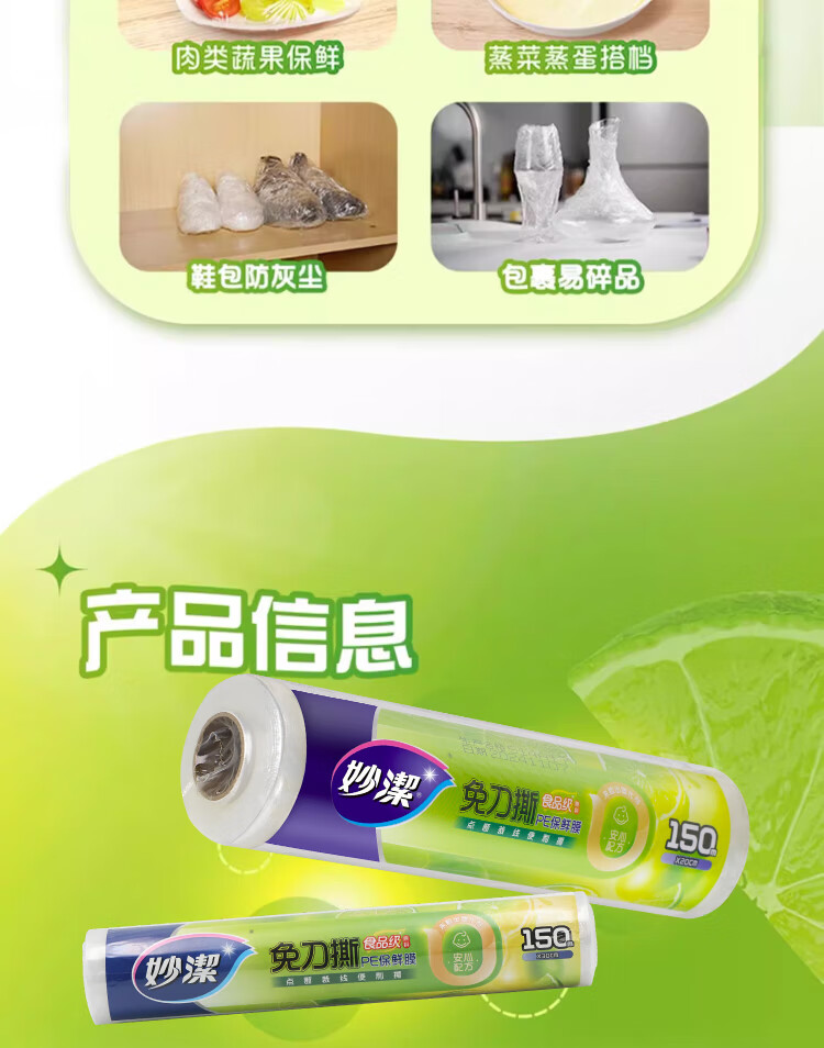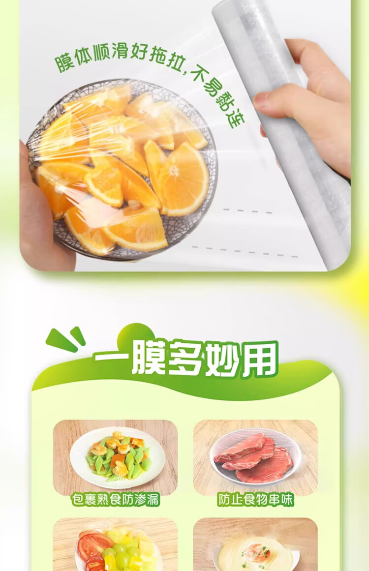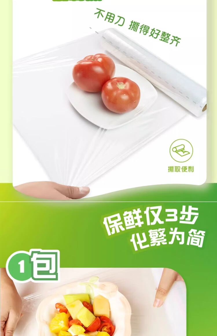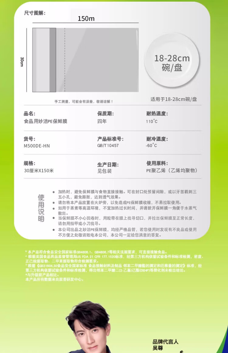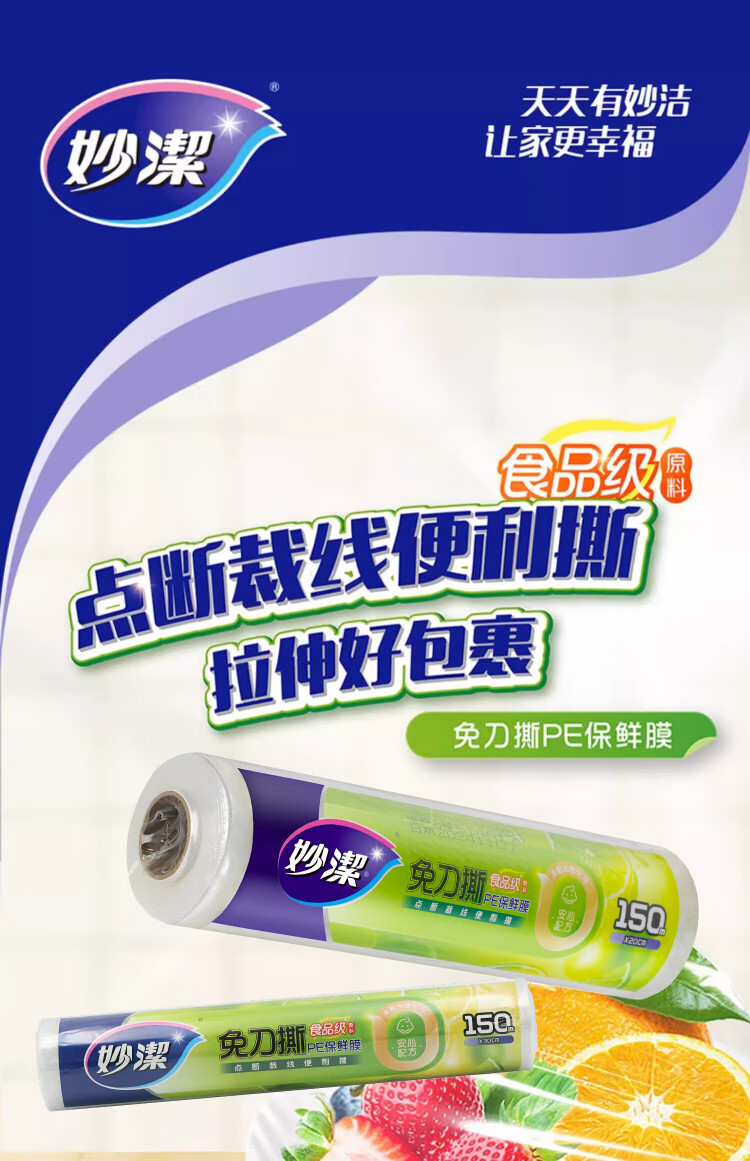 Miaojie knife-free cling film disposable PE food grade hand-tearable point-breaking cling film suitable for refrigerators and microwave ovens large bowl 30cm 150 meters economical size