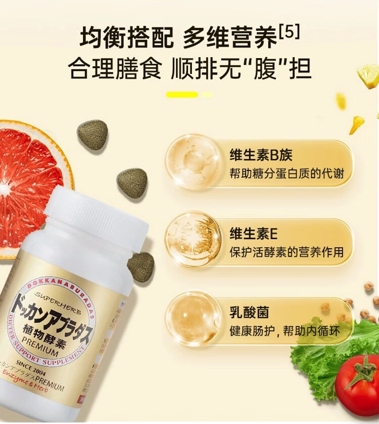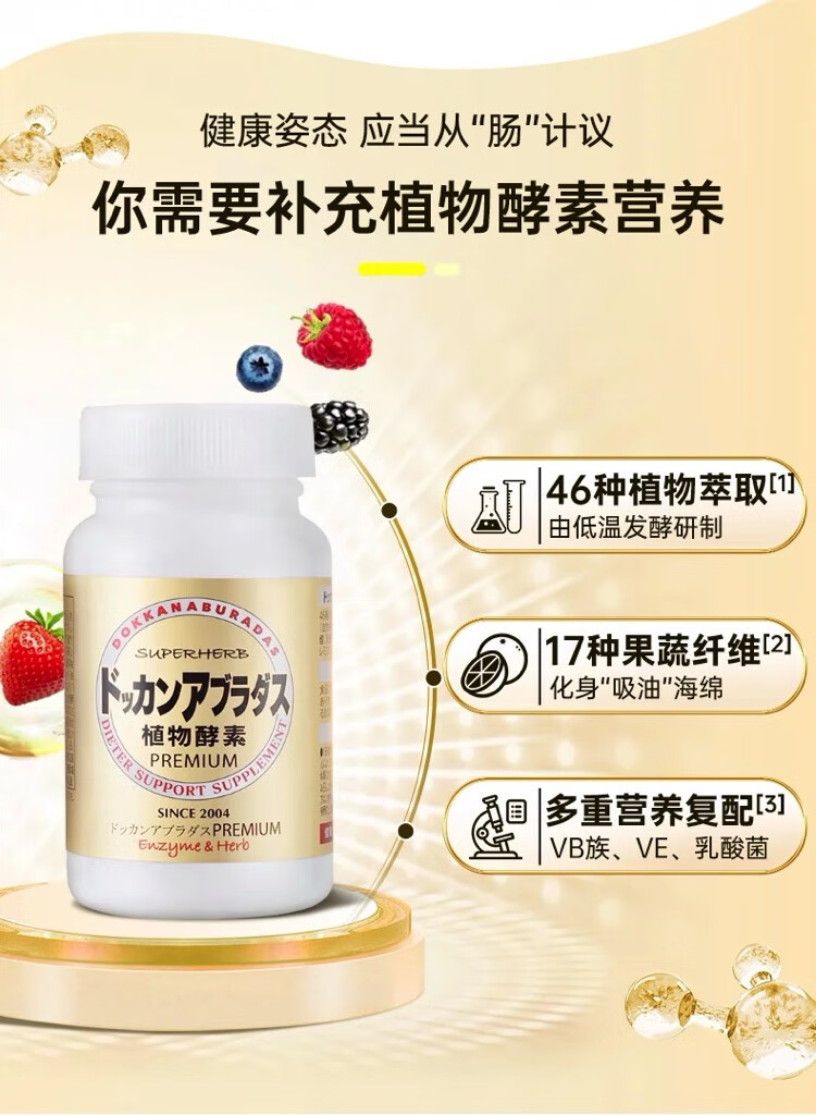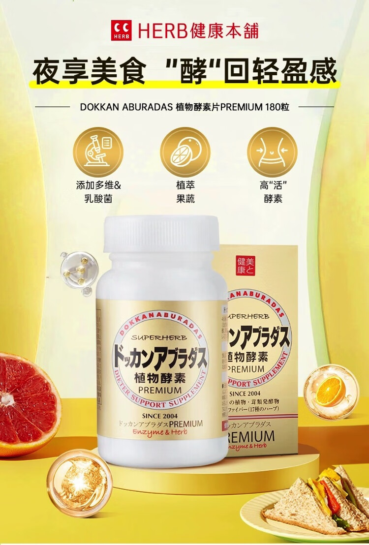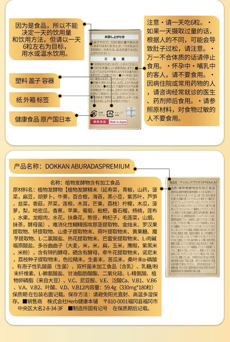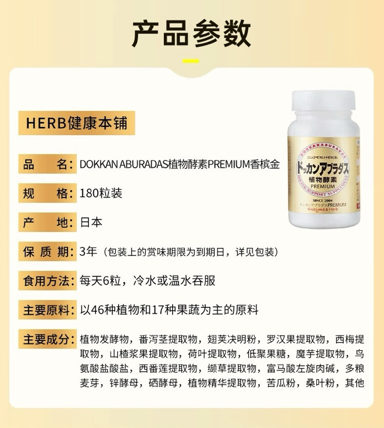 HERB health shop plant enzyme champagne gold Japanese dokkan enhanced version of Qingjuku stool fruit and vegetable filial element HERB plant enzyme champagne gold upgraded version 180 capsules