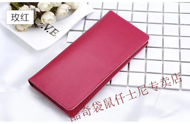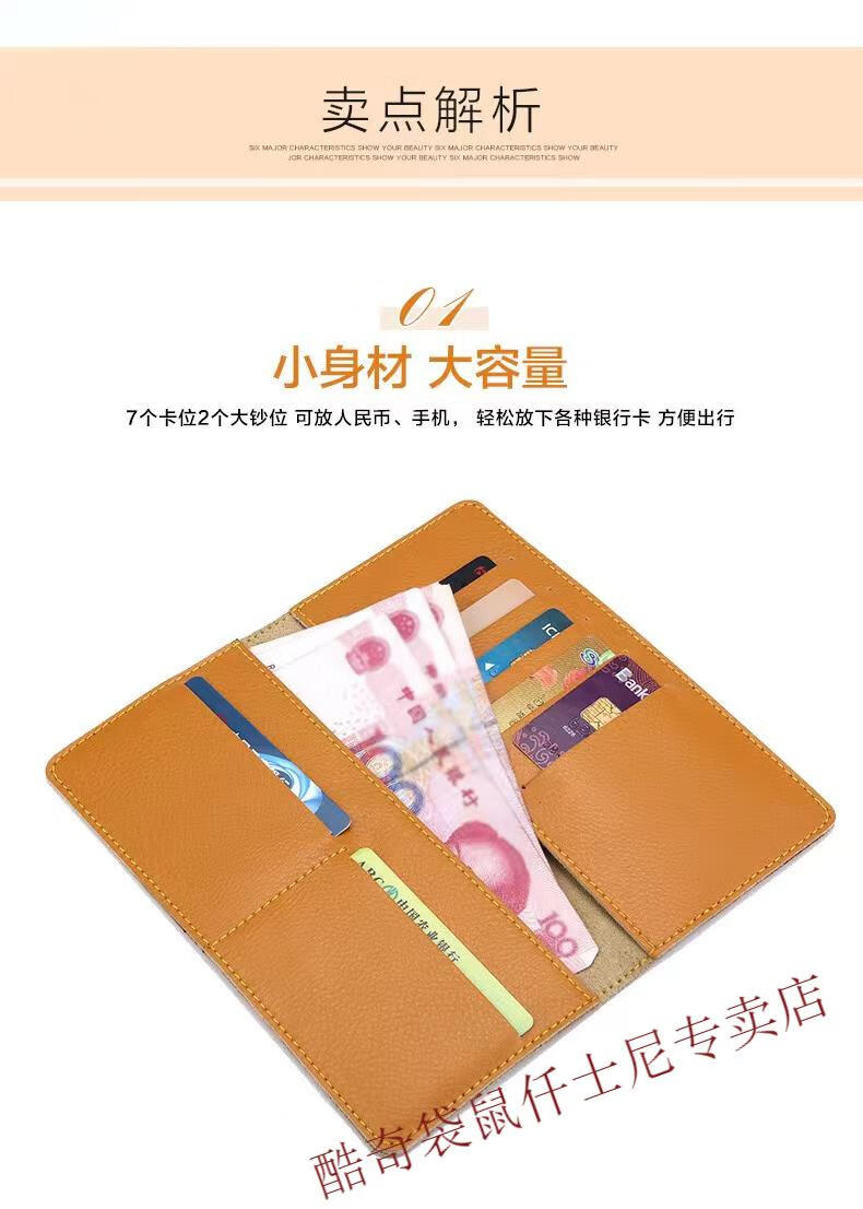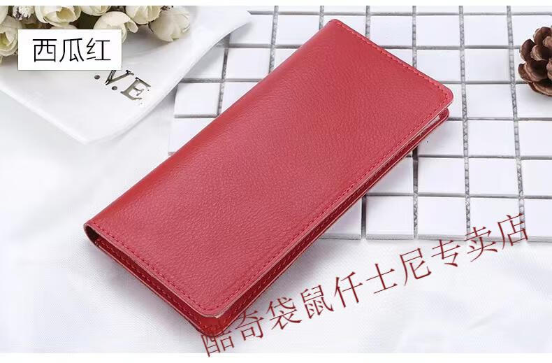 Kuqi Kangaroo Women's Simple Long Wallet Card Bag Fashionable Portable Thin Wallet Multifunctional Clutch Bag for Men and Women Burgundy