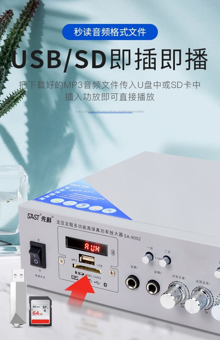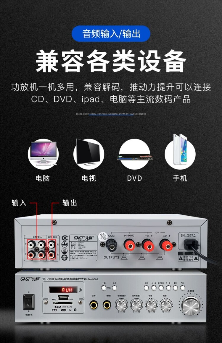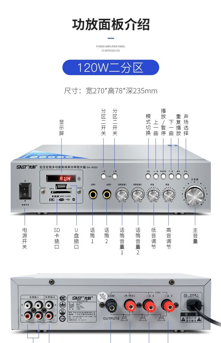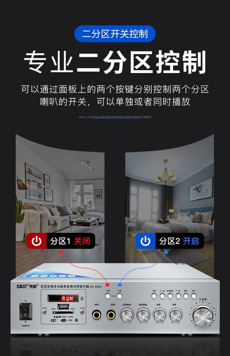 SAST 9006 Bluetooth partition power amplifier speaker speaker household fixed resistance and constant voltage audio plug-in card small public amplifier 100 watt constant resistance and constant voltage Bluetooth power amplifier