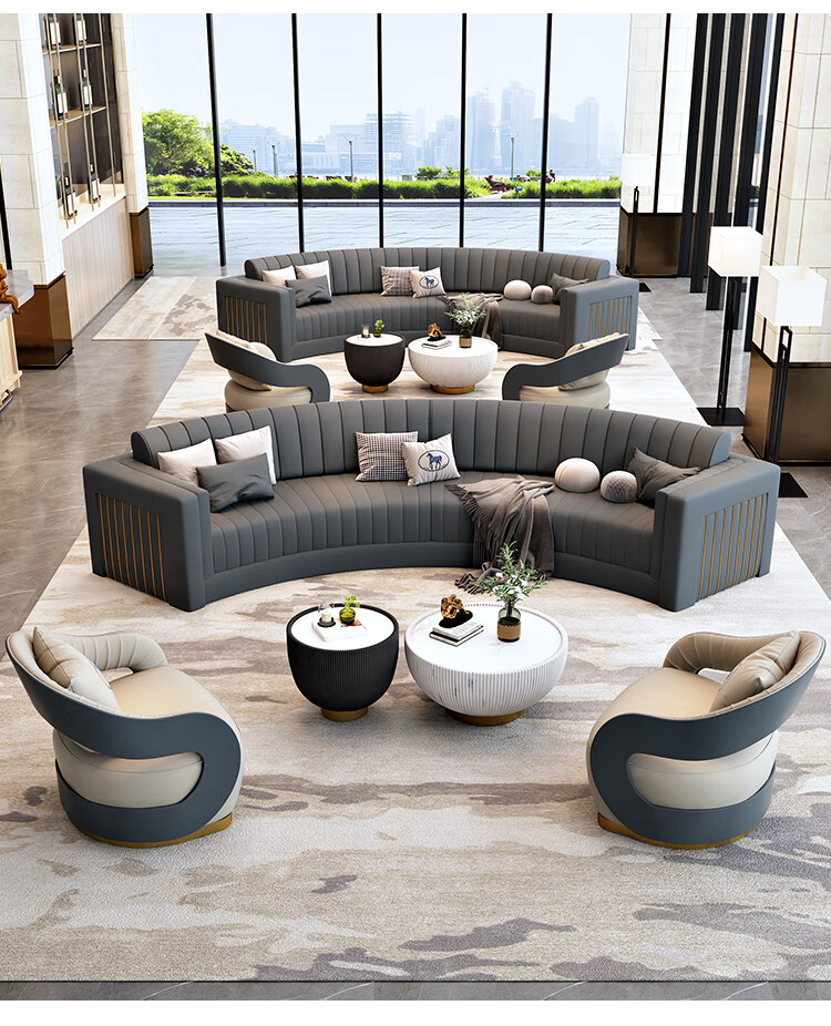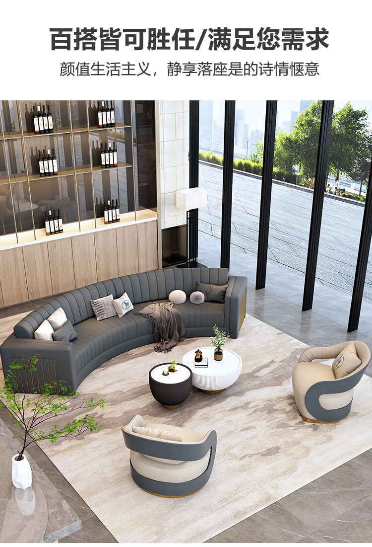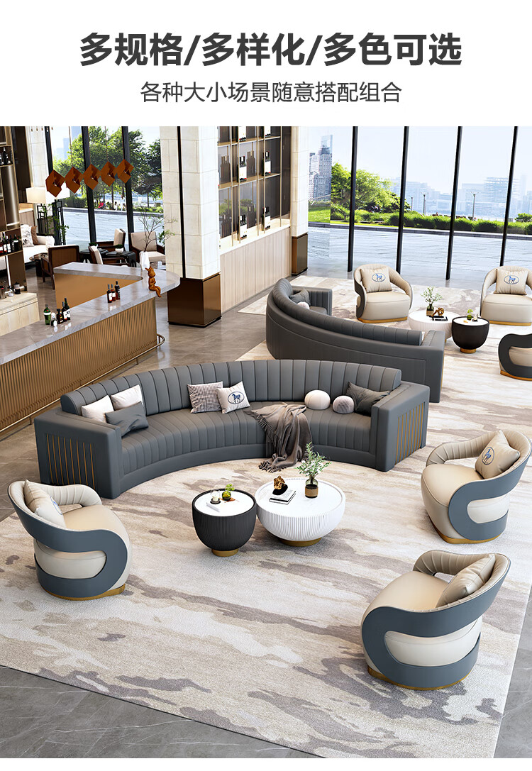 Zhihang Nordic Hotel Lobby Curved Sofa Sales Office Reception Hall Club Exhibition Hall Business Negotiation Table and Chair Combination 1+1+6+ Coffee Table Color Remarks