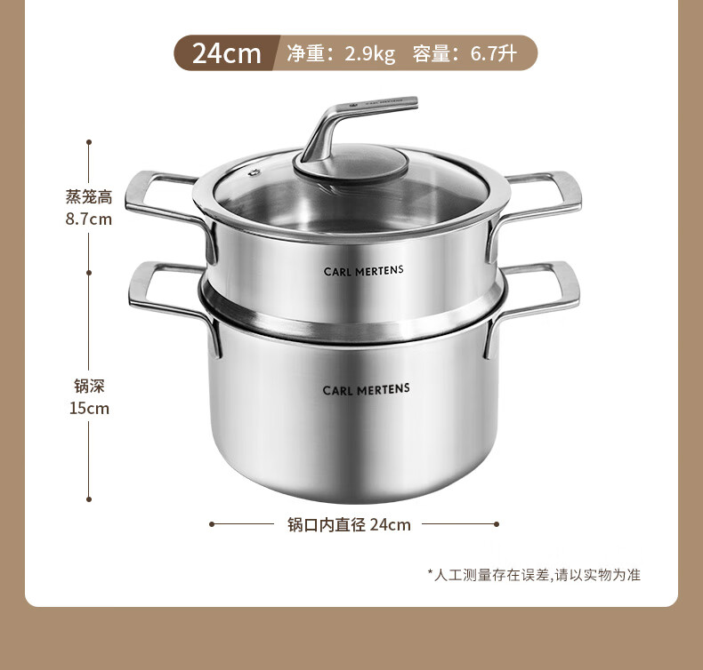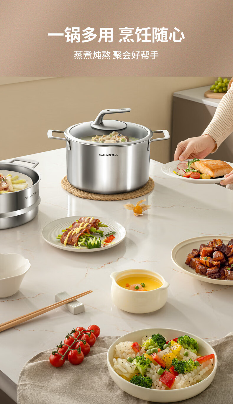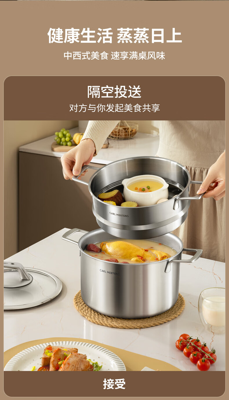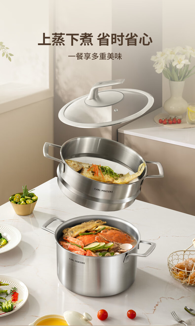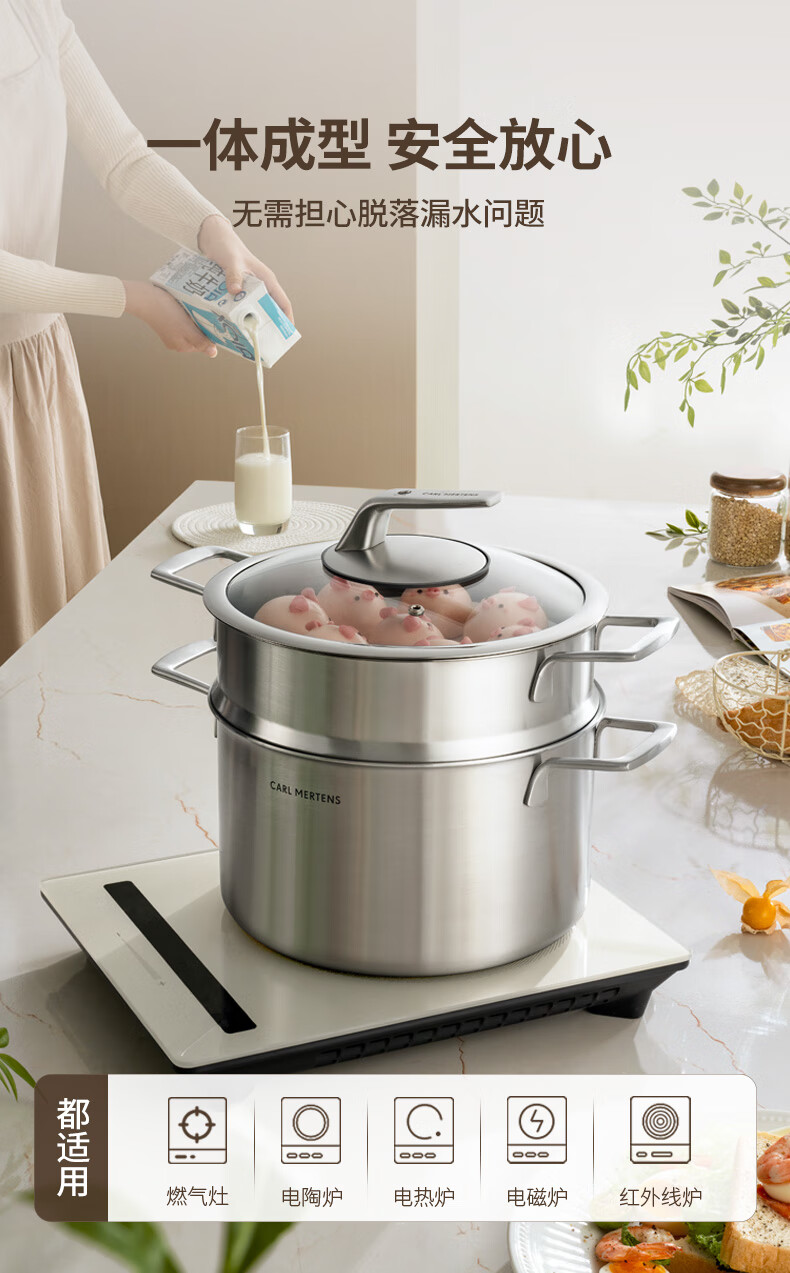 Three-headed eagle uncoated pure titanium steamer soup steaming stew multifunctional all-in-one household high temperature resistant special pot induction cooker universal pure titanium double layer soup steamer 24cm