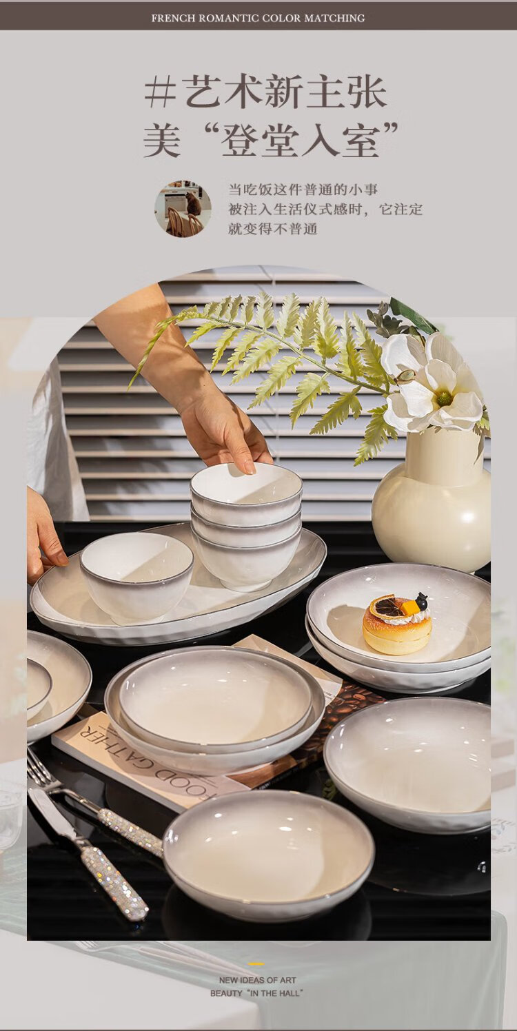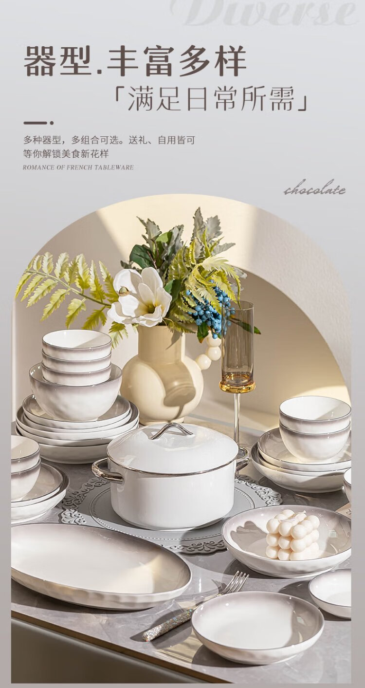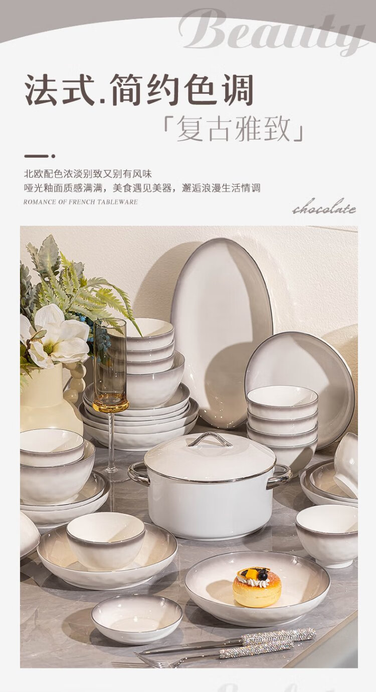 Shumang bowls, plates, and tableware for household Nordic ceramic tableware complete set of silver-painted dishes, tableware, moving gift, housewarming gift, 12-person meal with soup pot, gift box, 60-piece set