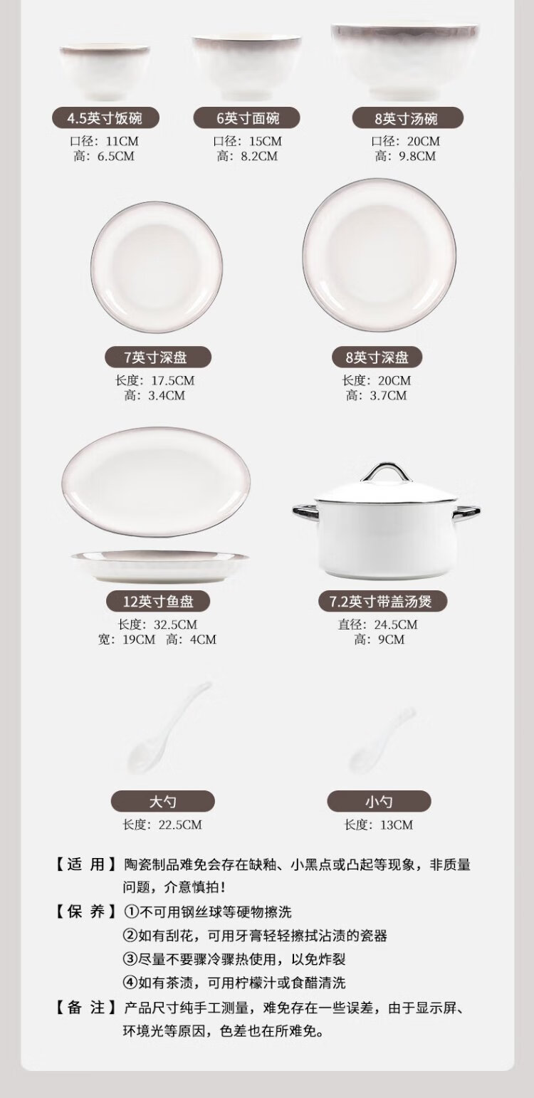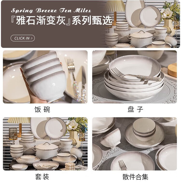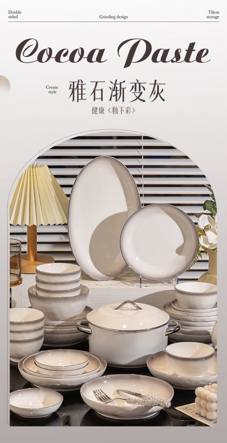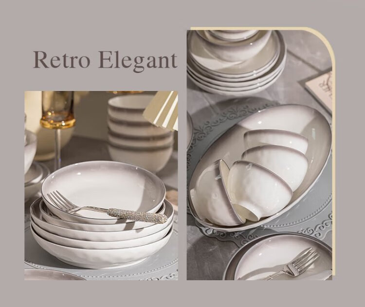 Shumang bowls, plates, and tableware for household Nordic ceramic tableware complete set of silver-painted dishes, tableware, moving gift, housewarming gift, 12-person meal with soup pot, gift box, 60-piece set