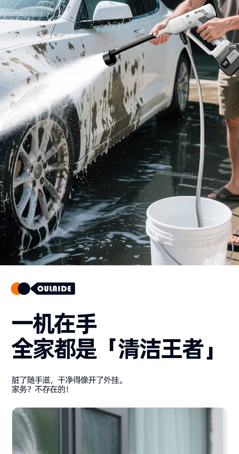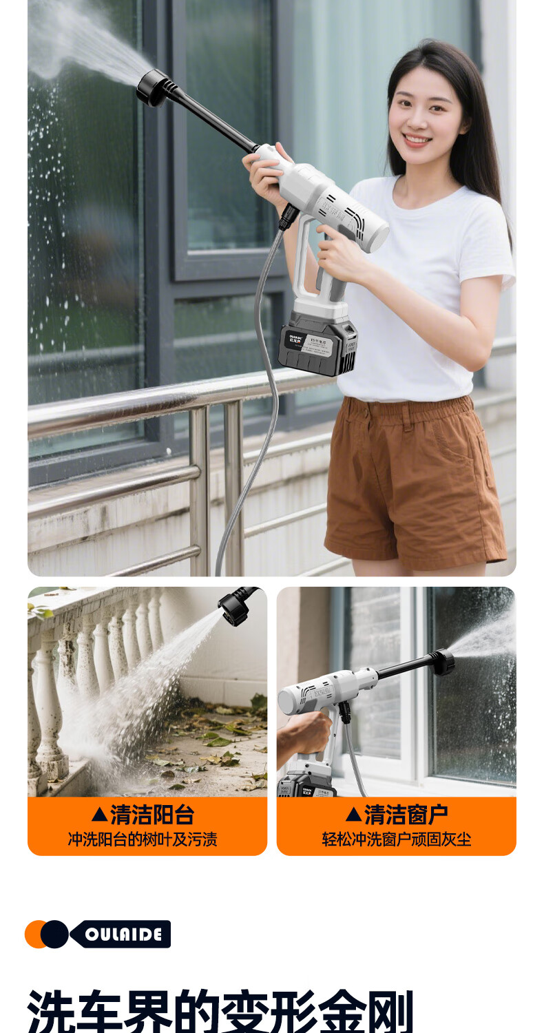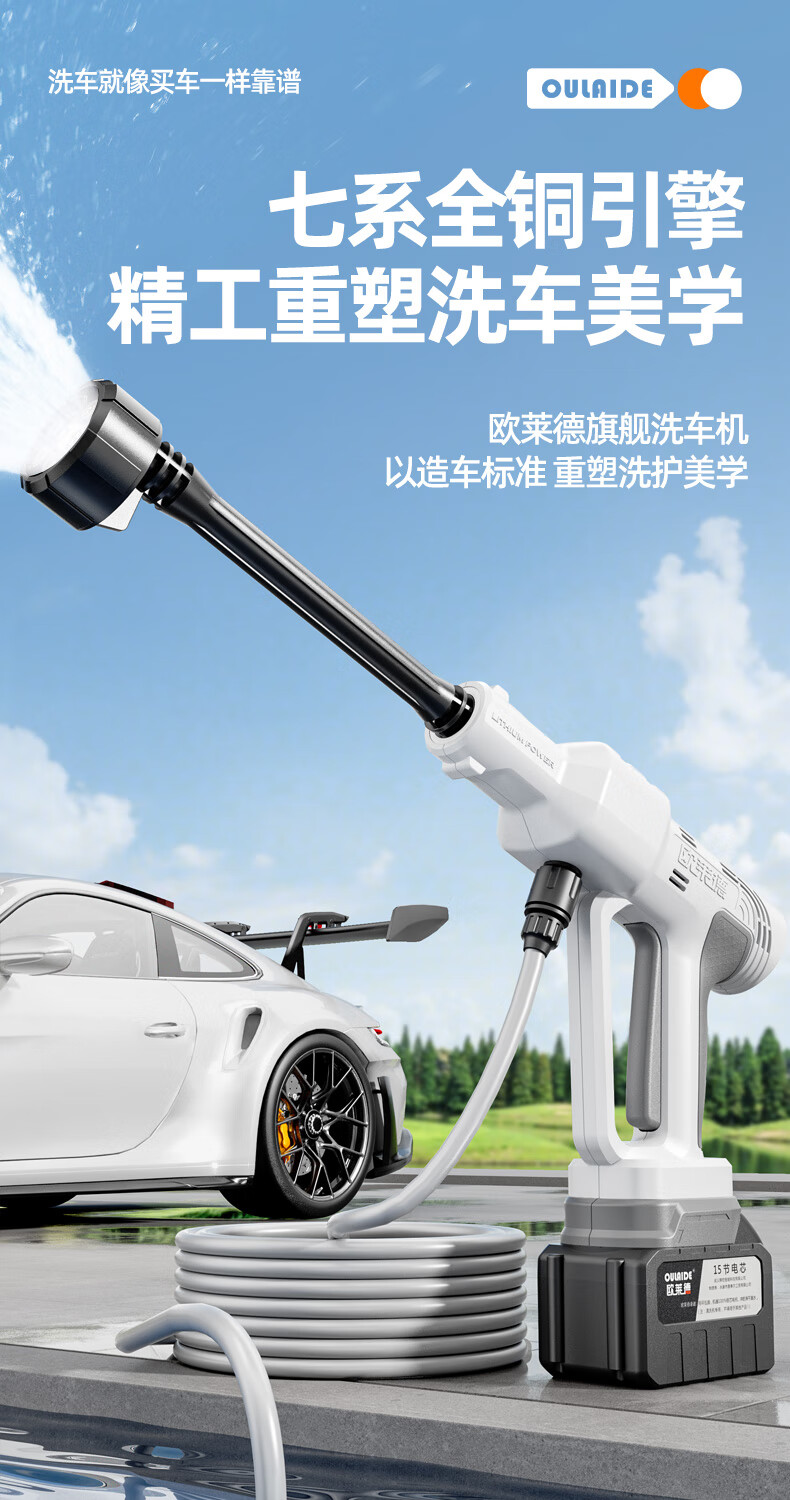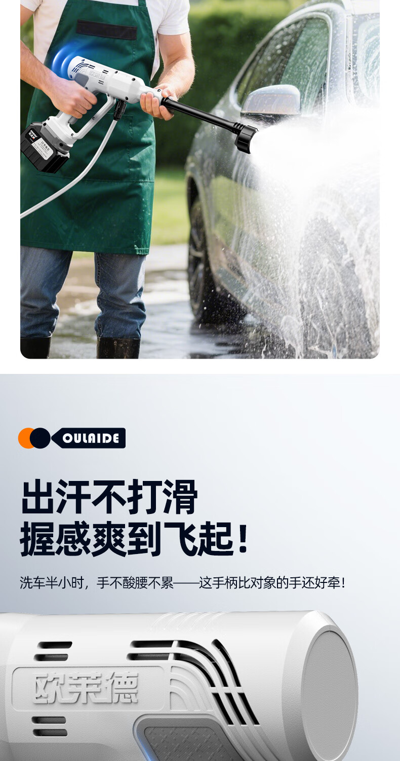 OLED car wash high-pressure water gun household wireless lithium-ion car wash machine high-power portable car brush pump car wash artifact car wash machine + car wash set 10-cell battery