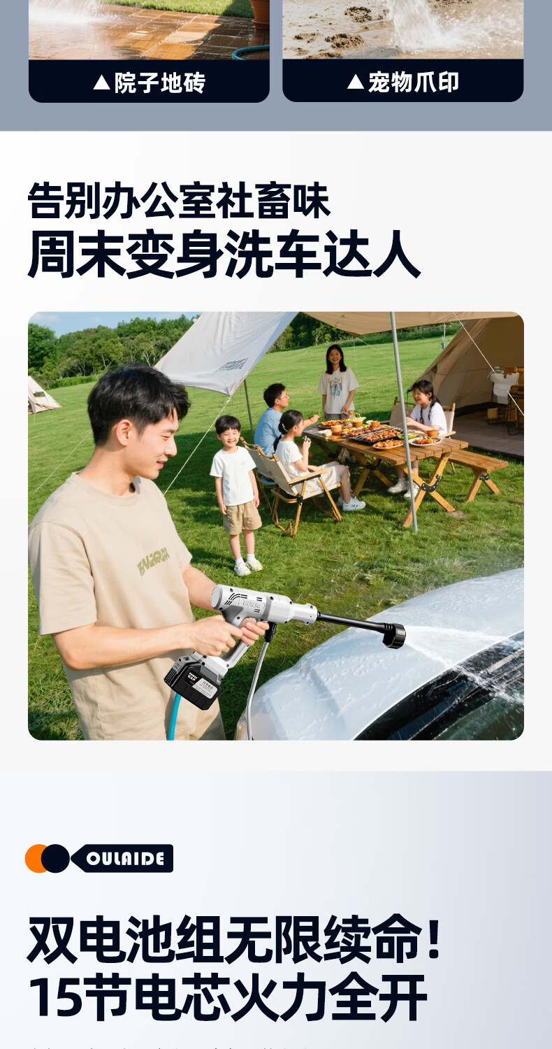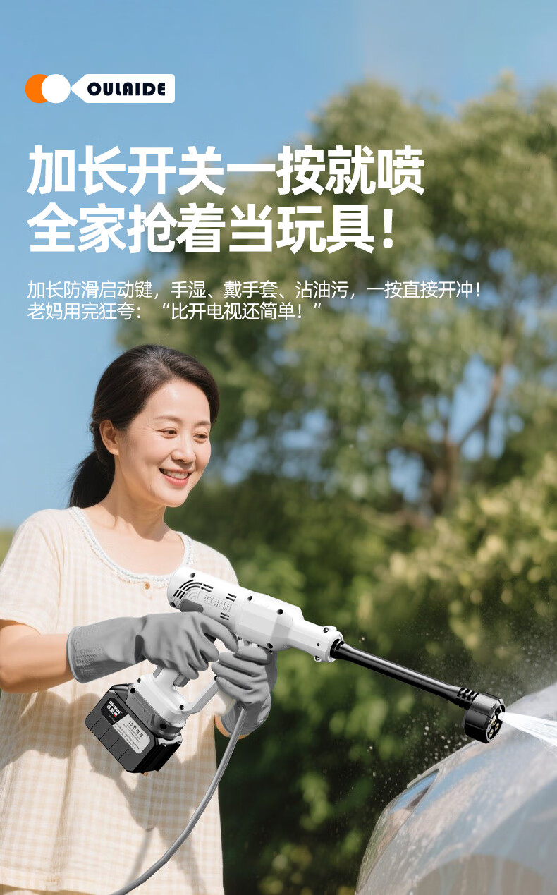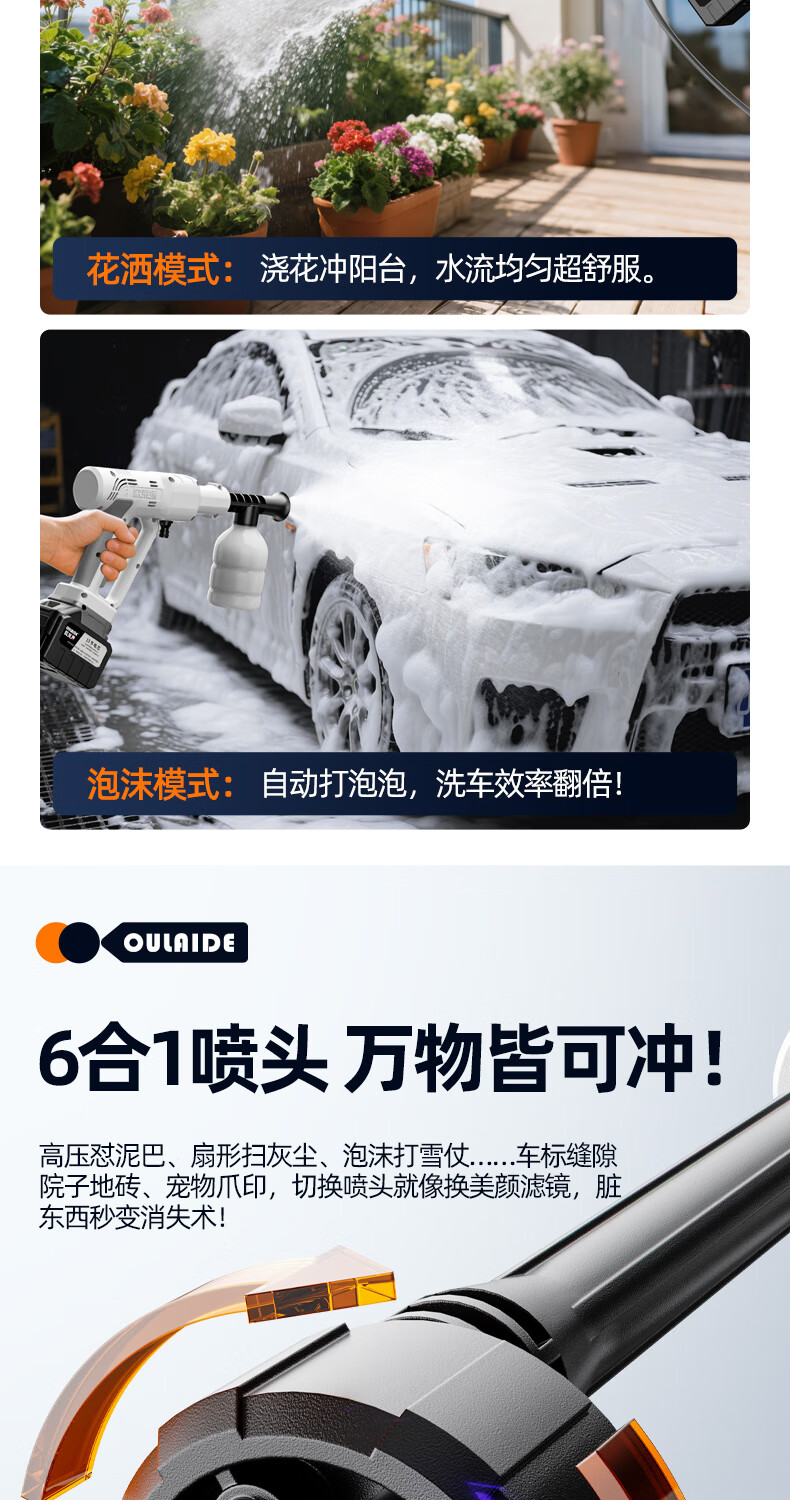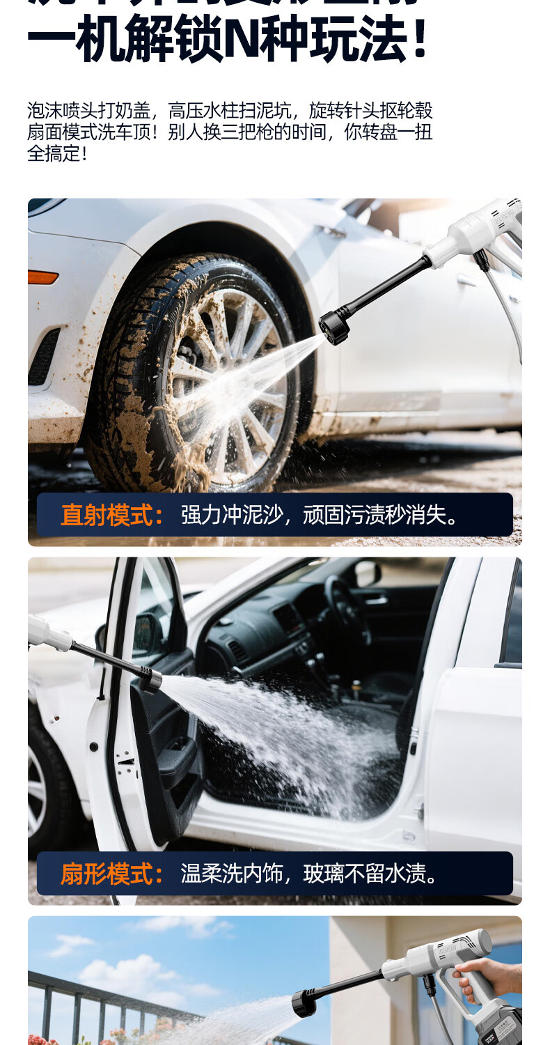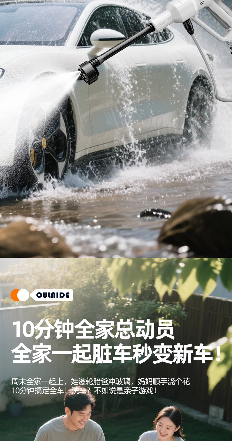 OLED car wash high-pressure water gun household wireless lithium-ion car wash machine high-power portable car brush pump car wash artifact car wash machine + car wash set 10-cell battery