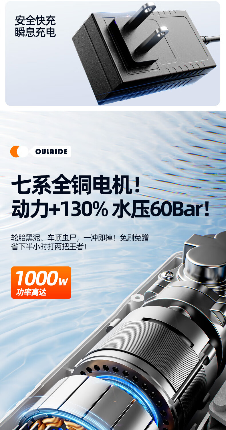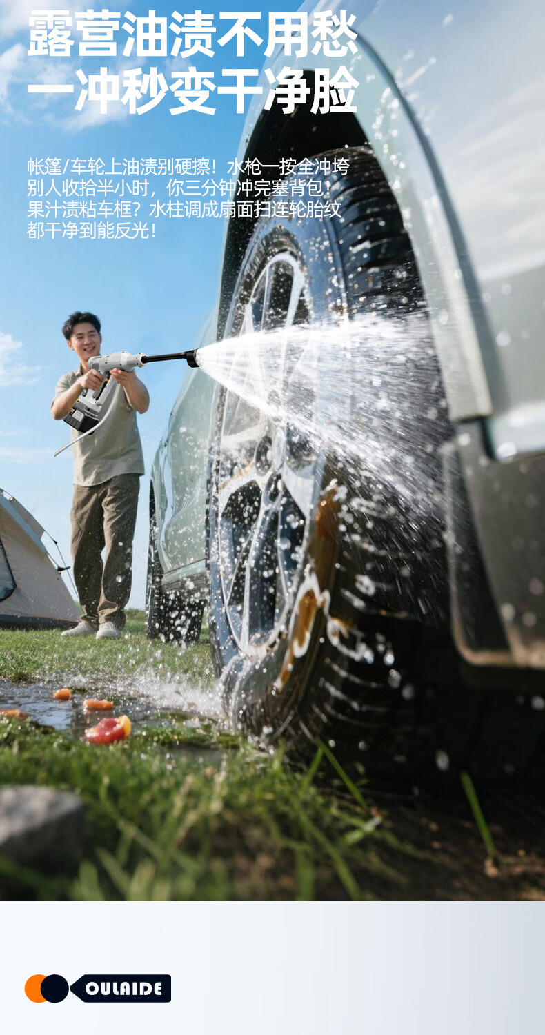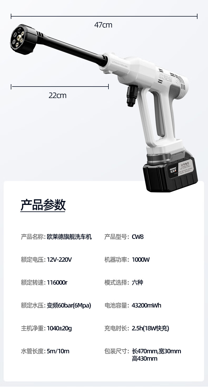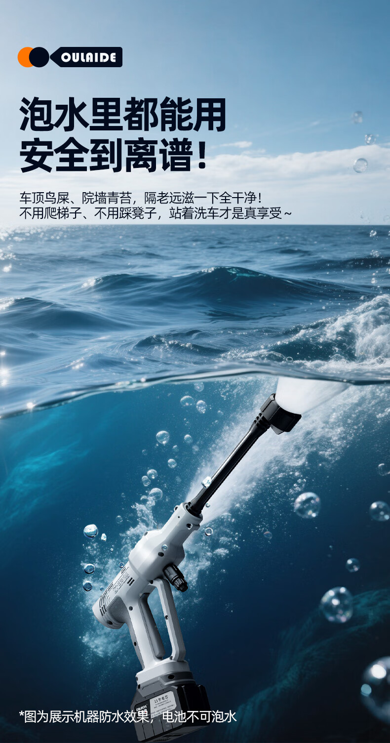 OLED car wash high-pressure water gun household wireless lithium-ion car wash machine high-power portable car brush pump car wash artifact car wash machine + car wash set 10-cell battery