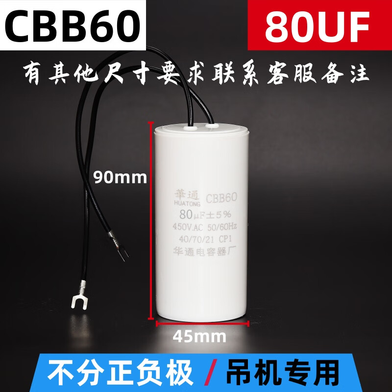CBB60 crane electric hoist starting capacitor 30/35/40/45/50/60/70/80UF450V running capacitor 70UF-crane
