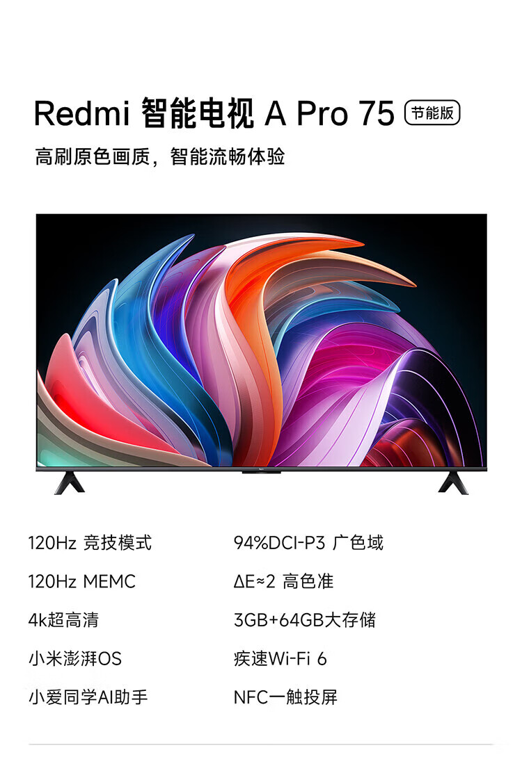 Xiaomi (MI) TV 75-inch A75 LCD 4K Ultra HD Large Size 2025 Redmi Pro Home Color TV Living Room Smart Screen Projection Bedroom Game Flat-screen TV Trade-in 75-inch Exclusive Package Installation Xiaomi Redmi+ Home Installation