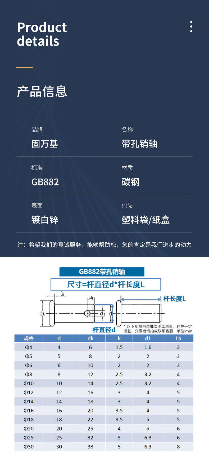 Guwanji galvanized GB882 pin positioning pin flat head with hole cylindrical pin T-shaped pin interspersed pin national standard galvanized material M10x70 10 sets