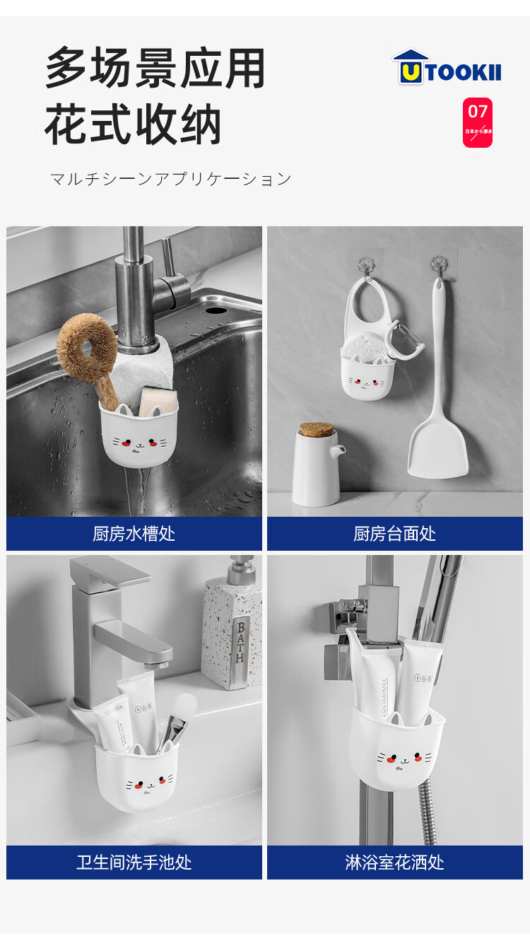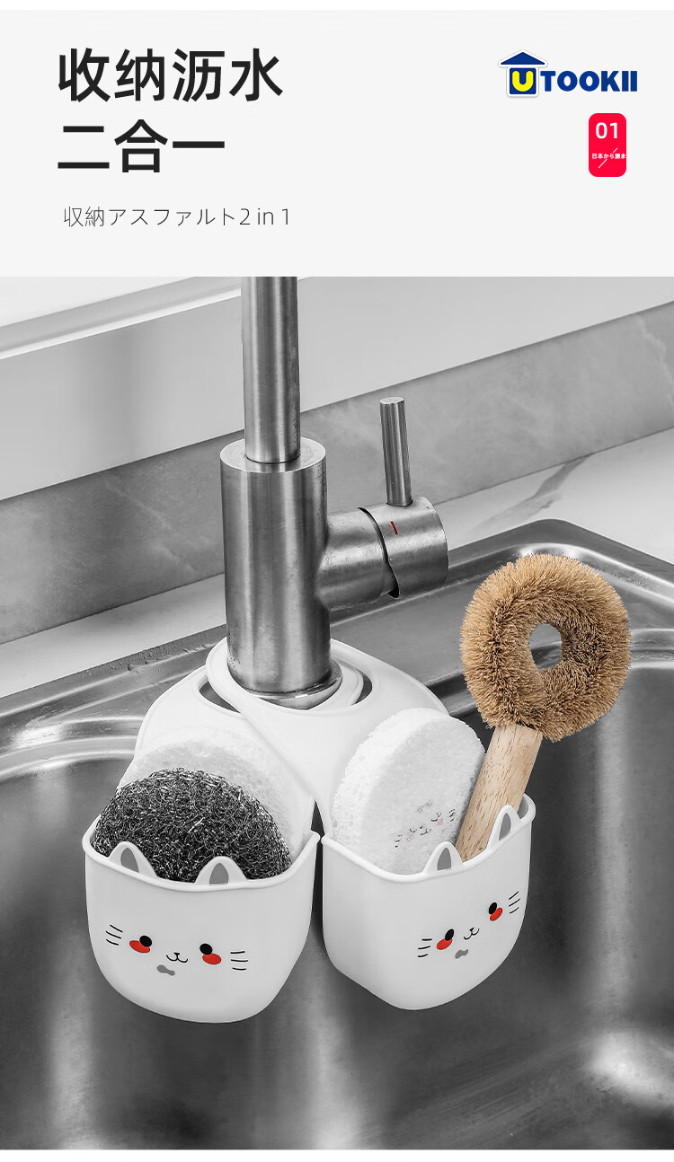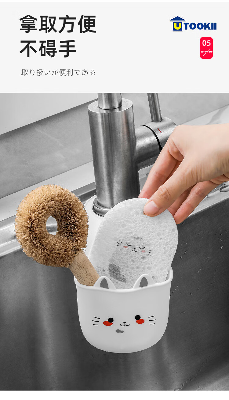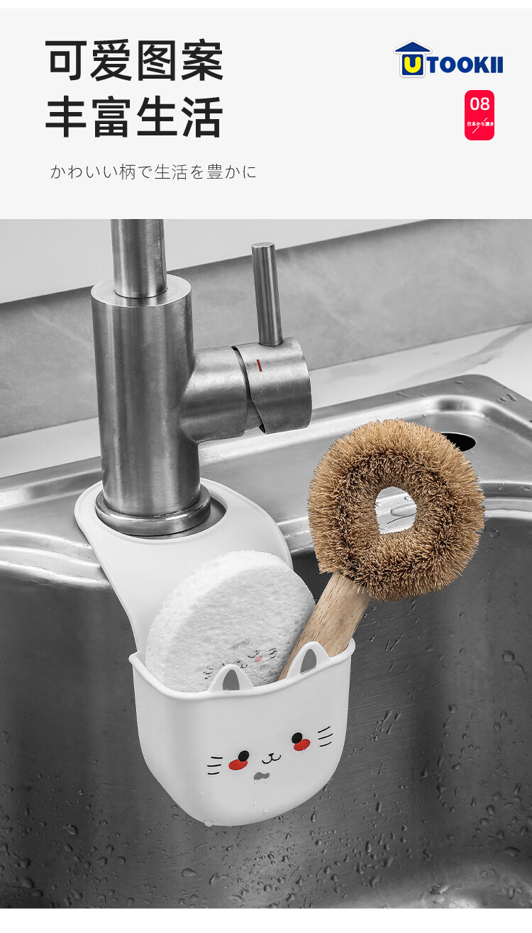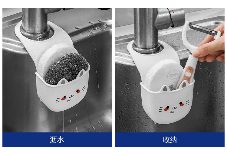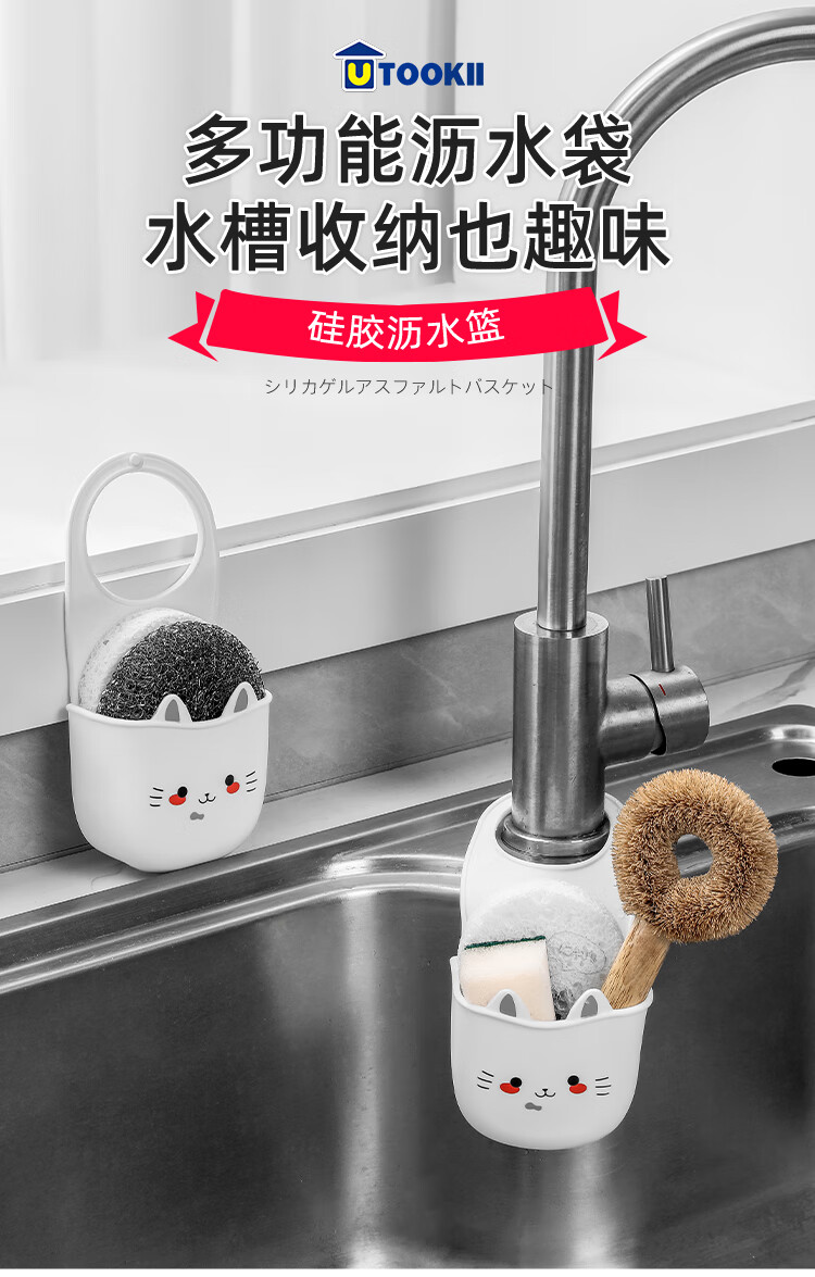 Japanese sink drain basket hanging bag dishwashing faucet storage rack kitchen supplies sink punch-free hanging basket 1 silicone cat drain basket