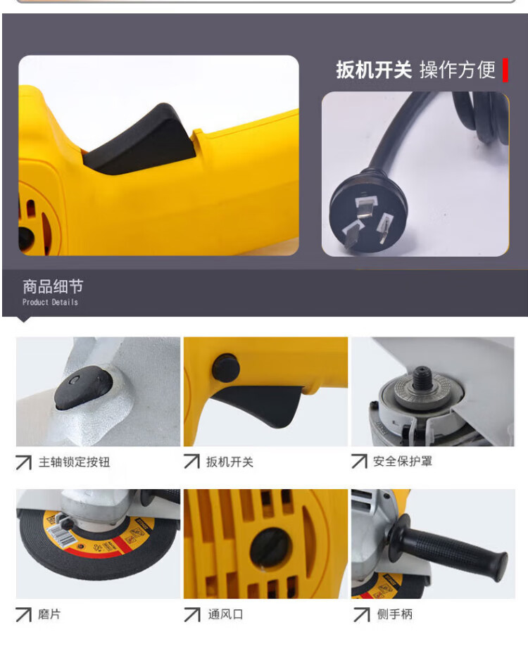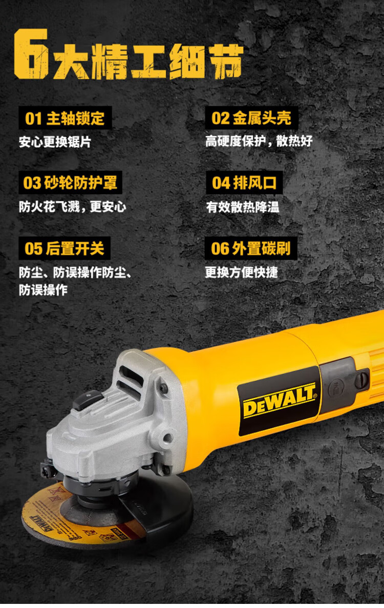 DEWALT angle grinder 220V plug-in cutting and polishing machine electric grinder hand grinder grinder tool DWE8100T 100mm 720W rear switch