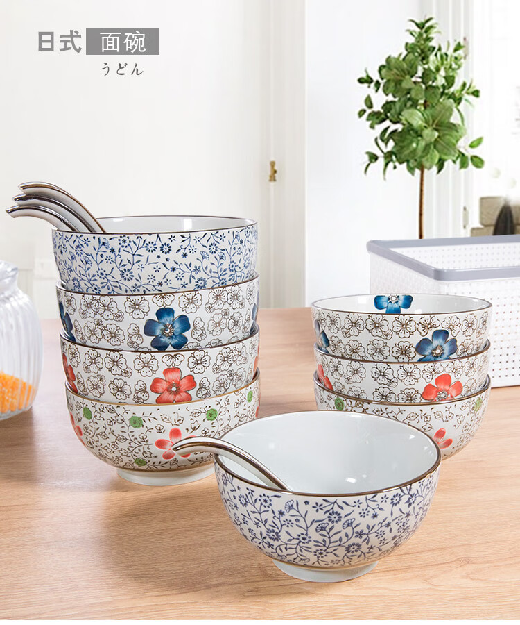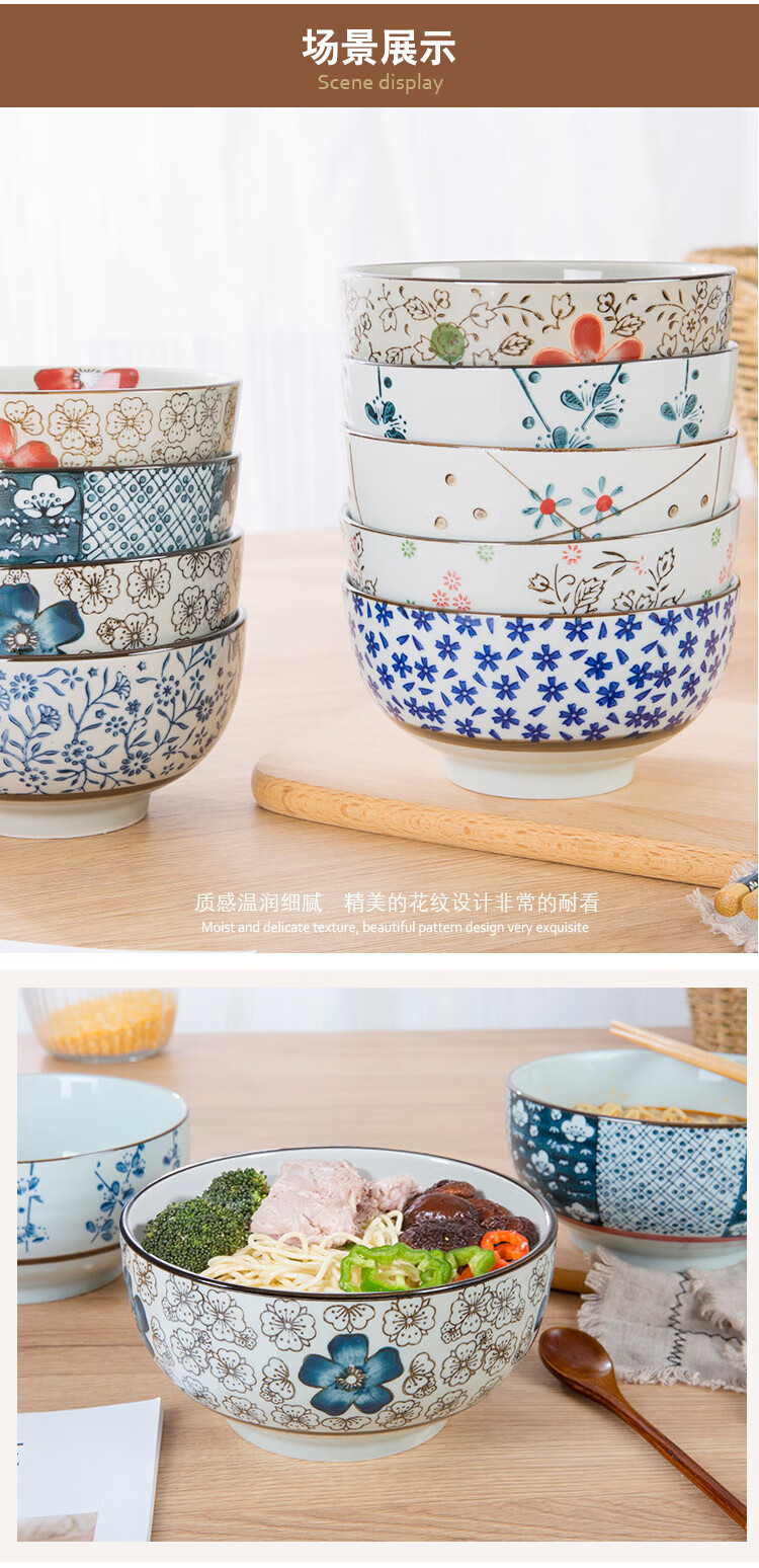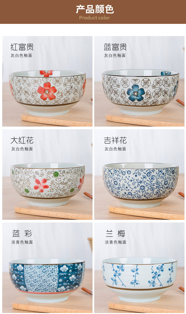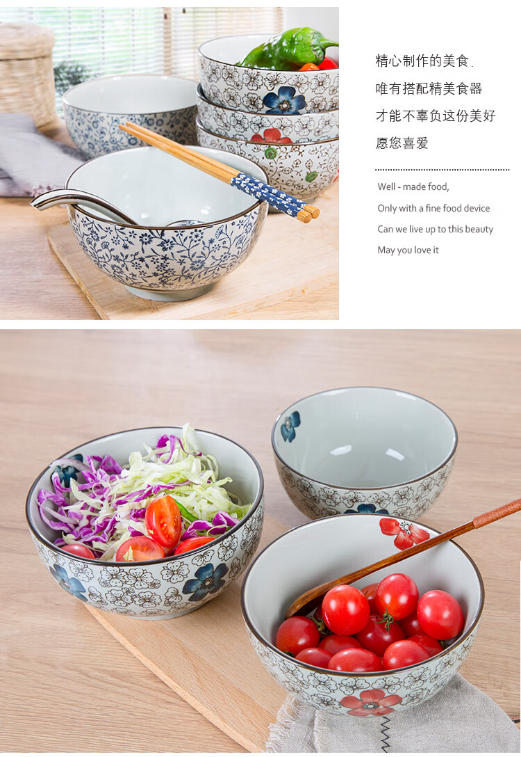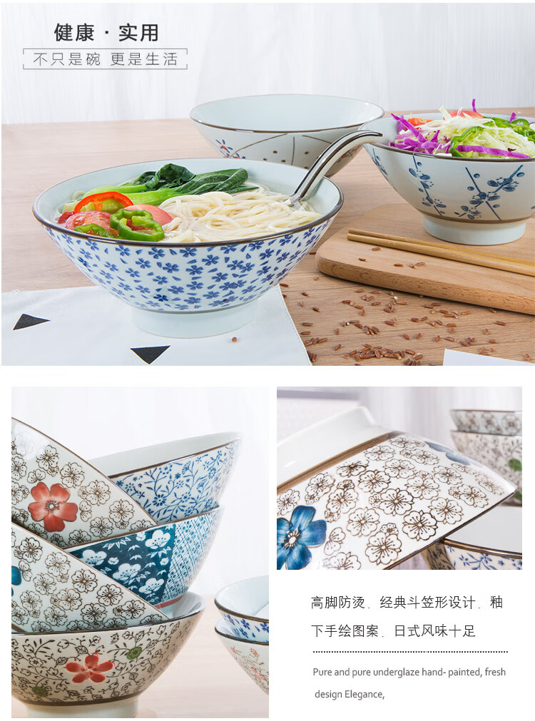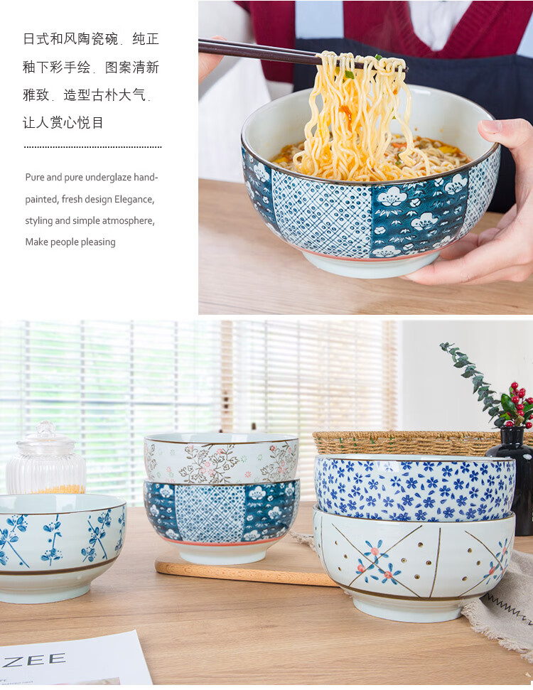 Jingdezhen Japanese style 6/7 inch large noodle bowl household ceramic large noodle bowl creative ramen bowl soup bowl 6 inch noodle bowl auspicious flower