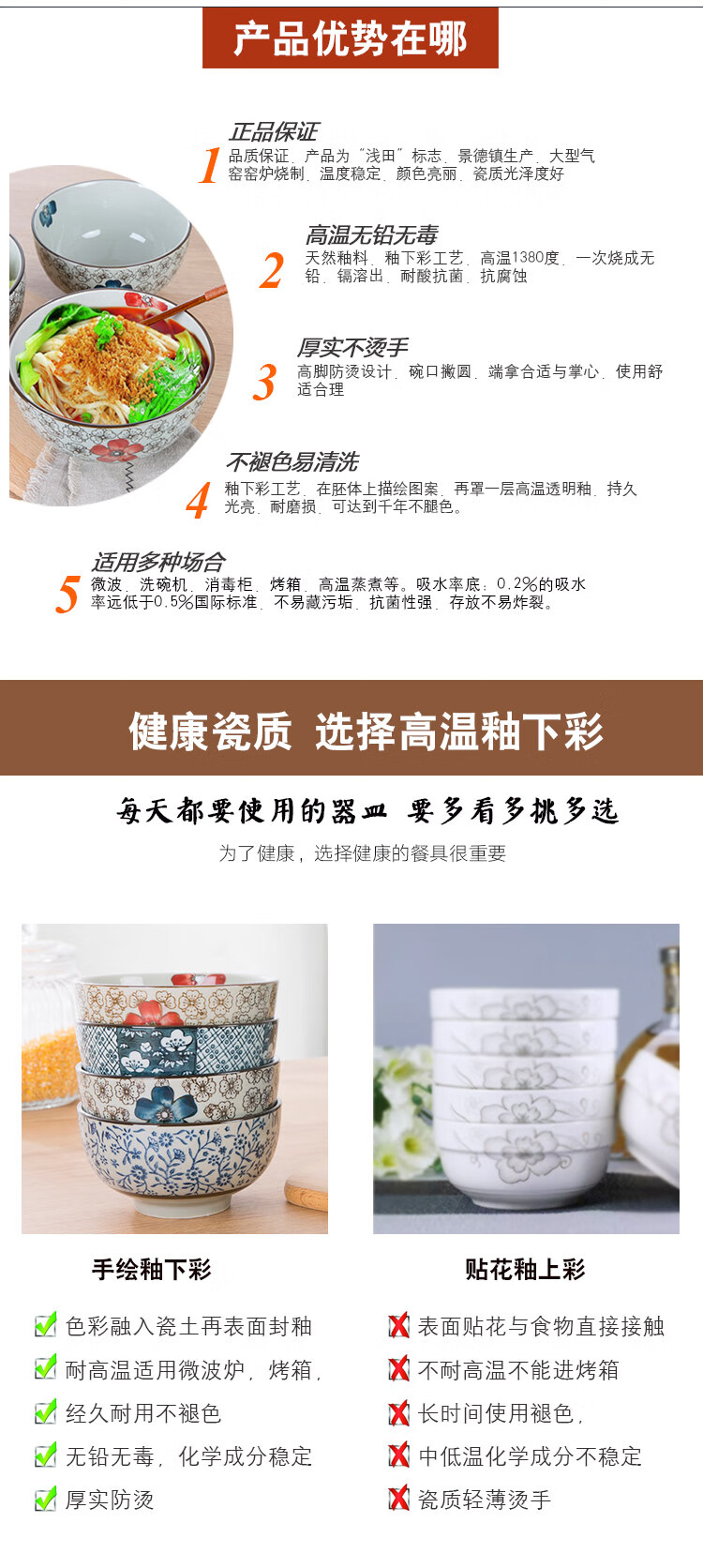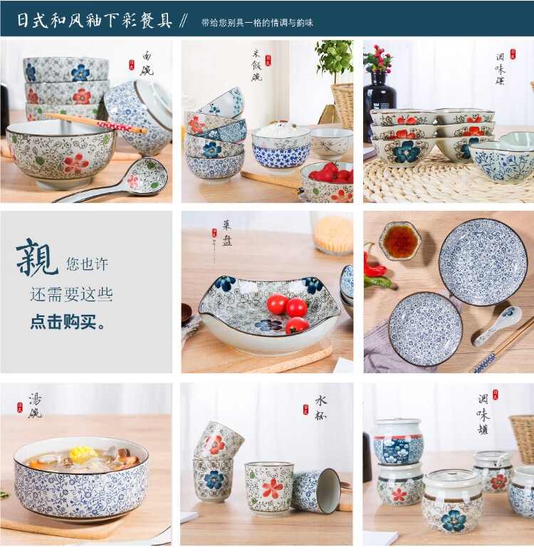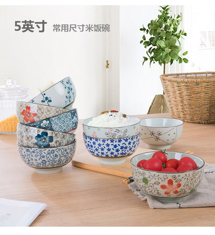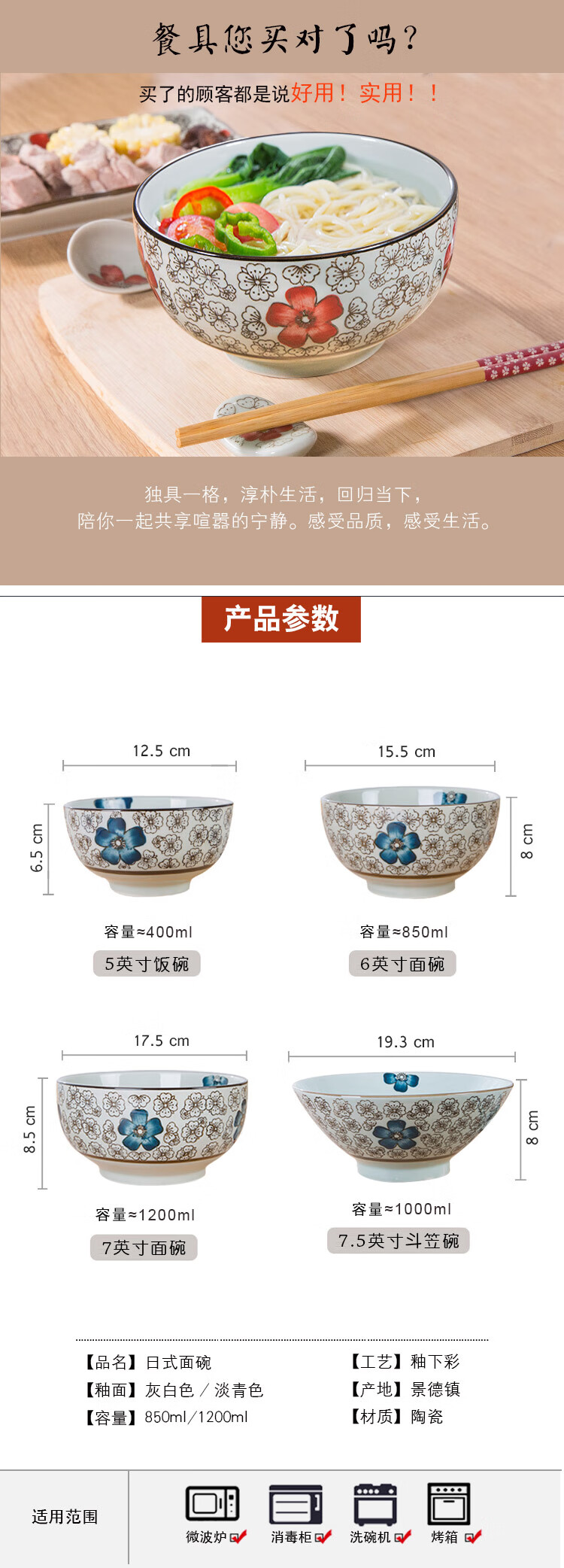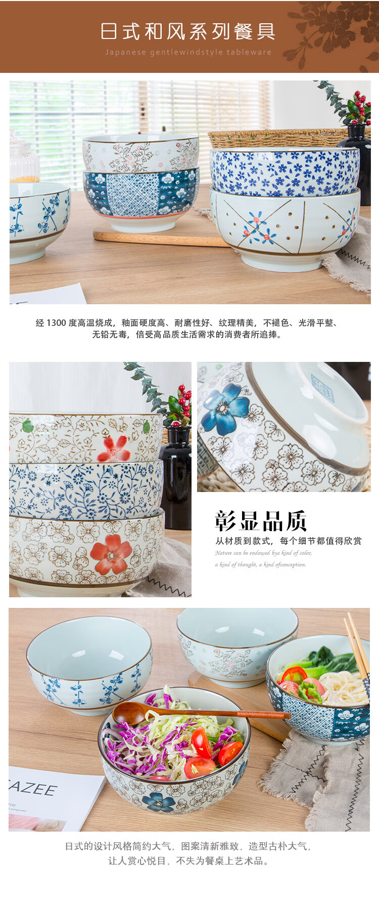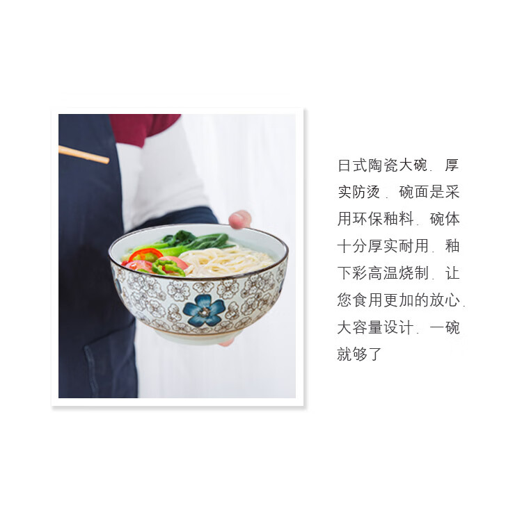 Jingdezhen Japanese style 6/7 inch large noodle bowl household ceramic large noodle bowl creative ramen bowl soup bowl 6 inch noodle bowl auspicious flower