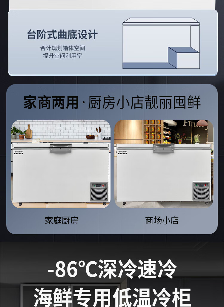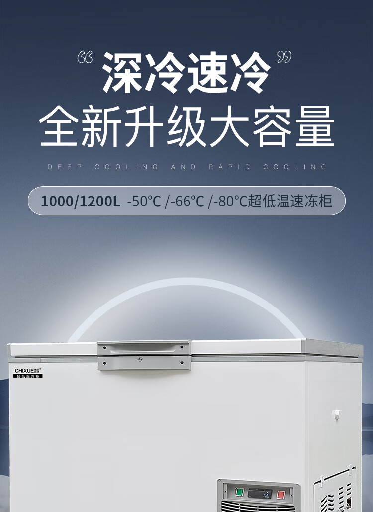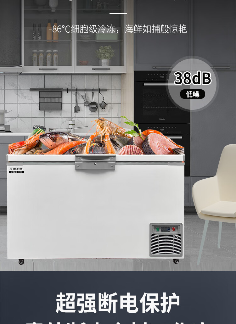 Chixue ultra-low temperature freezer minus 60 degrees seafood tuna minus 80 degrees industrial laboratory cell deep-freezing refrigerator-50 degrees commercial large-capacity dumplings and buns quick-freezing freezer 768L dual machine -65 1744*594*675