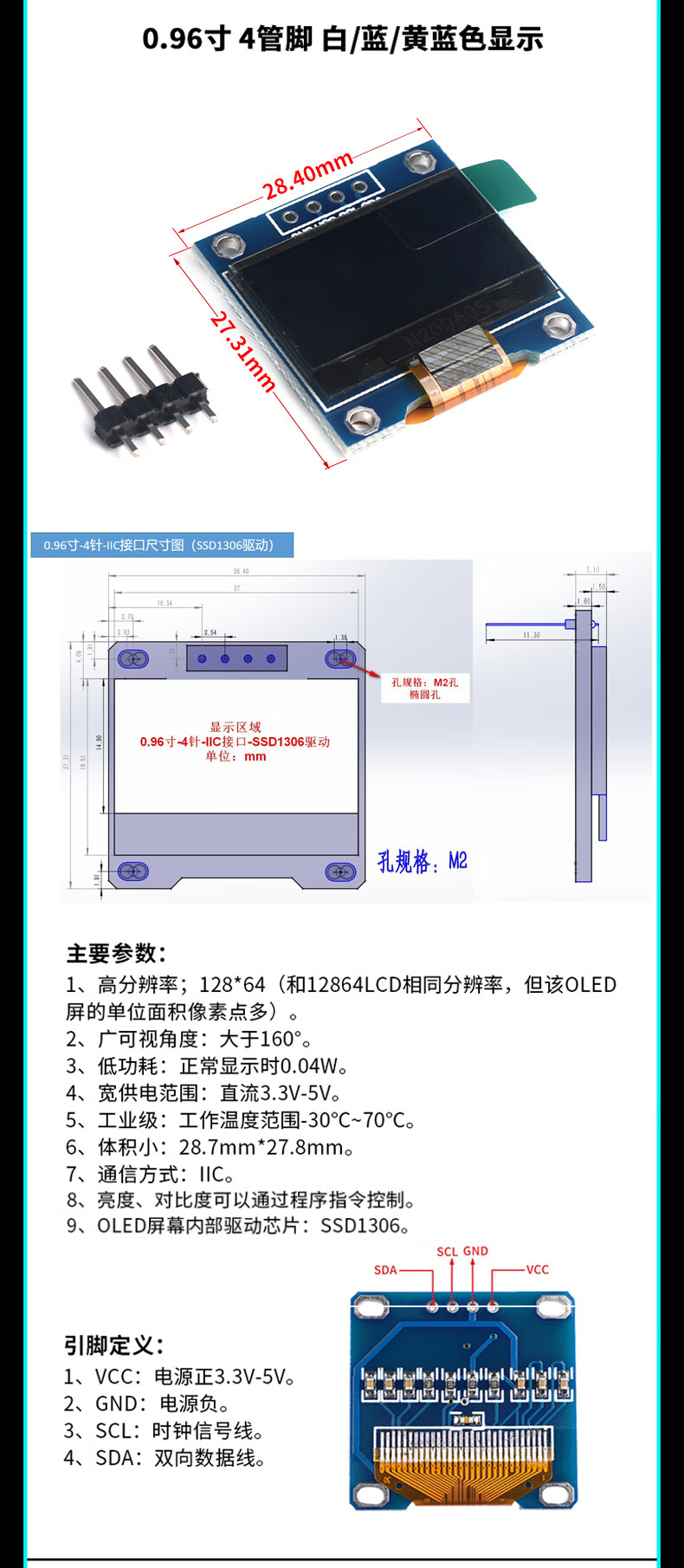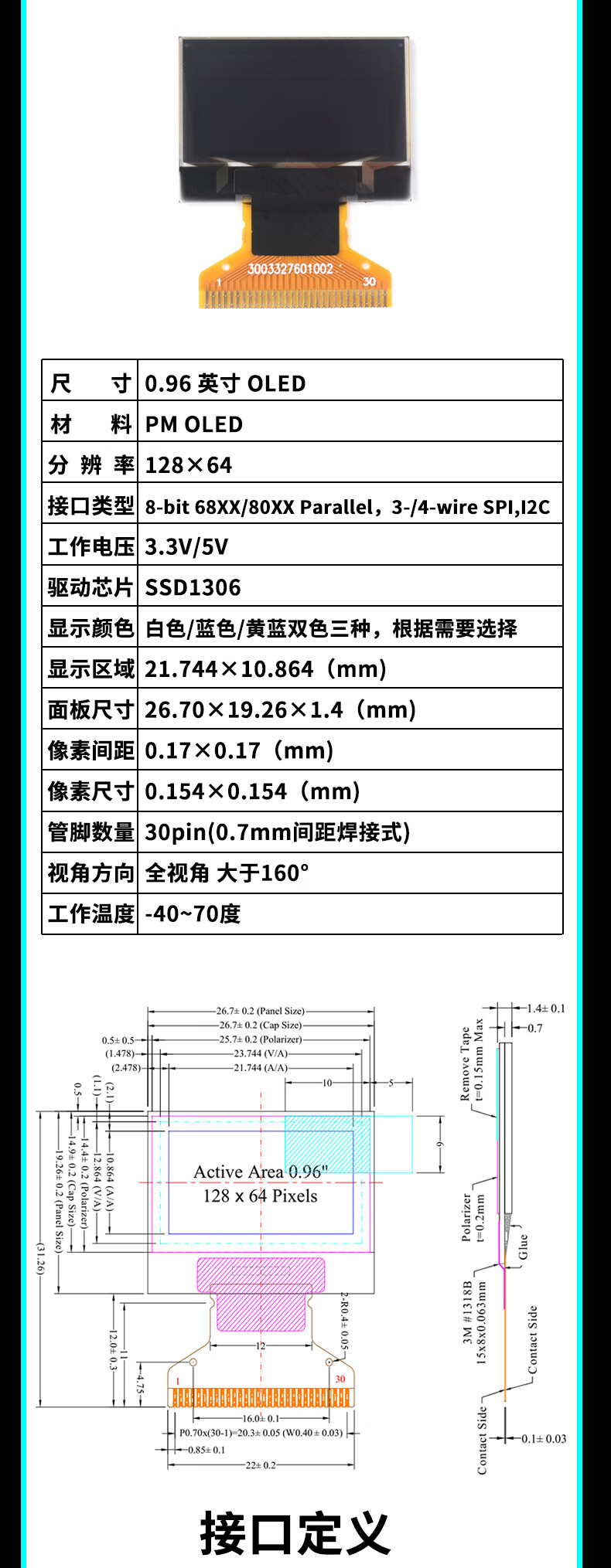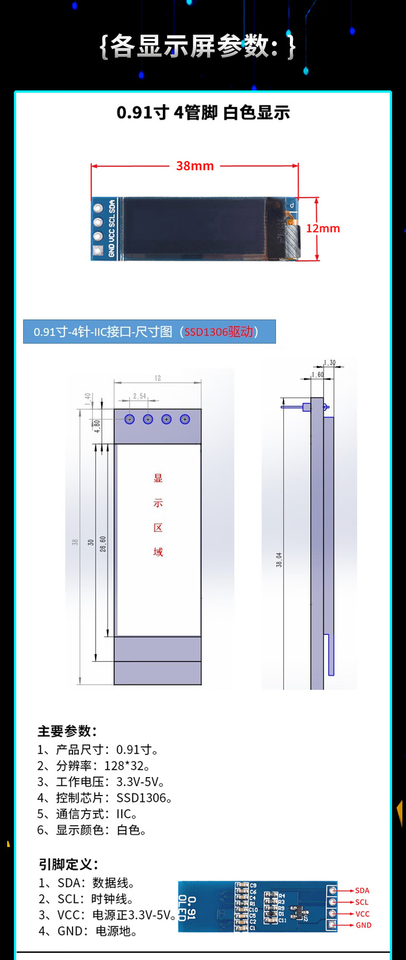 Green Shen 0.96-inch OLED display module 0.91 12864 screen 1.3-inch LCD screen 4/6/7-pin IIC/SPI 1.3-inch 7-pin white display