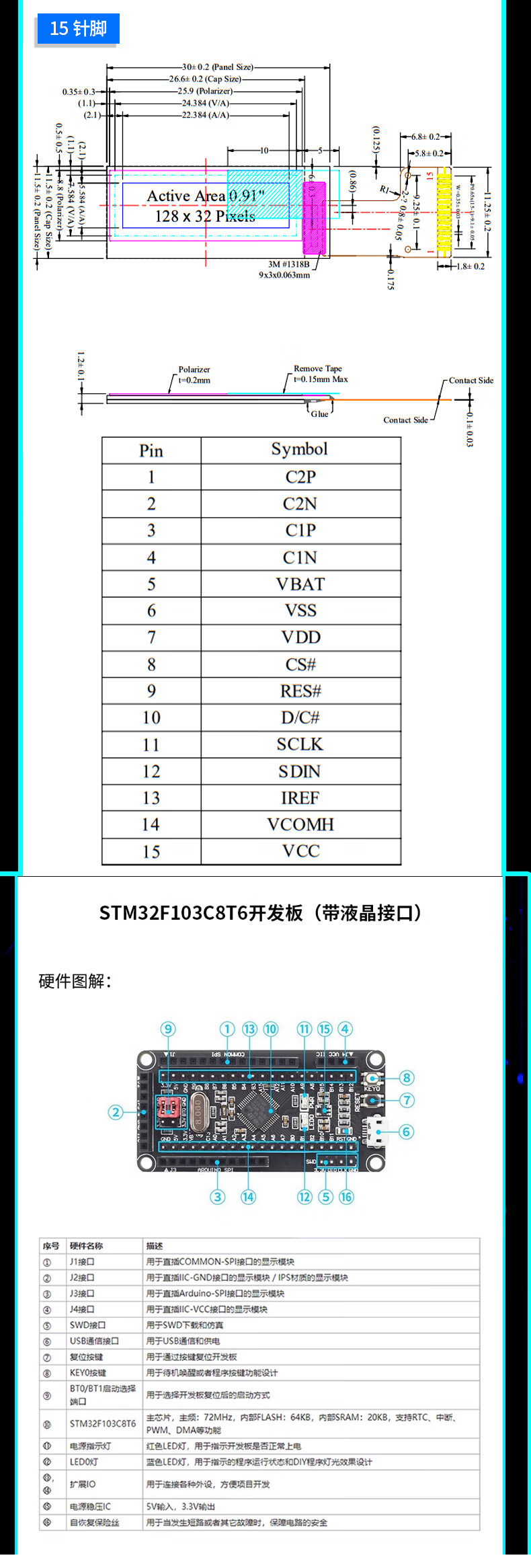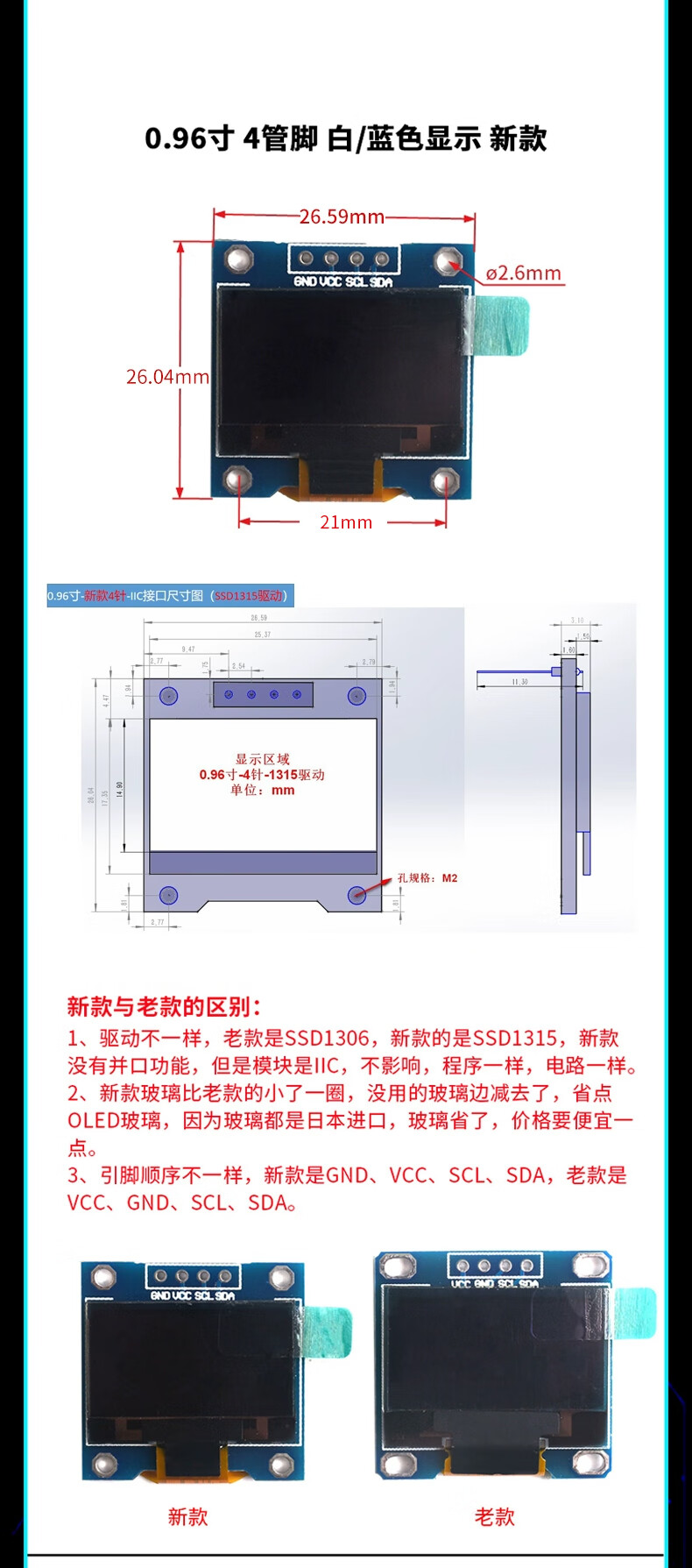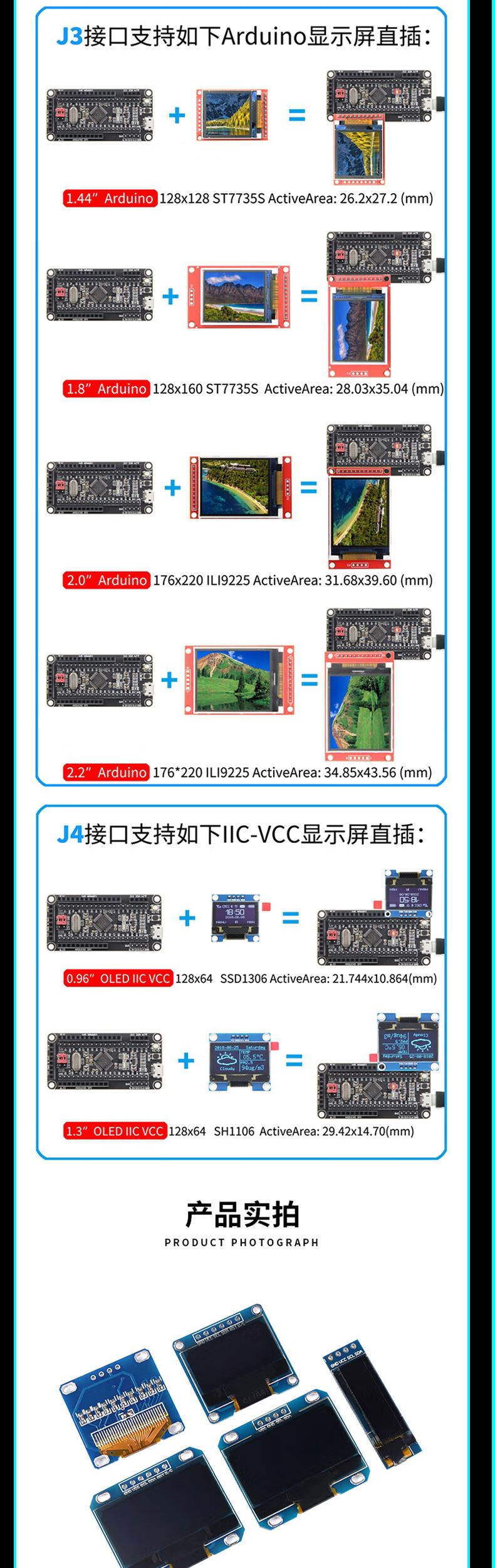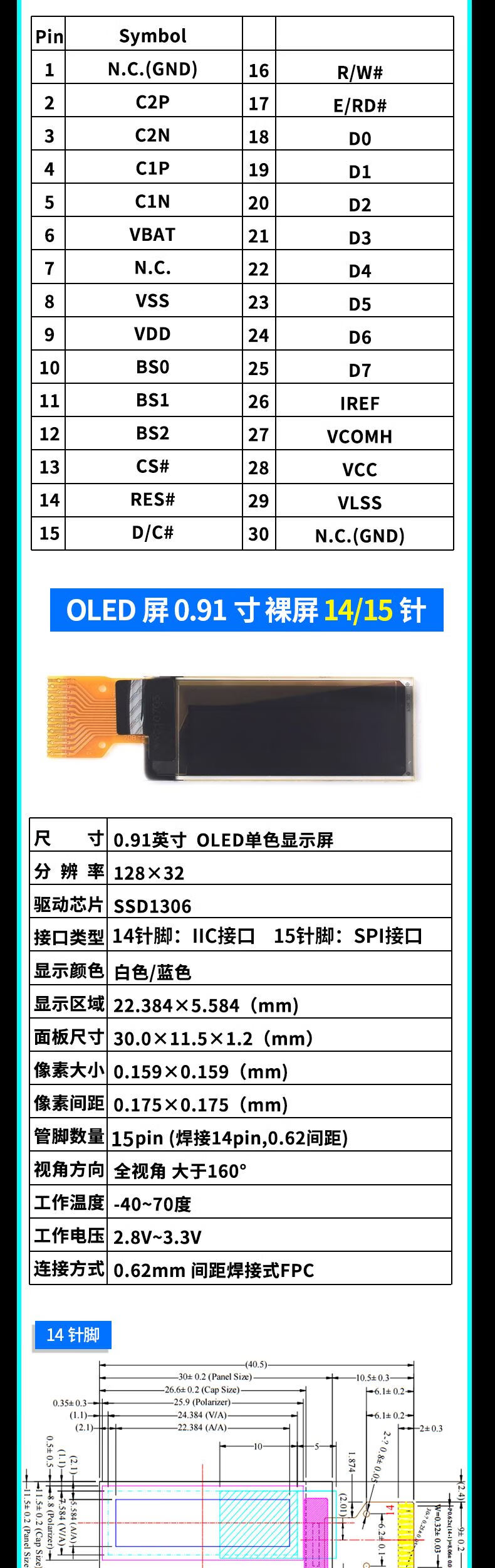 Green Shen 0.96-inch OLED display module 0.91 12864 screen 1.3-inch LCD screen 4/6/7-pin IIC/SPI 1.3-inch 7-pin white display