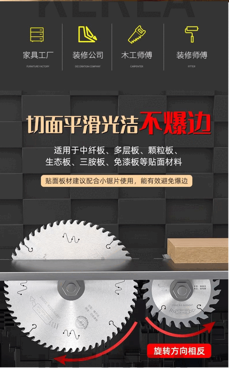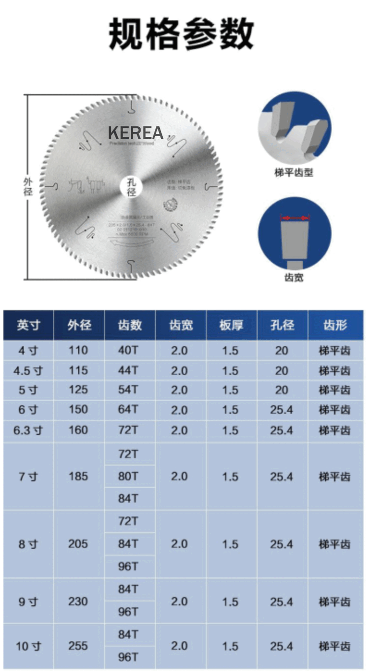 KEREA imported woodworking saw blade 7-inch 180/205 sliding table saw special cutting ecological paint-free board ladder flat teeth ultra-thin 7-inch 180x2.0x25.4x80 ladder flat with 4-inch 110