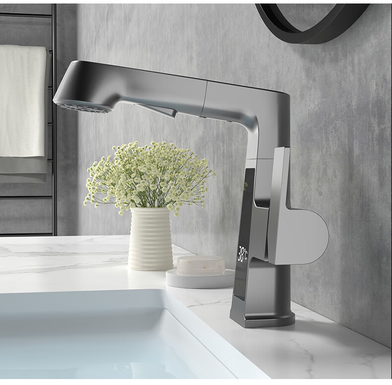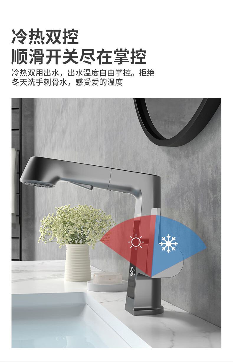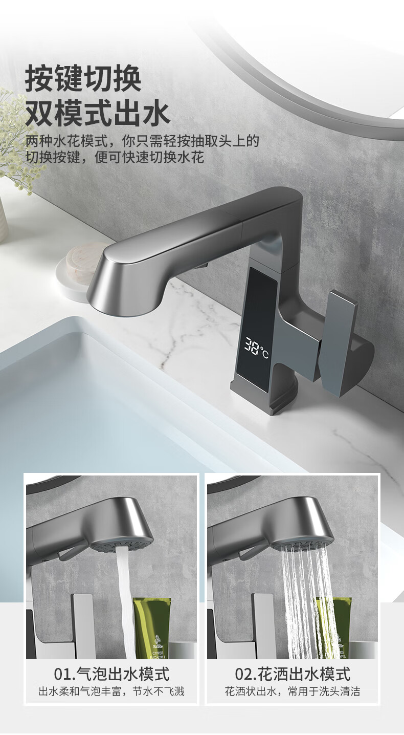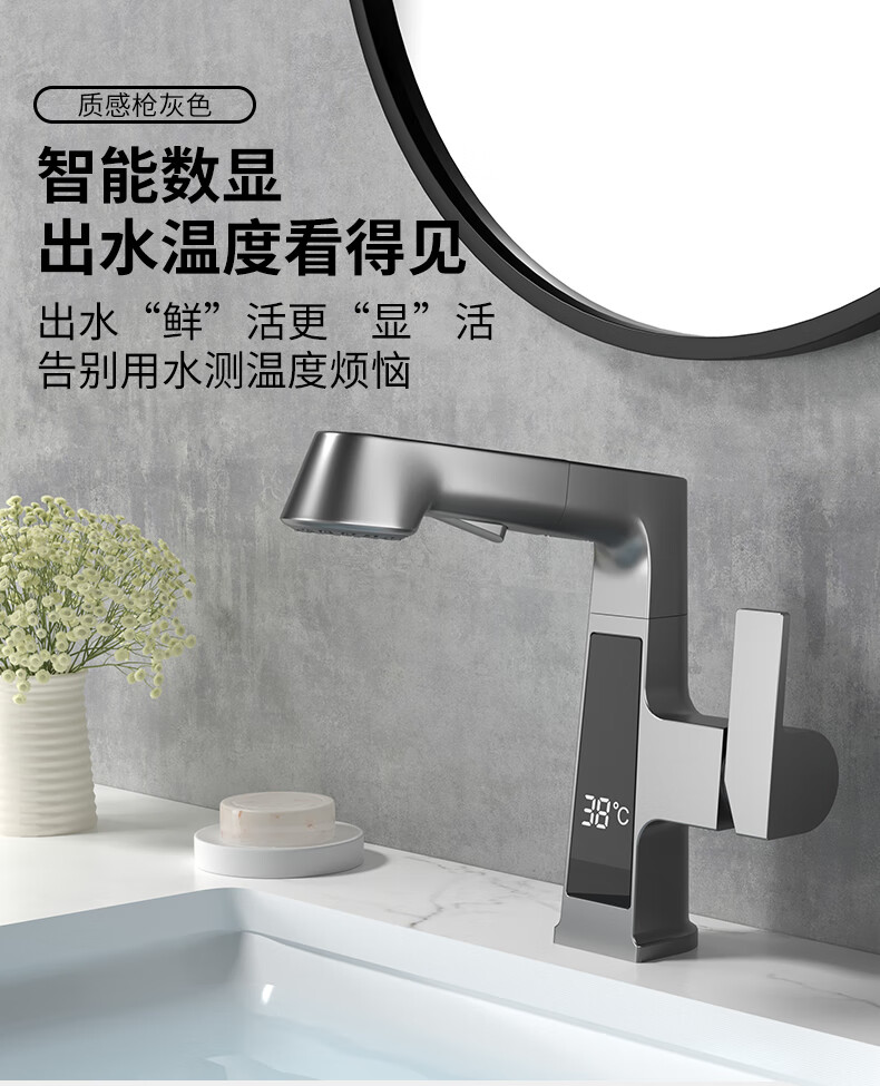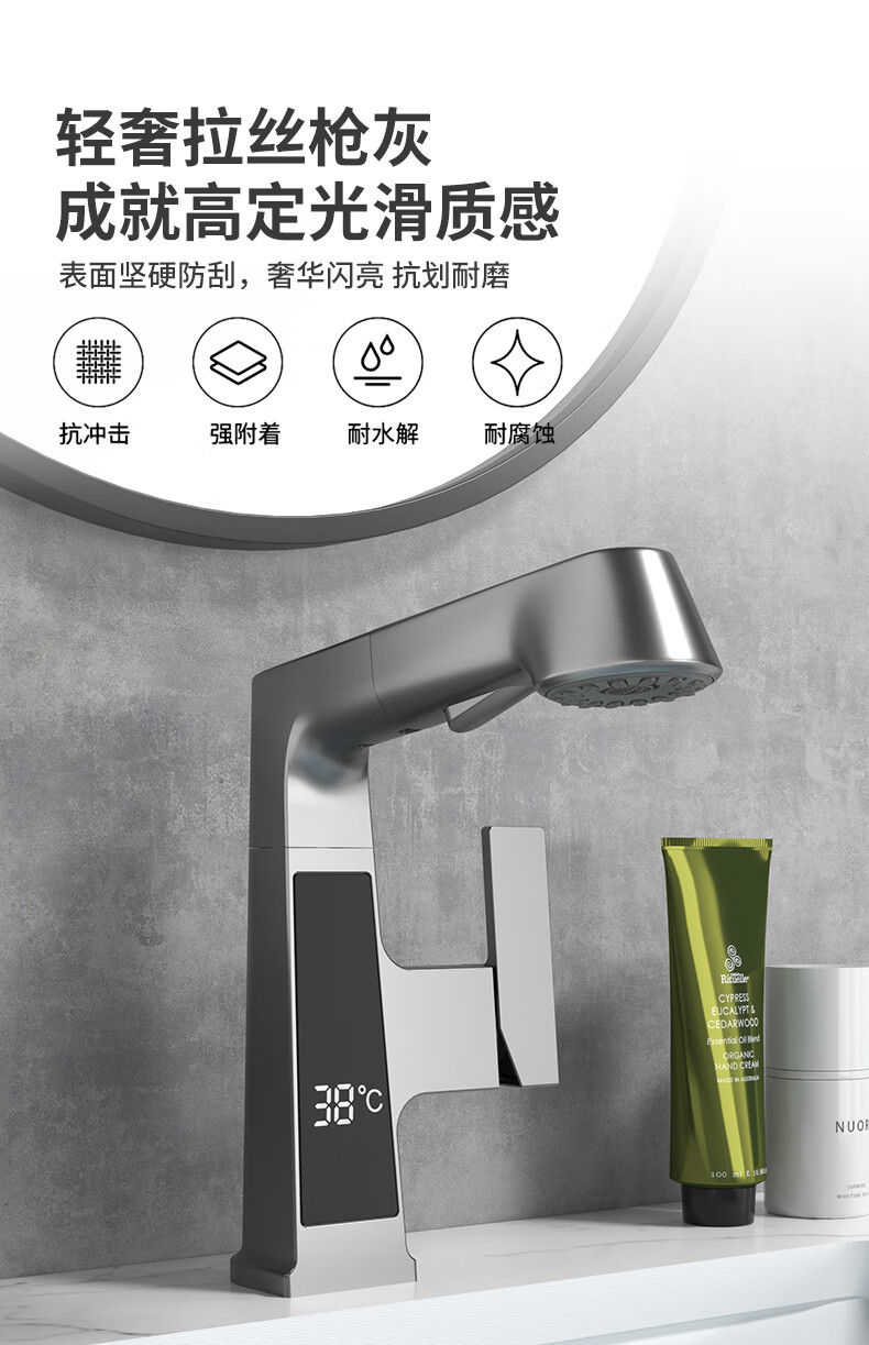 Hansgrohe high-end all-copper gun gray digital display lift pull-out hot and cold faucet bathroom washbasin bathroom cabinet basin gun gray model