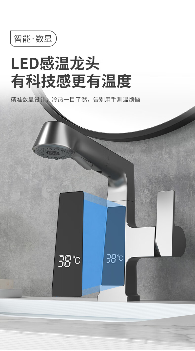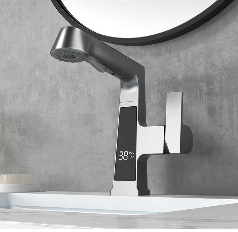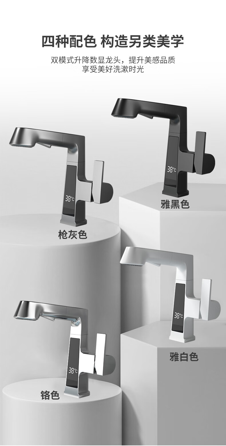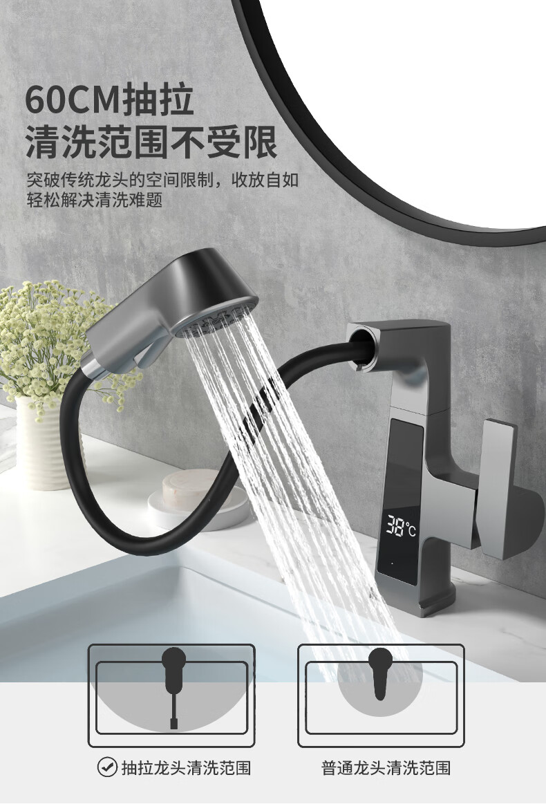 Hansgrohe high-end all-copper gun gray digital display lift pull-out hot and cold faucet bathroom washbasin bathroom cabinet basin gun gray model