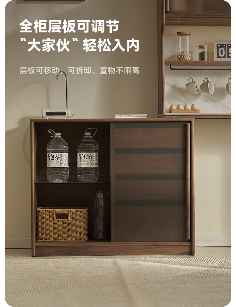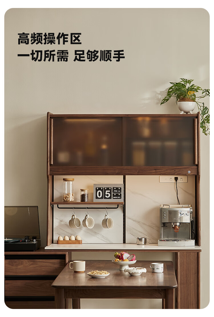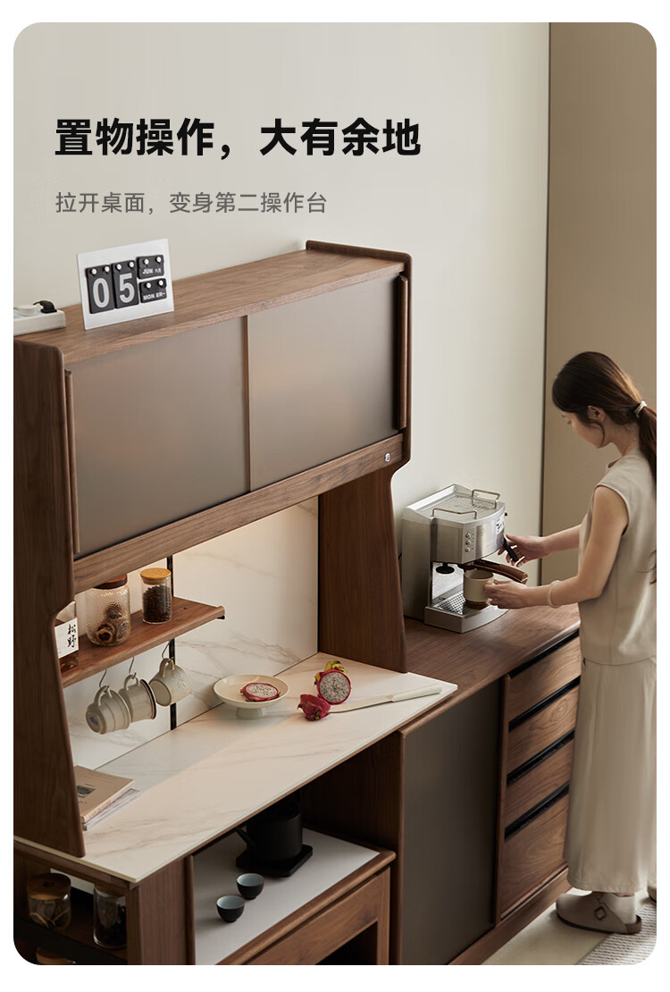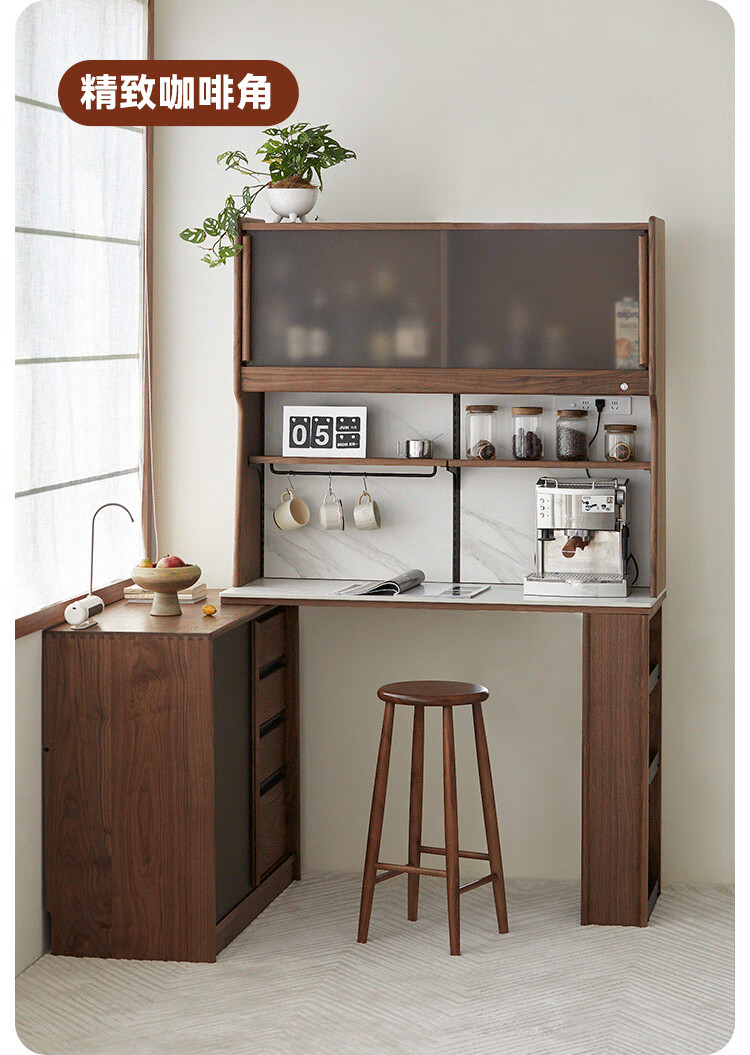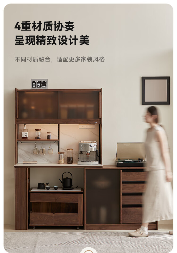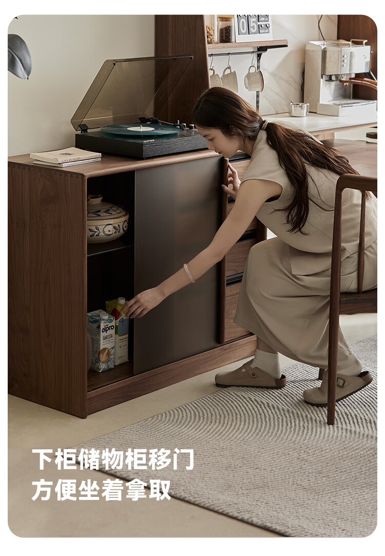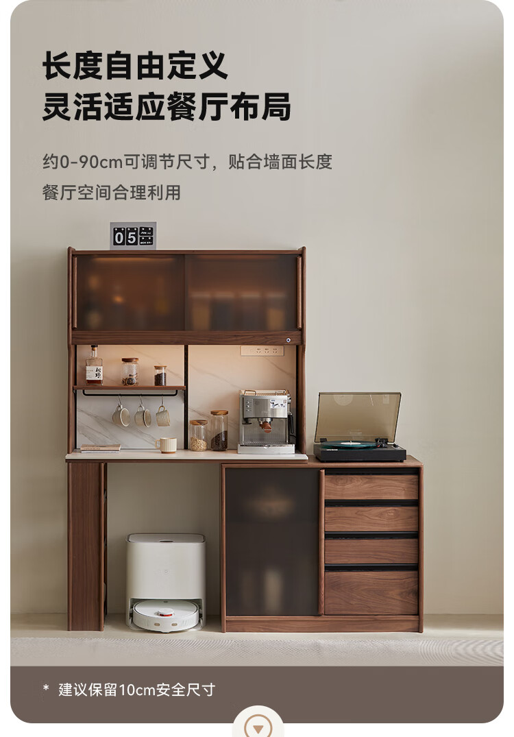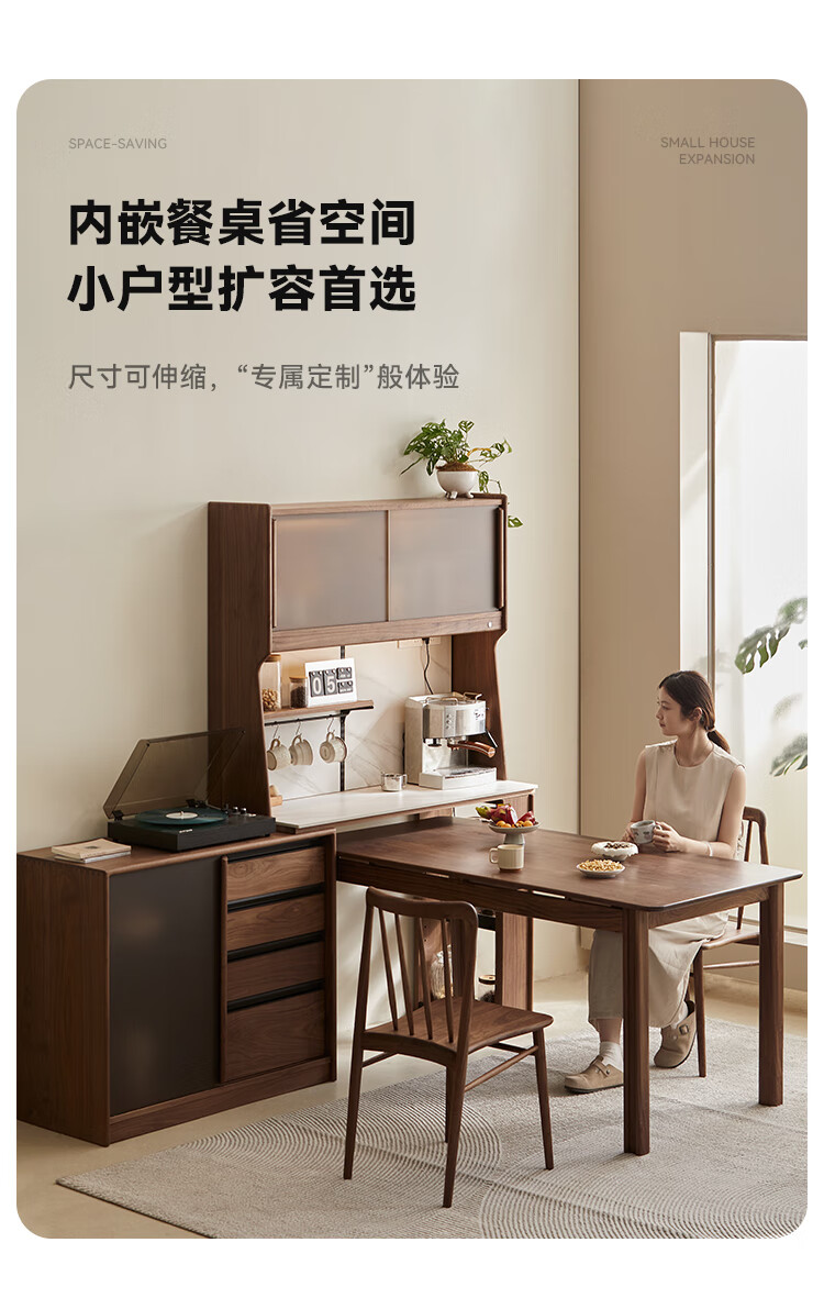 Pusu wood solid wood sideboard dining table one-piece cabinet wall-mounted retractable black walnut tea cabinet water bar kitchen cabinet high-end | end of January