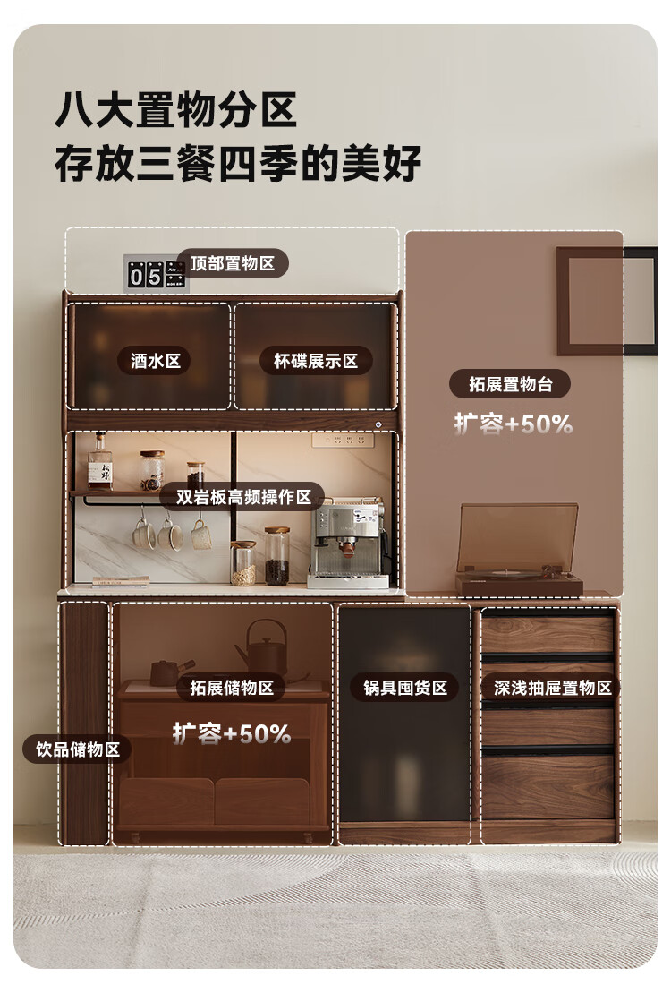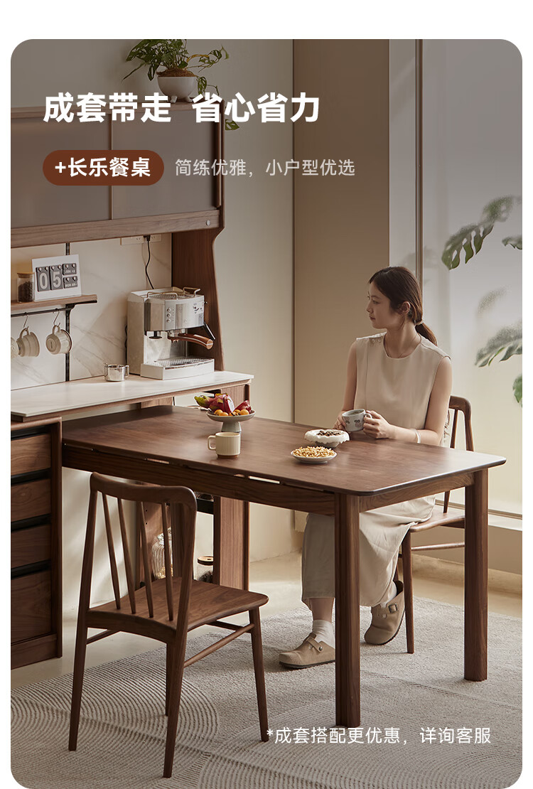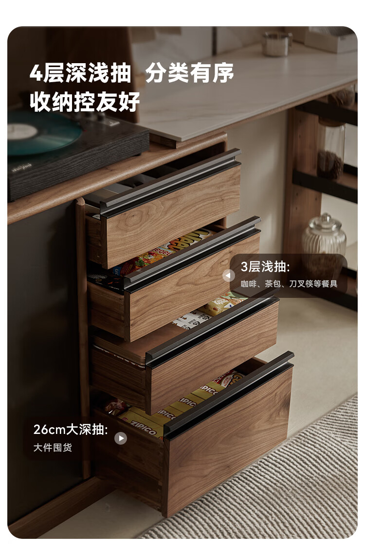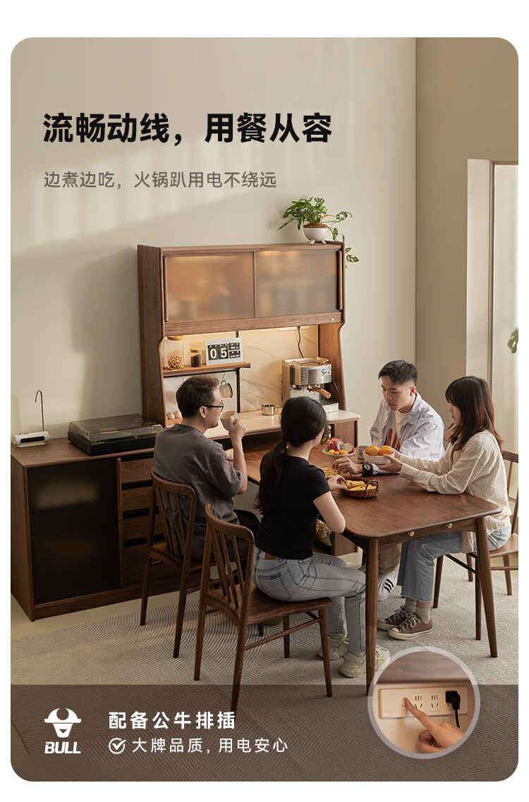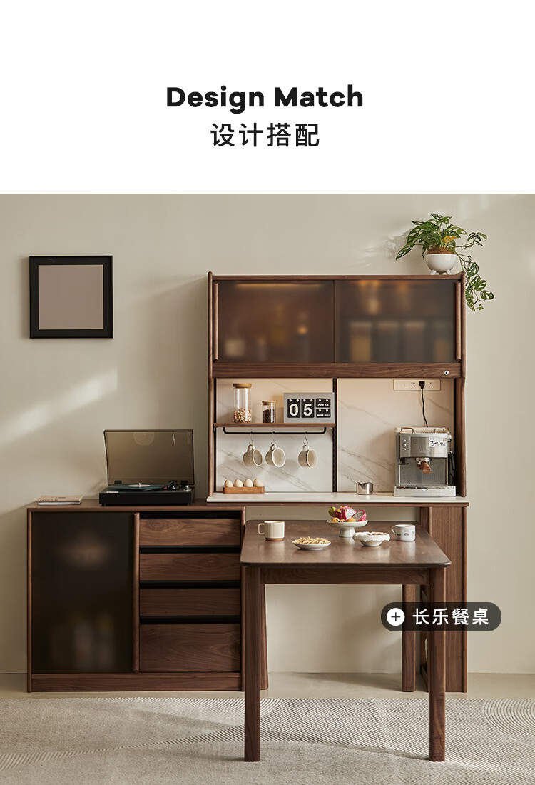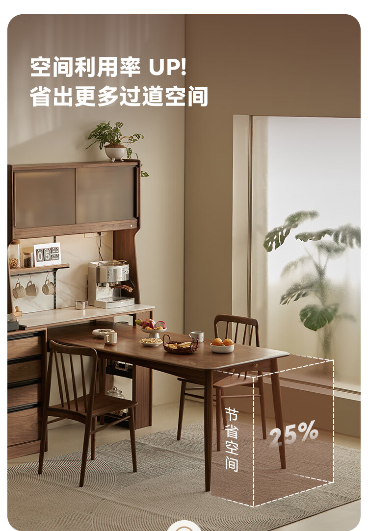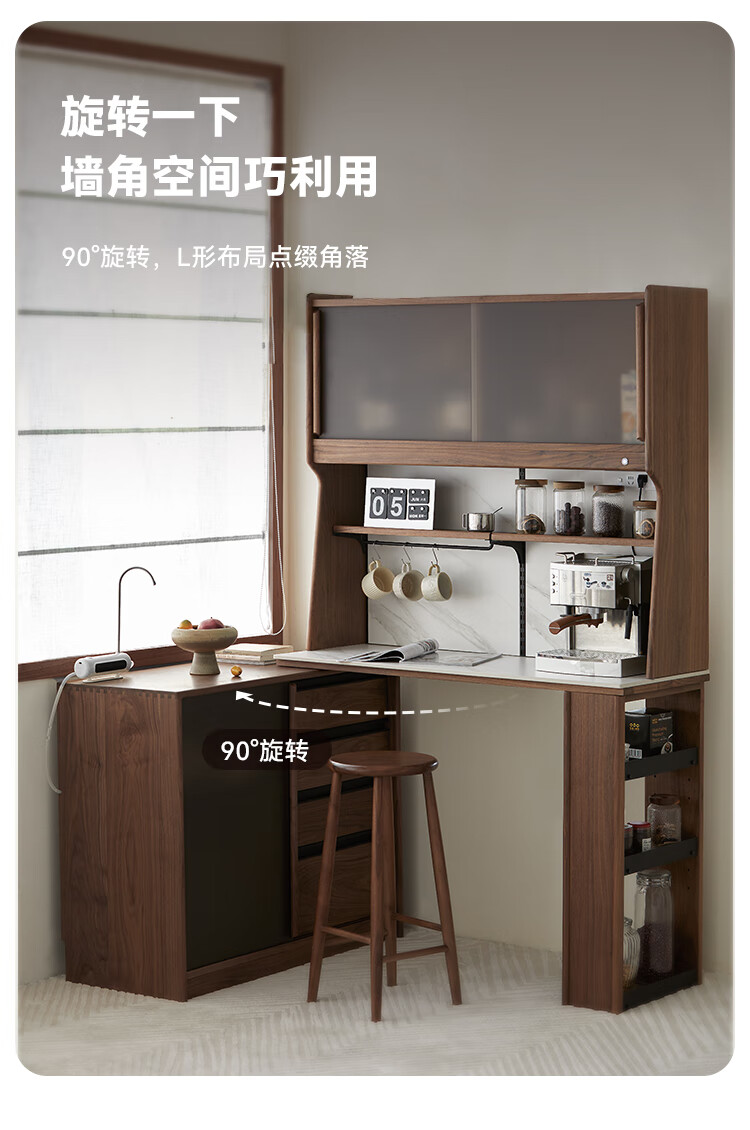 Pusu wood solid wood sideboard dining table one-piece cabinet wall-mounted retractable black walnut tea cabinet water bar kitchen cabinet high-end | end of January
