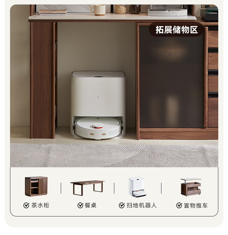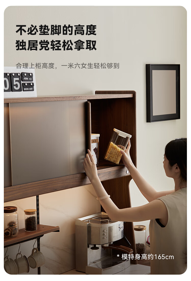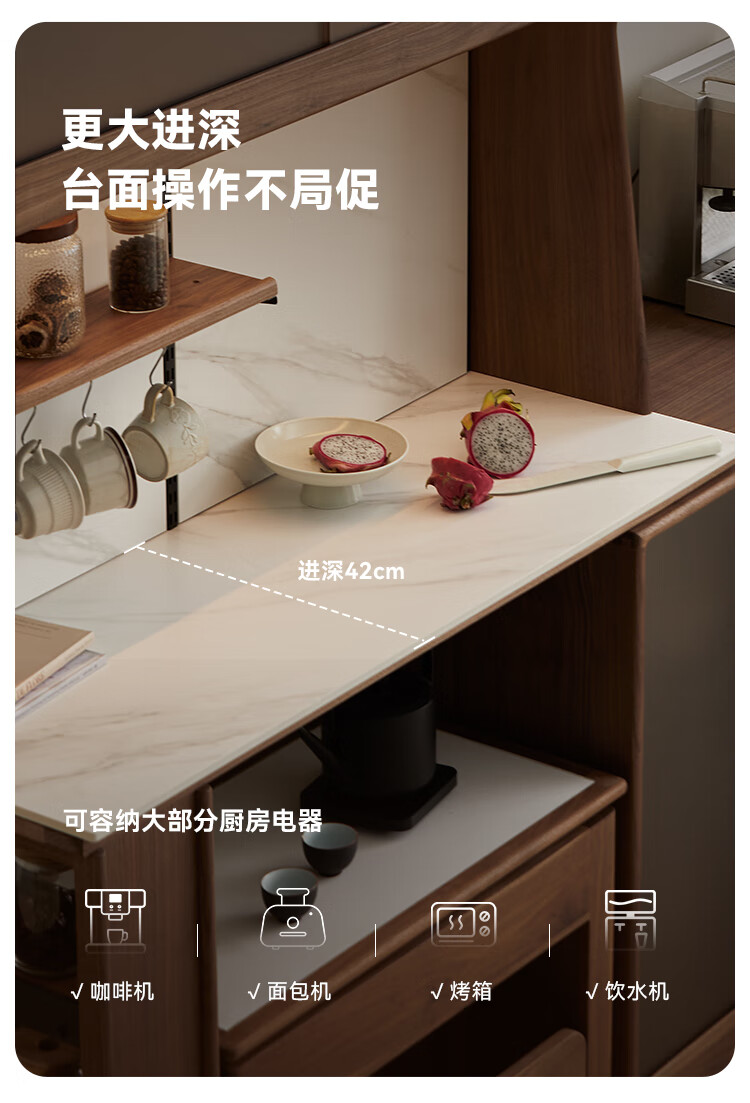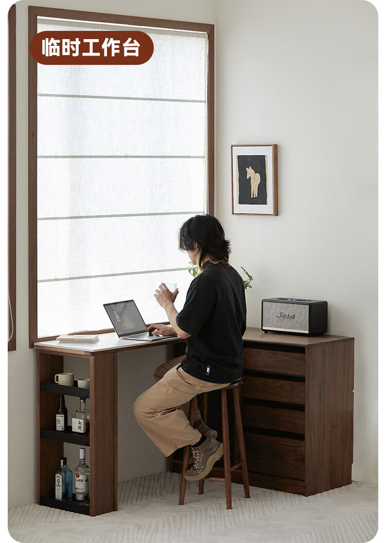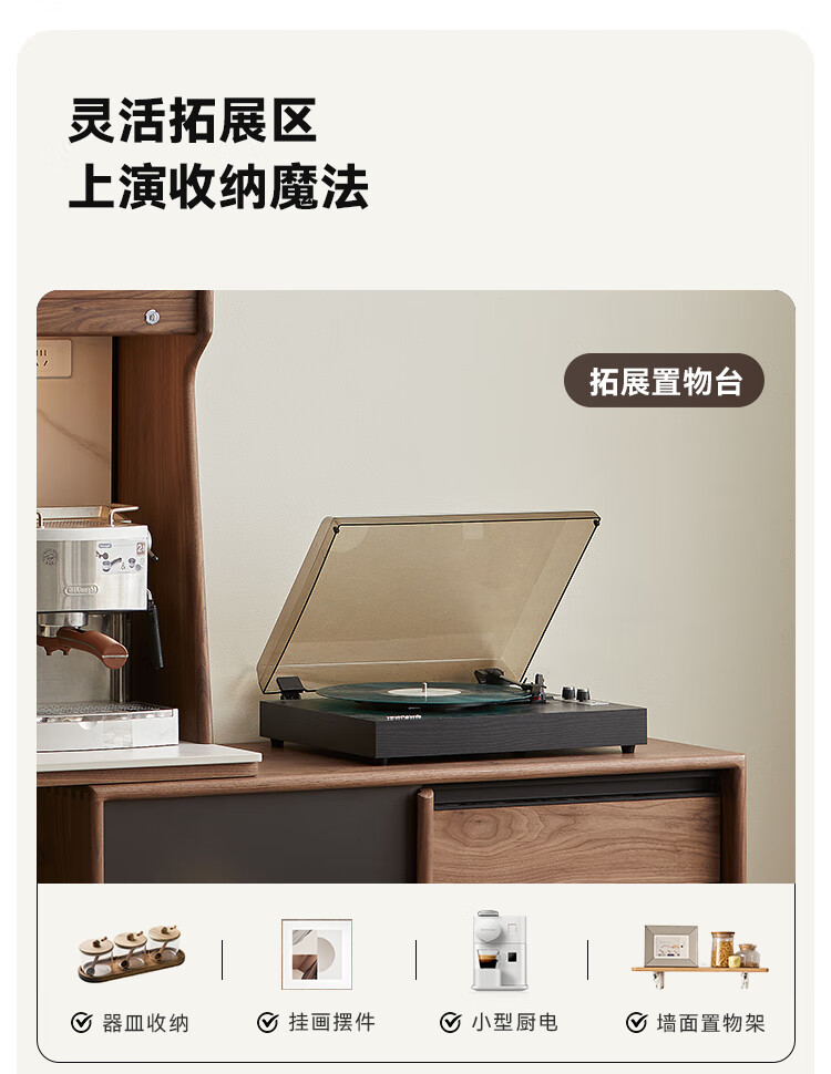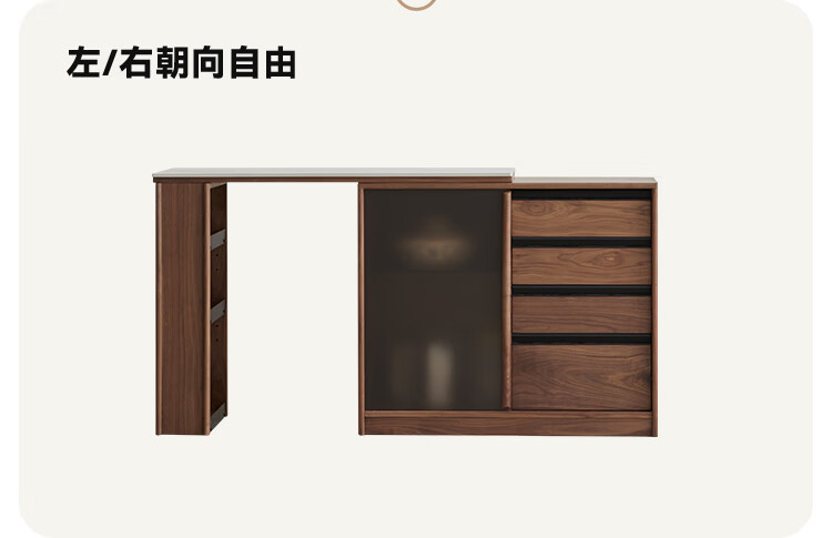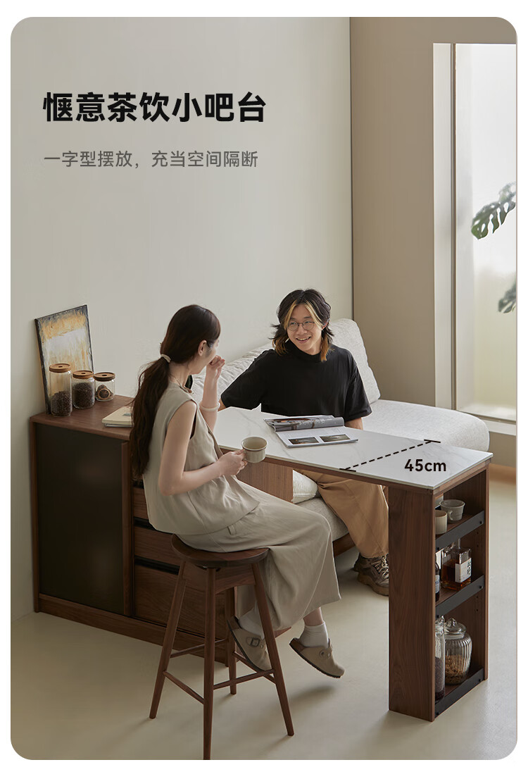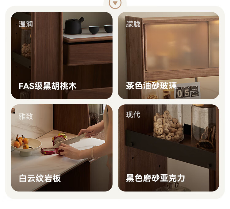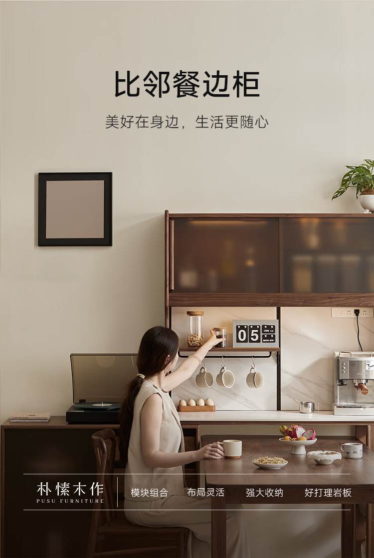 Pusu wood solid wood sideboard dining table one-piece cabinet wall-mounted retractable black walnut tea cabinet water bar kitchen cabinet high-end | end of January