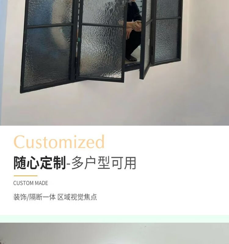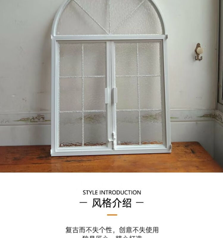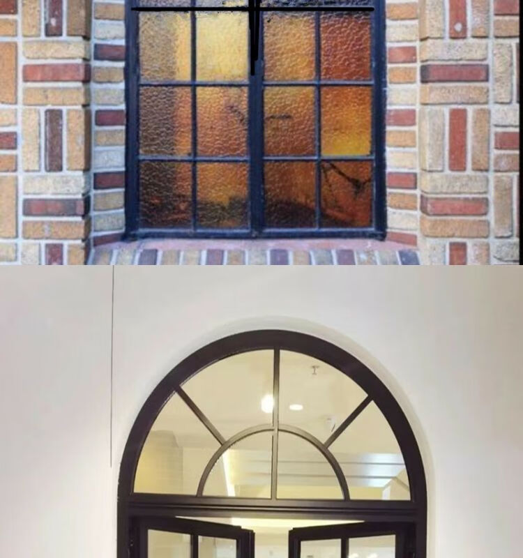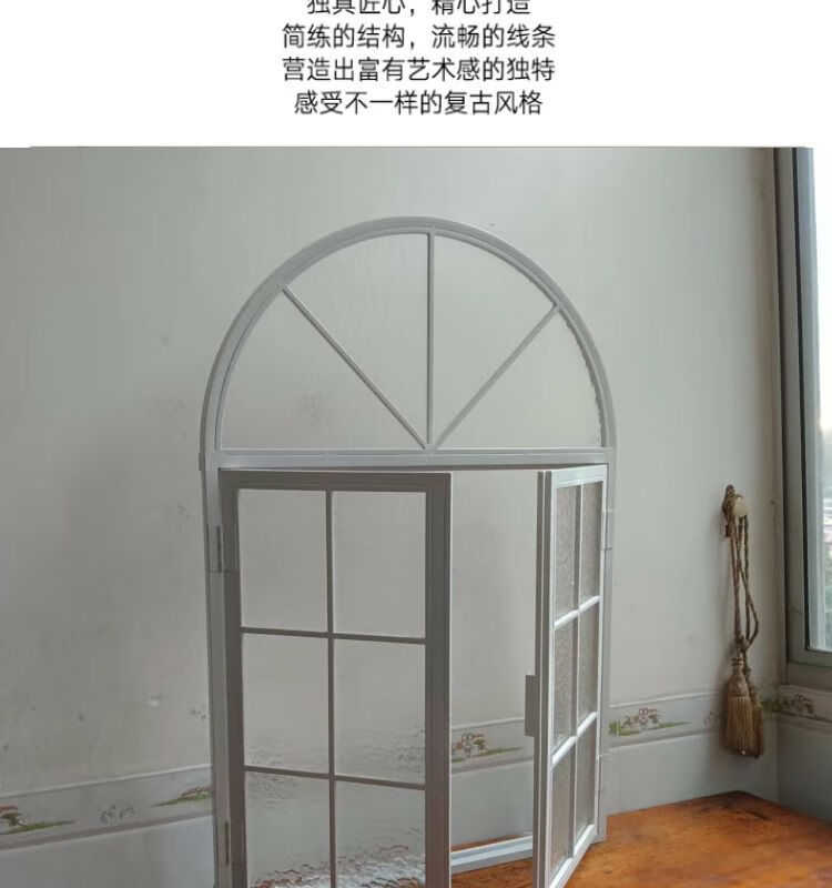 Yaotian French iron retro casement window restaurant cafe arched floor-to-ceiling window indoor study loft lighting window width 90 height 170 (with ultra-silver glass pattern)