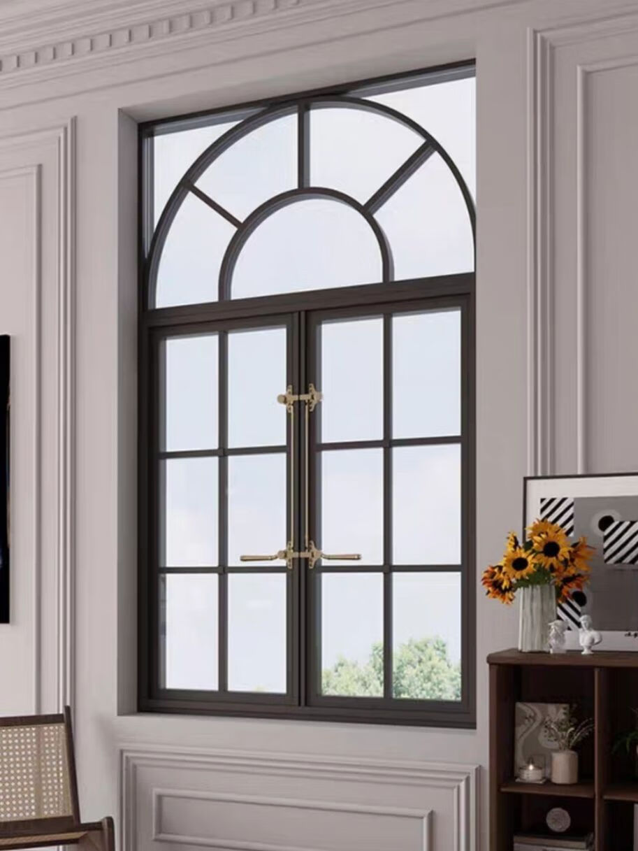 Vinoa French iron retro casement window restaurant cafe arched floor-to-ceiling window indoor study attic window customization width 80 height 120 with glass