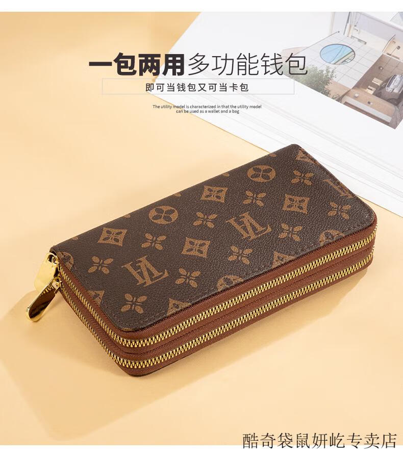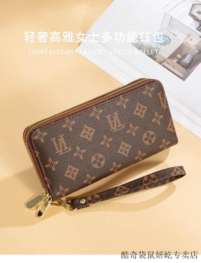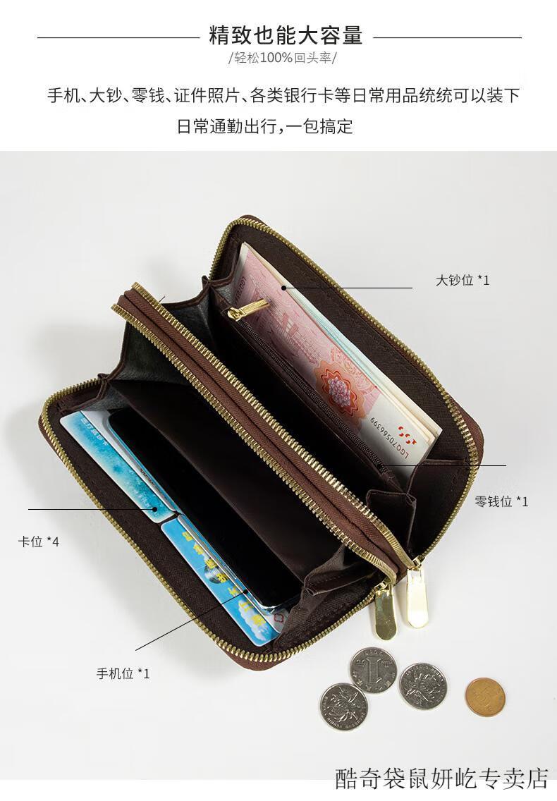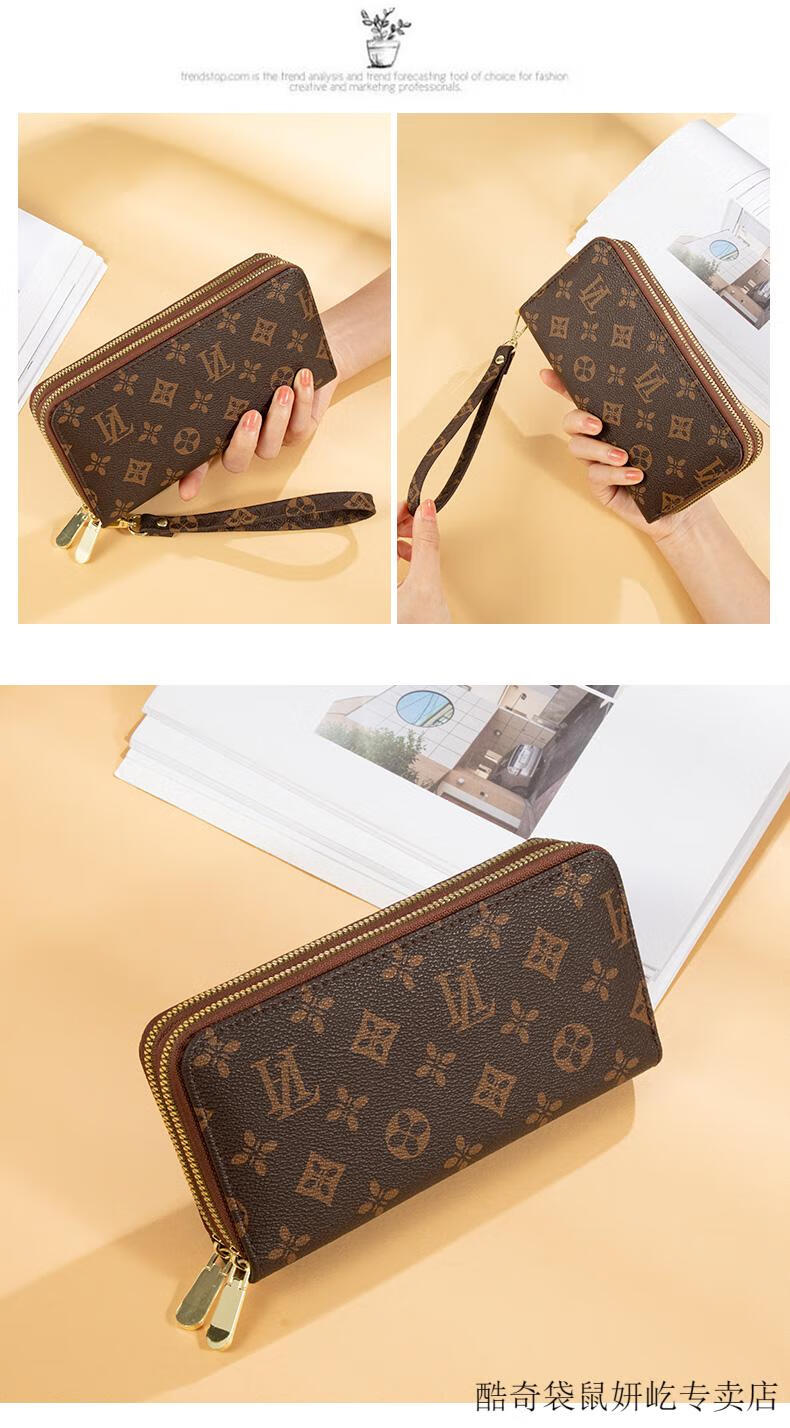 Kuqi Kangaroo Brand Wallet Women's Chinese Valentine's Day 2024 Printed Large Capacity Temperament Double Zipper Women's Long Wallet Wallet Clutch Brown