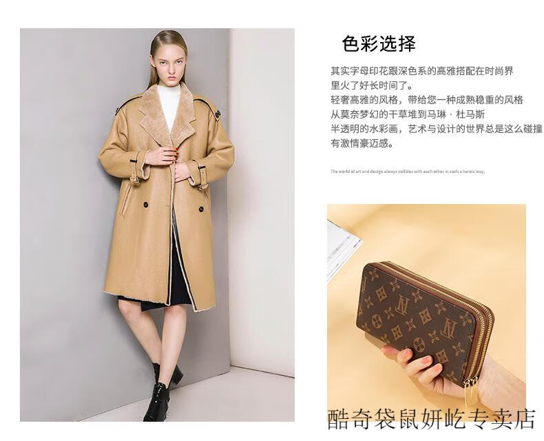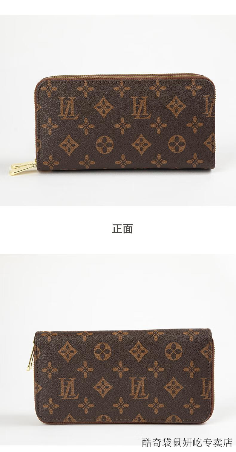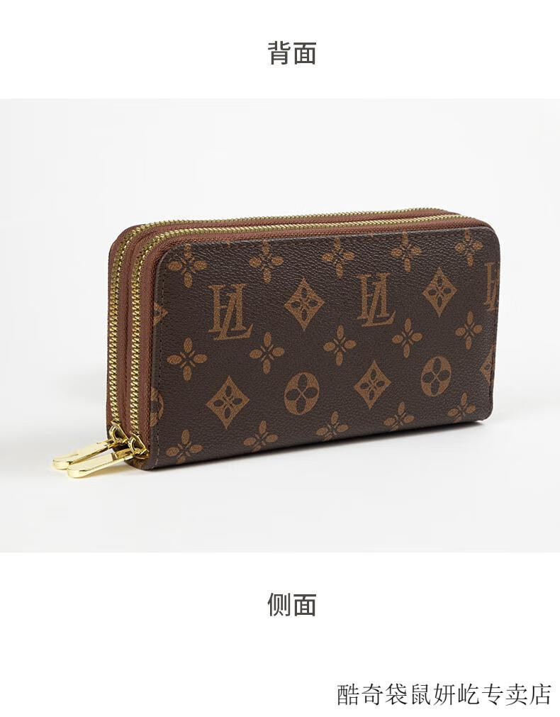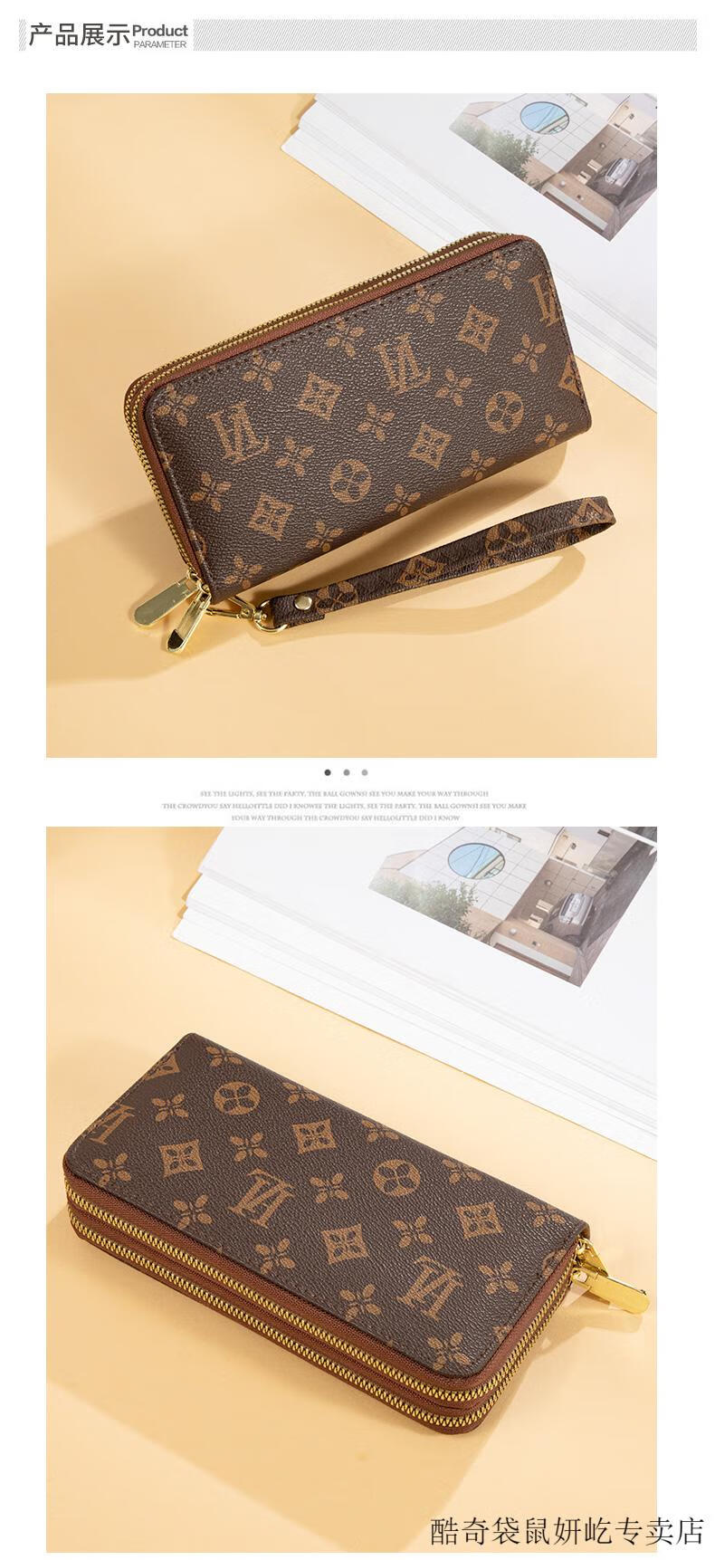 Kuqi Kangaroo Brand Wallet Women's Chinese Valentine's Day 2024 Printed Large Capacity Temperament Double Zipper Women's Long Wallet Wallet Clutch Brown