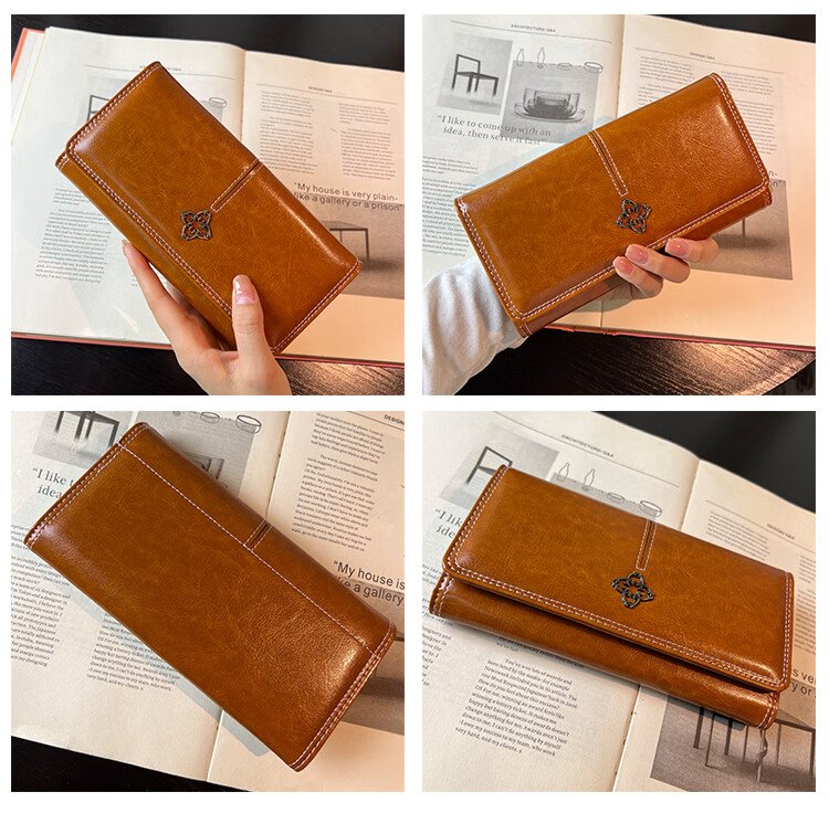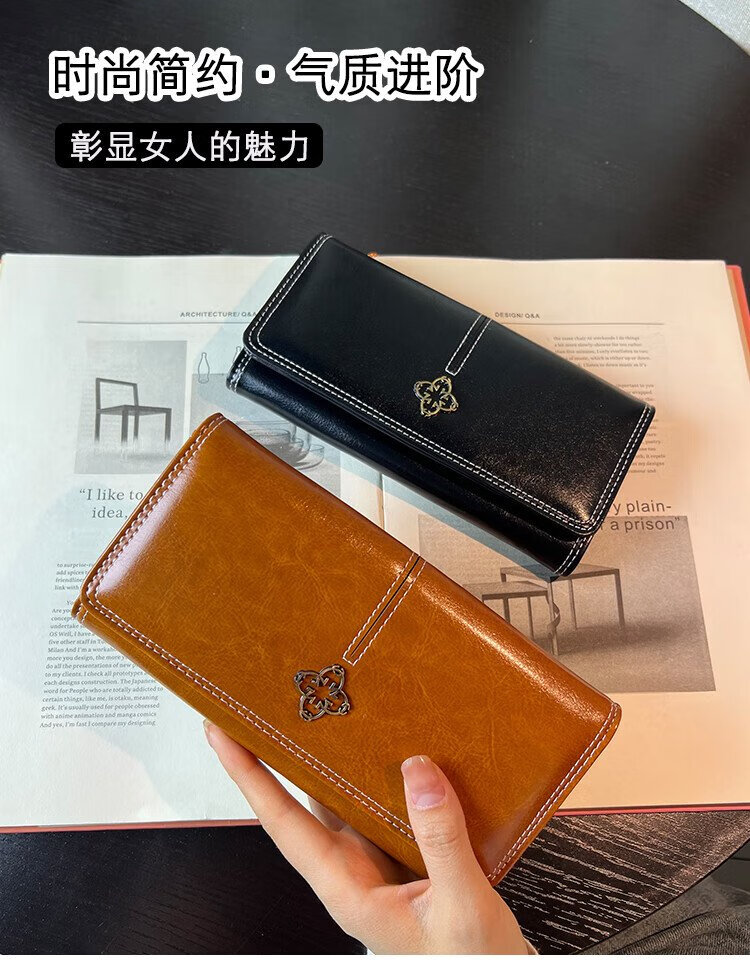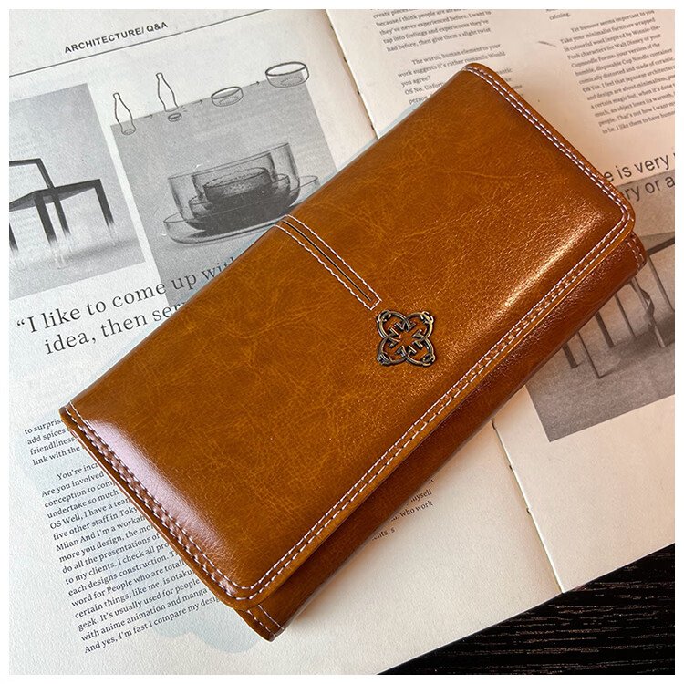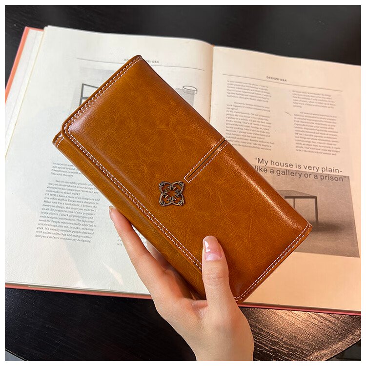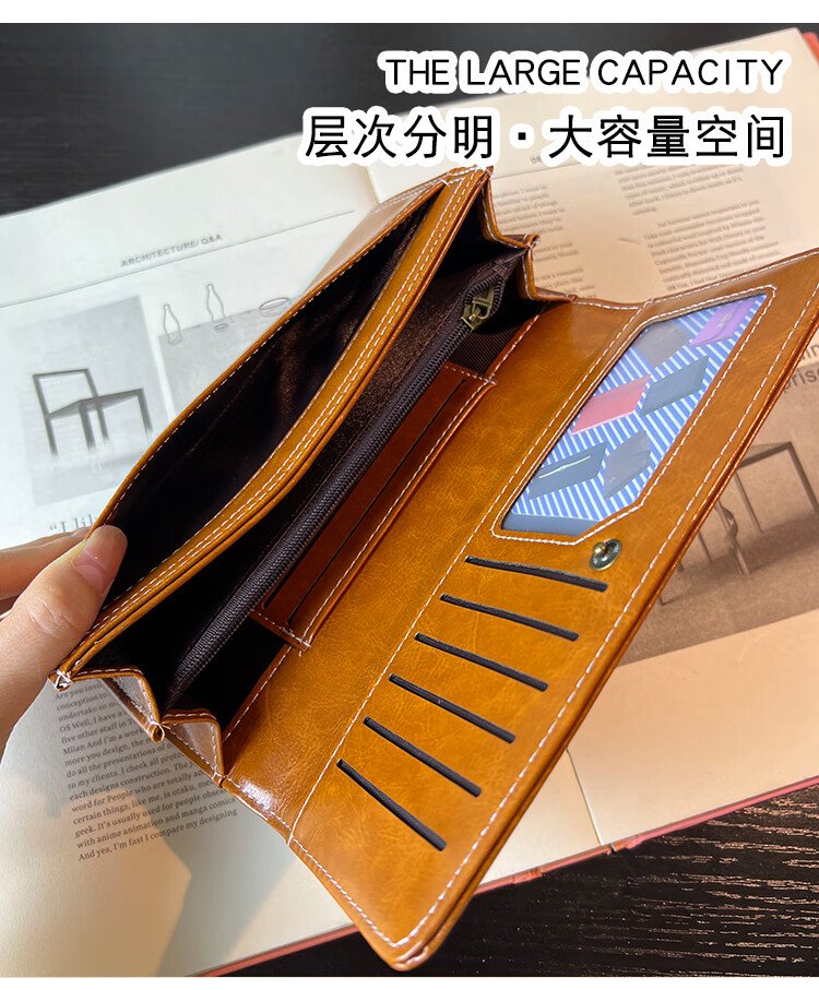 Wanjiazhen retro atmospheric multifunctional women's wallet women's long mobile phone bag Japanese and Korean folding women's wallet clutch bag card bag brown