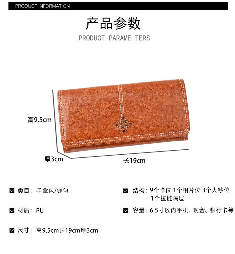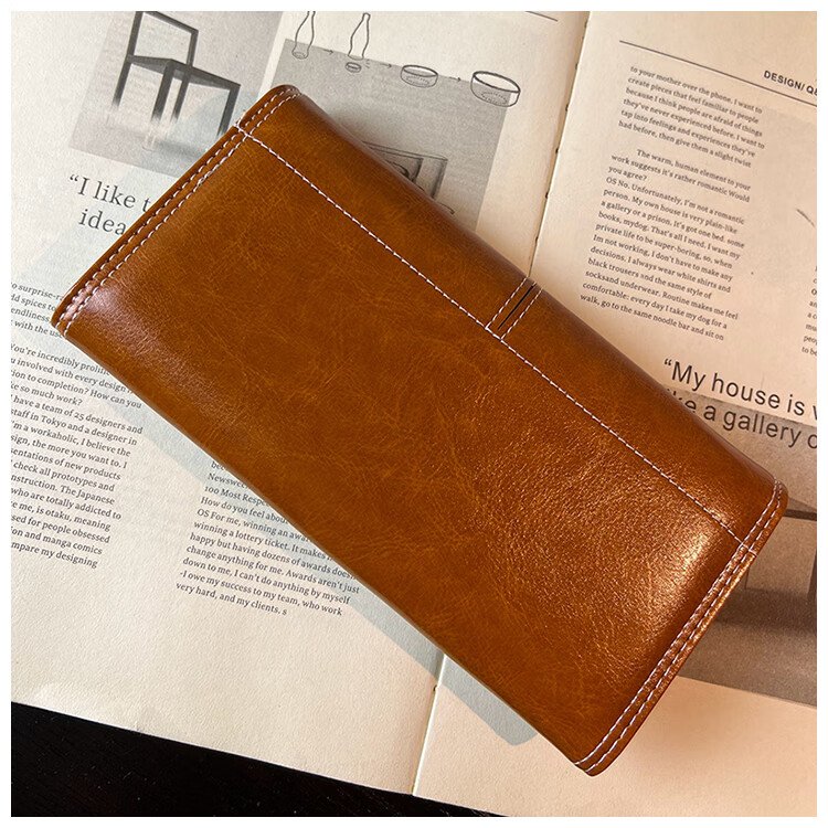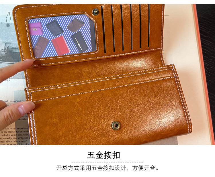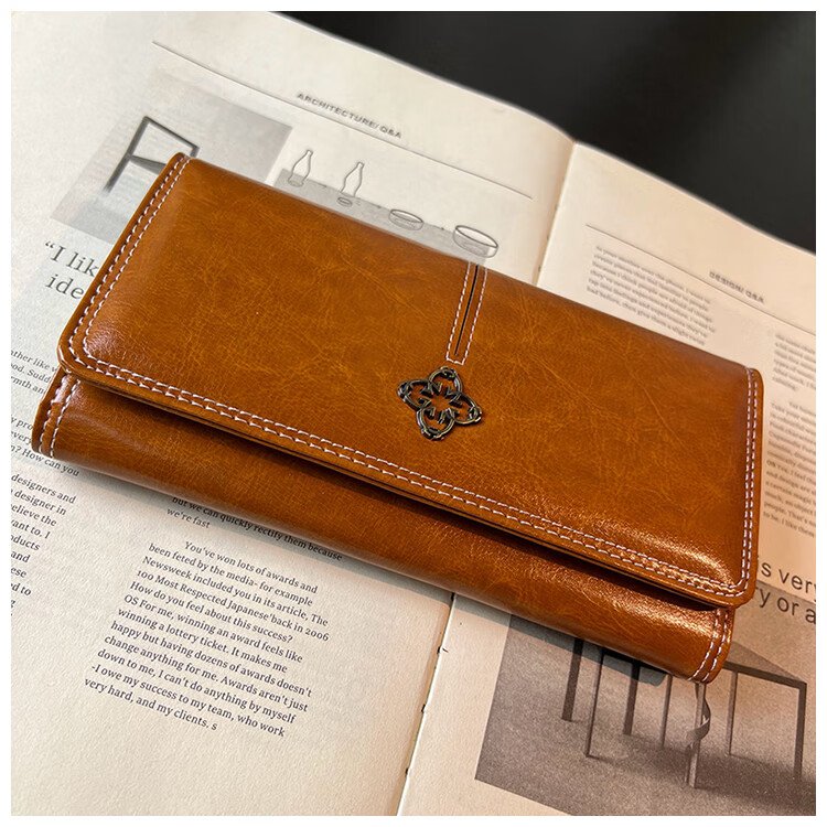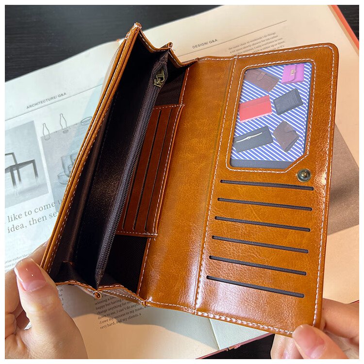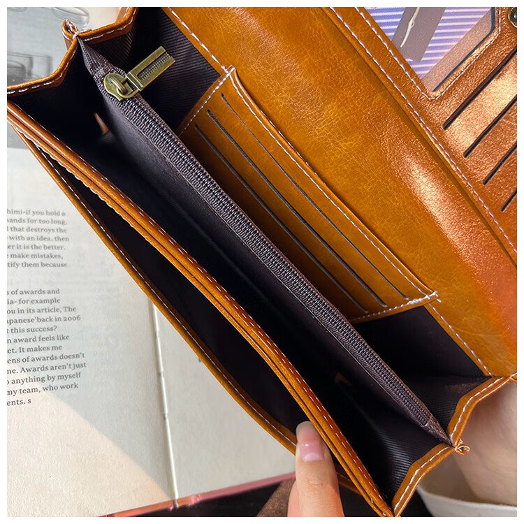 Wanjiazhen retro atmospheric multifunctional women's wallet women's long mobile phone bag Japanese and Korean folding women's wallet clutch bag card bag brown