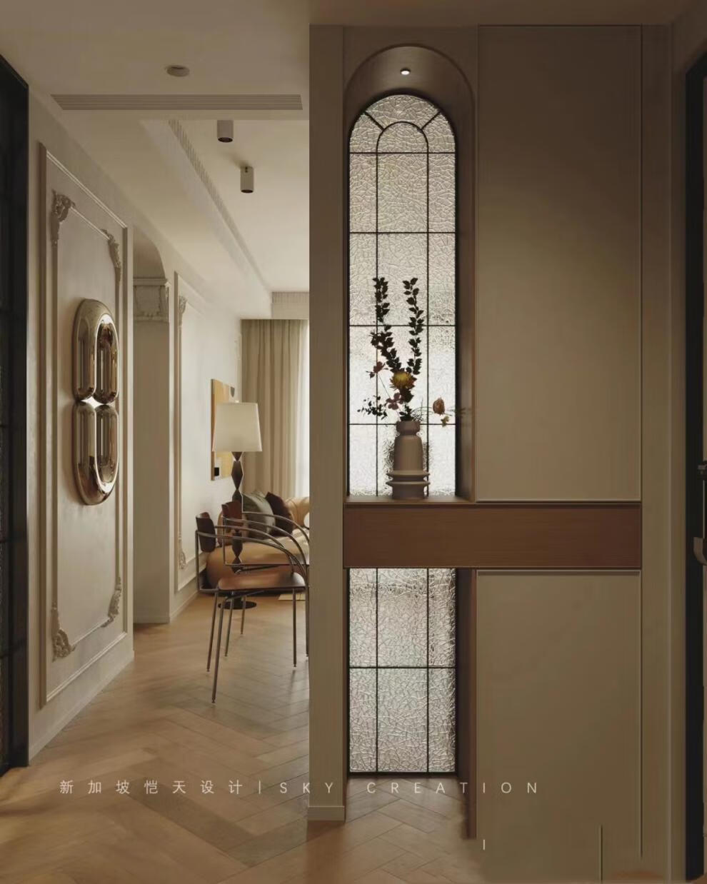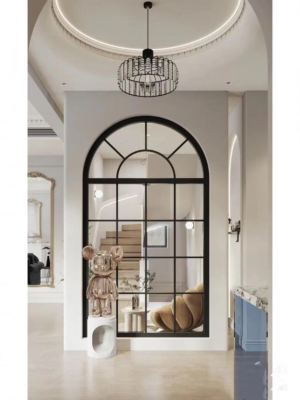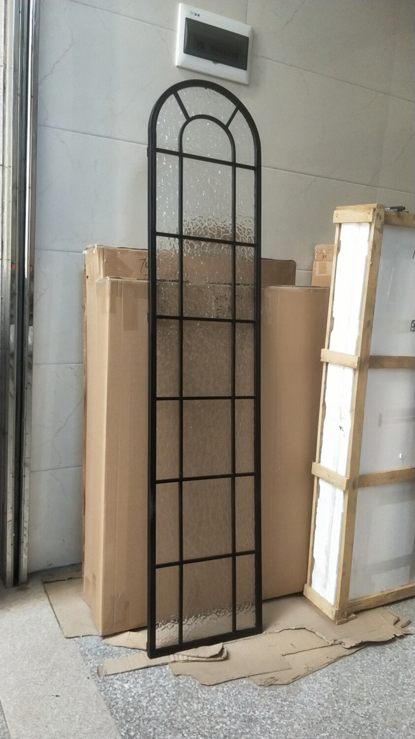 Yaotian French partition fake window wrought iron screen wall lighting art glass frame entrance Changhong glass half wall lighting window black long 40x180 high water pattern glass