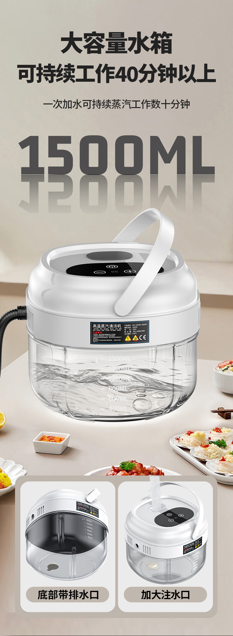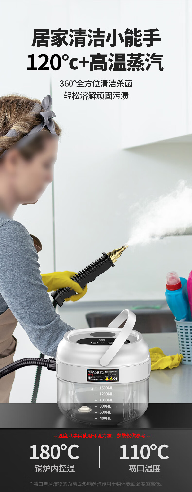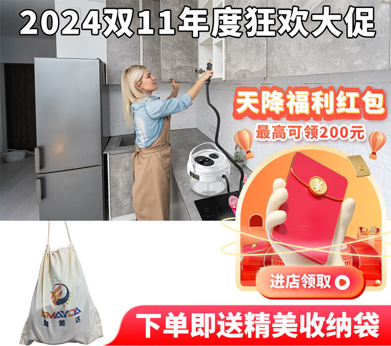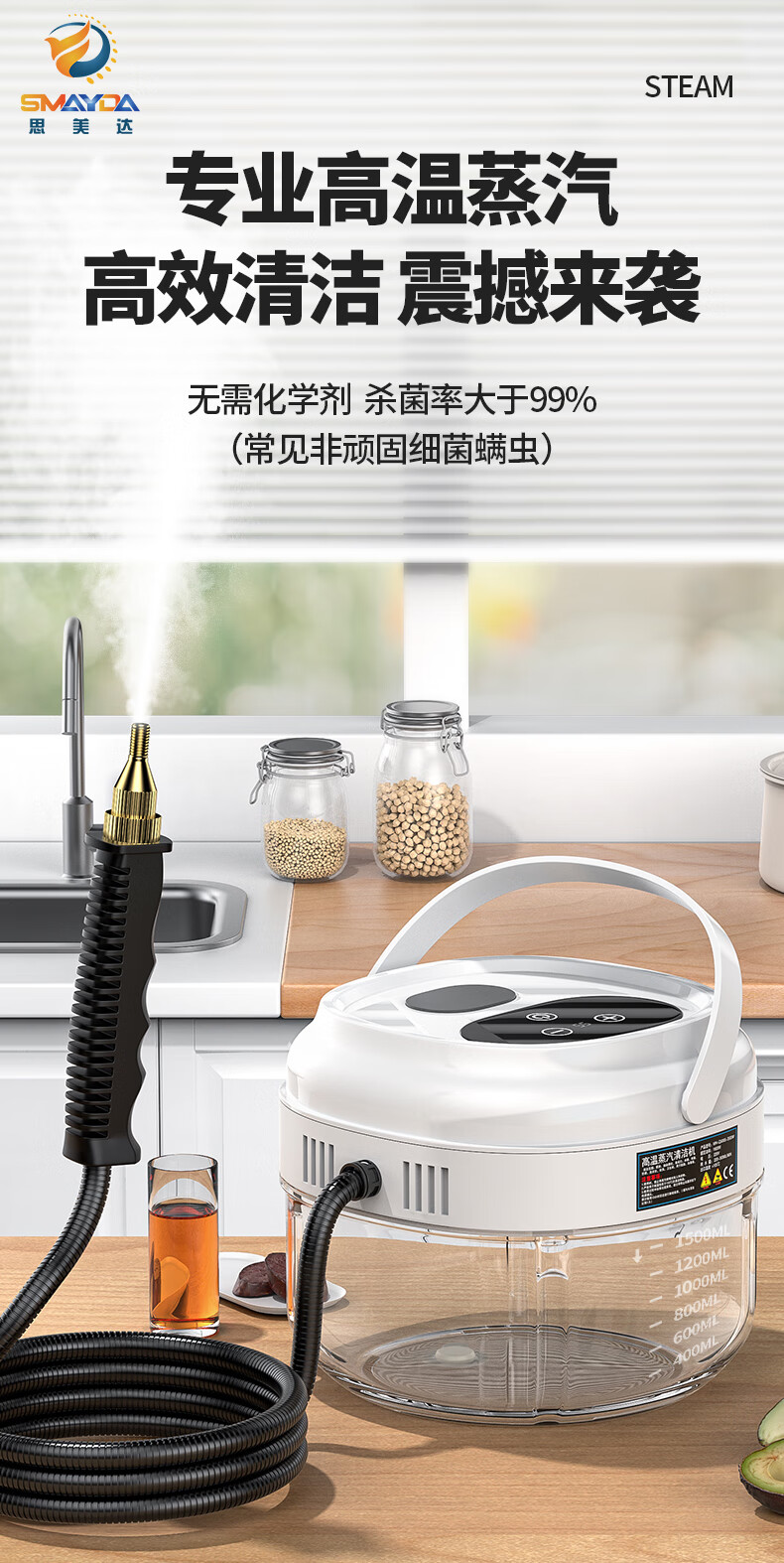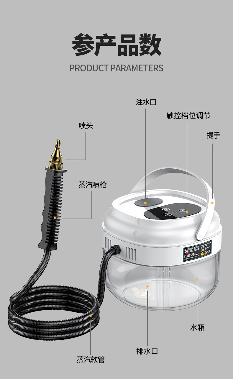 Simeida High Temperature Steam Cleaner Handheld Home Appliance Cleaning Air Conditioner Washing Machine Multifunctional All-in-One Cleaning Machine High Temperature Kitchen Oil Fume Disinfection Sterilization Degreasing Cleaning Machine (White) Smart Touch Screen Large Capacity + Upgrade 12 Piece Complete Set