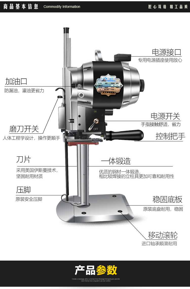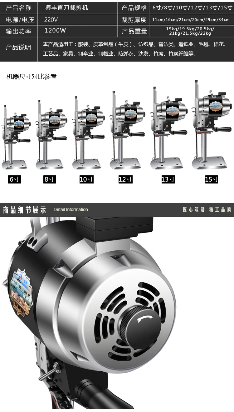 Minxi vertical electric cloth cutting machine clothing cutting machine clothing leather paper electric scissors automatic sharpening cloth cutting machine 6-inch electric scissors 1200w cutting height 1-11cm
