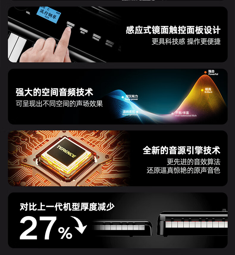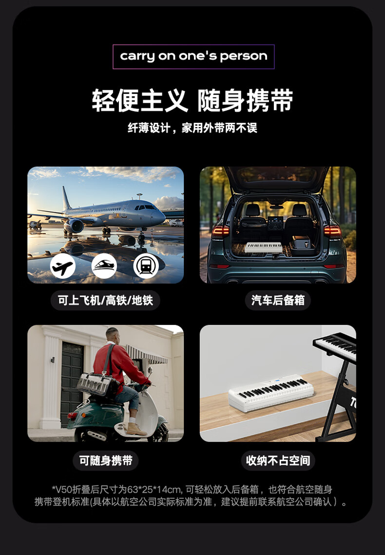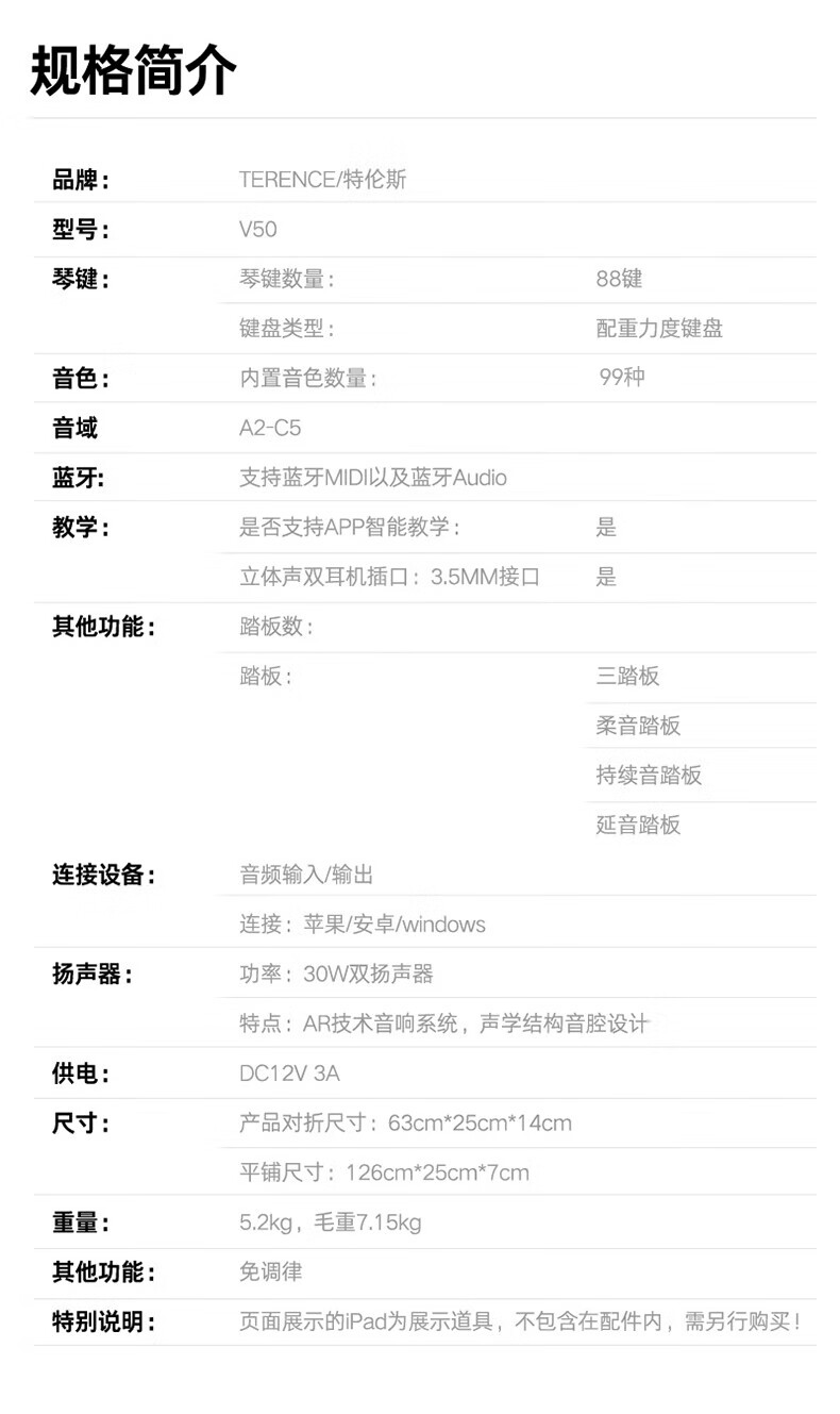 Terence (Terence) electric piano 88-key folding electronic piano for children, beginners, adult home piano V50 portable piano, deep space black, official standard + original three pedals + liftable piano stand