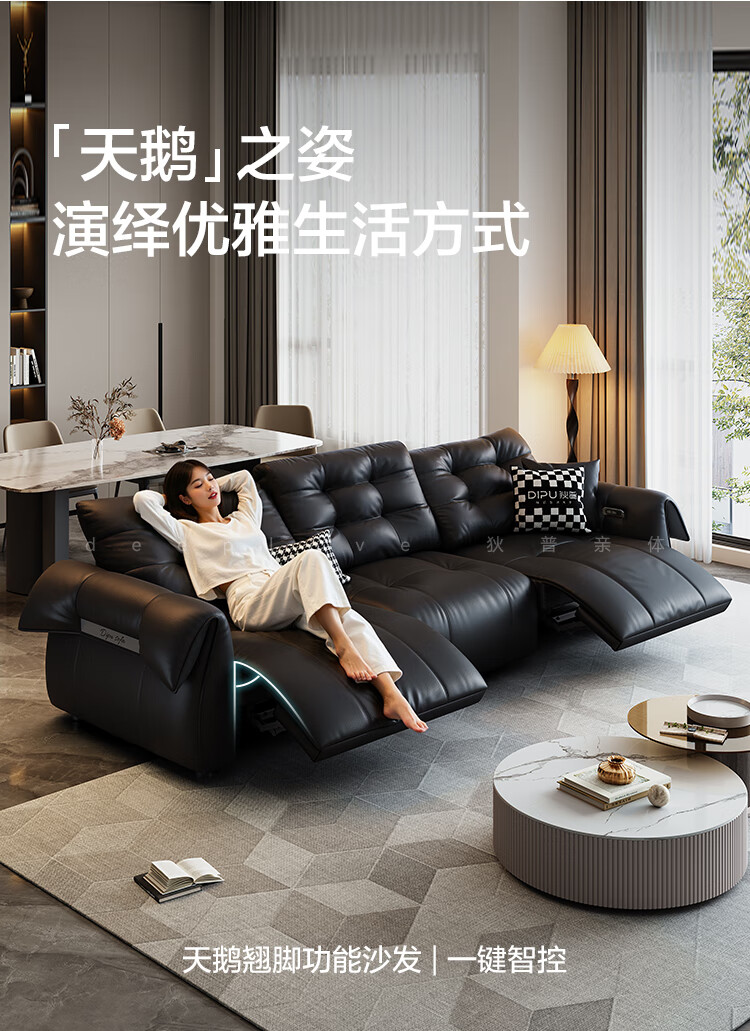 Dipu Electric Functional Cowhide Art Sofa Zero Wall Adjustable Internet Celebrity Italian First Class Sofa Swan Functional Position Around 2.70m Flagship Five-Star Sitting Feeling Thickened First-layer Cowhide on the Contact Surface Wear-Resistant and Easy to Maintain