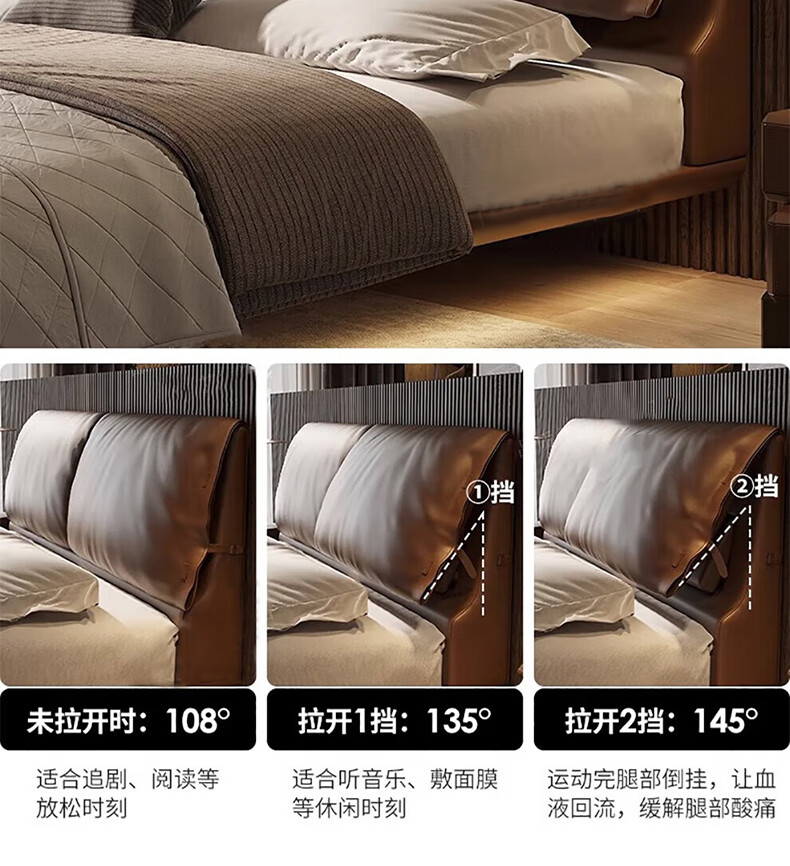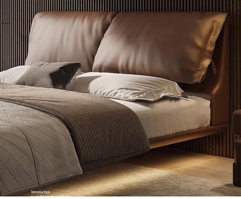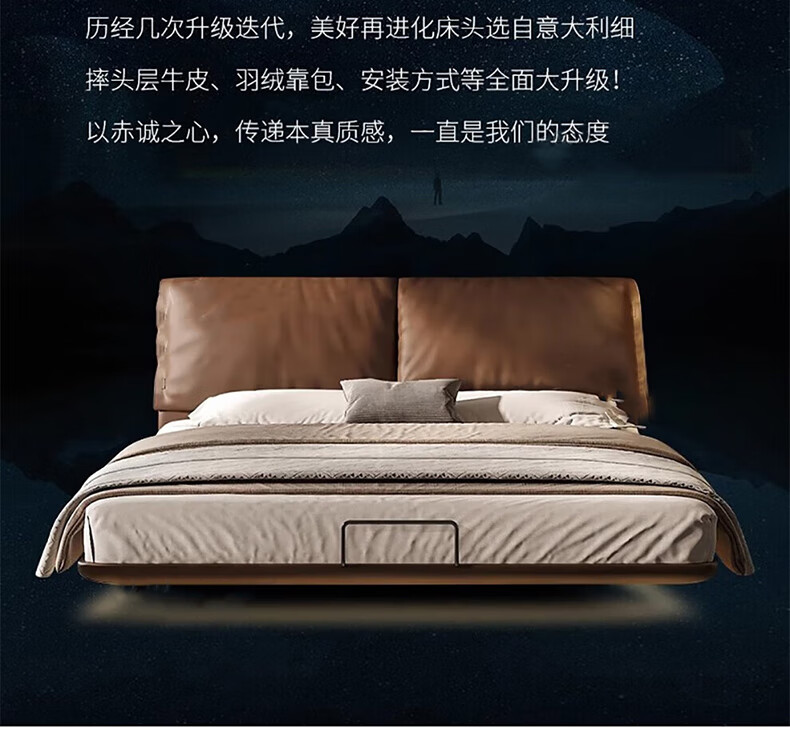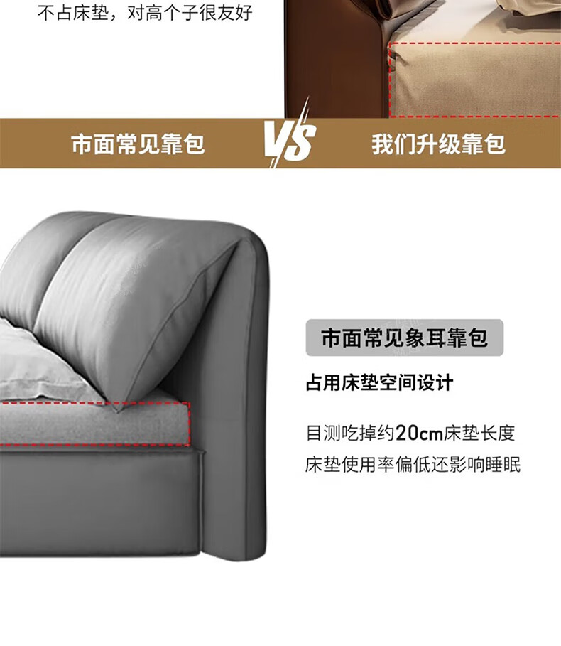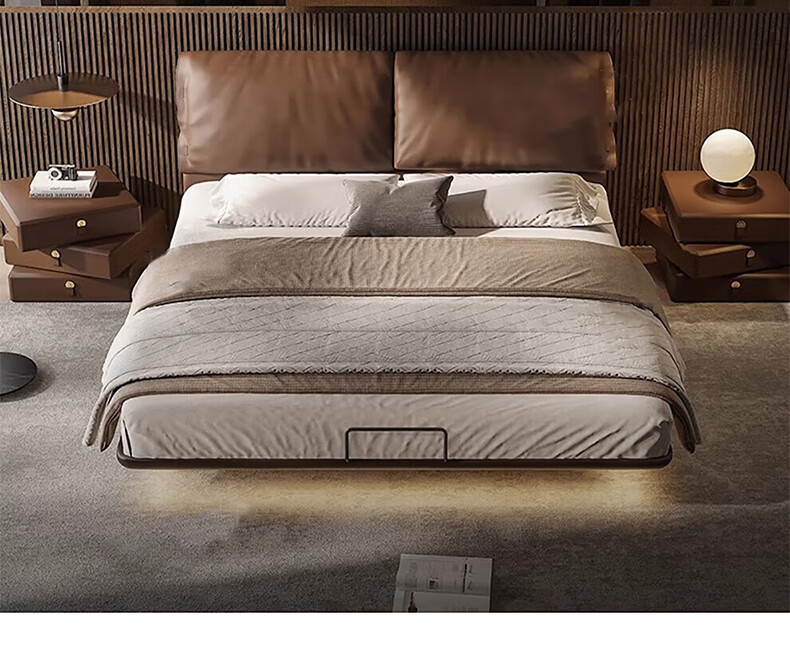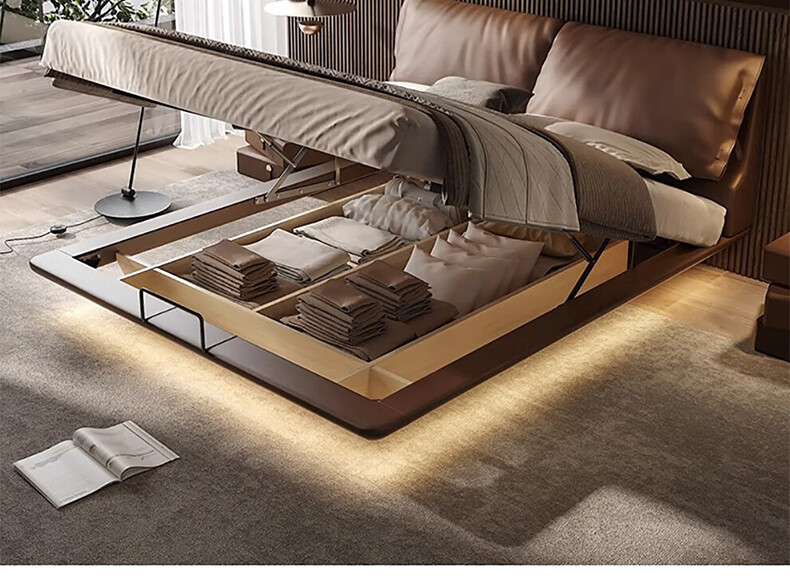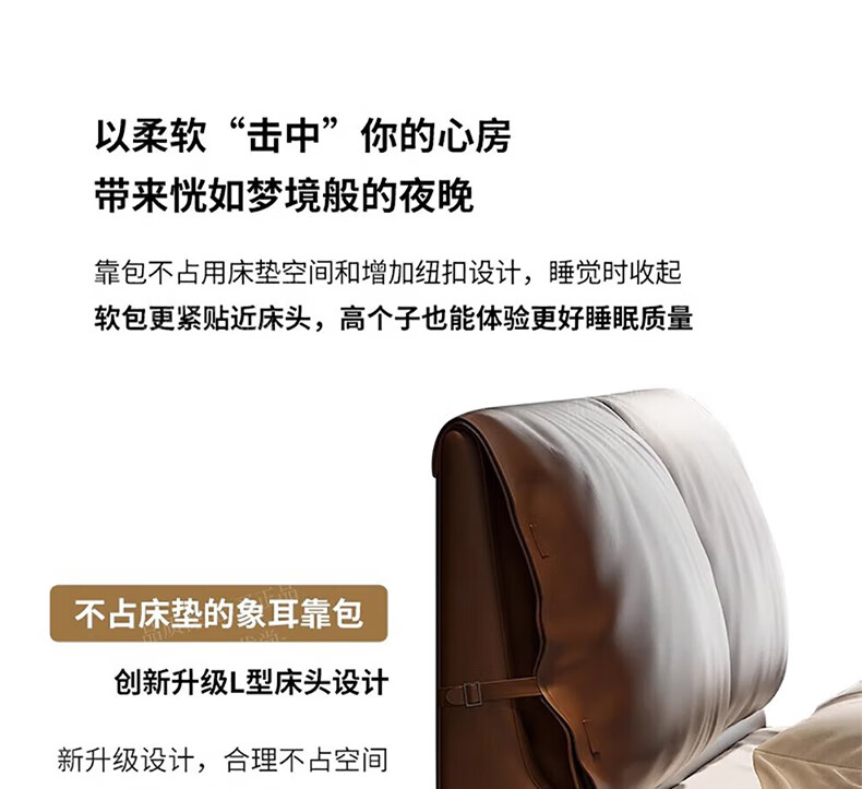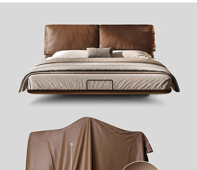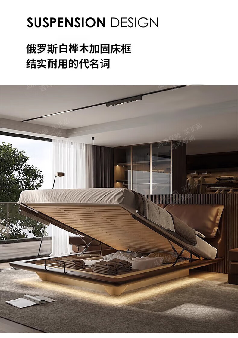 Madili Elephant Ear Leather Bed Italian Minimalist Master Bedroom King Bed Light Luxury Modern Simple Storage and Storage Drawers Leather Bed Store Quality First Layer Cowhide Single Bed 1.8m*2m High Box Structure Stable and Not Shaking